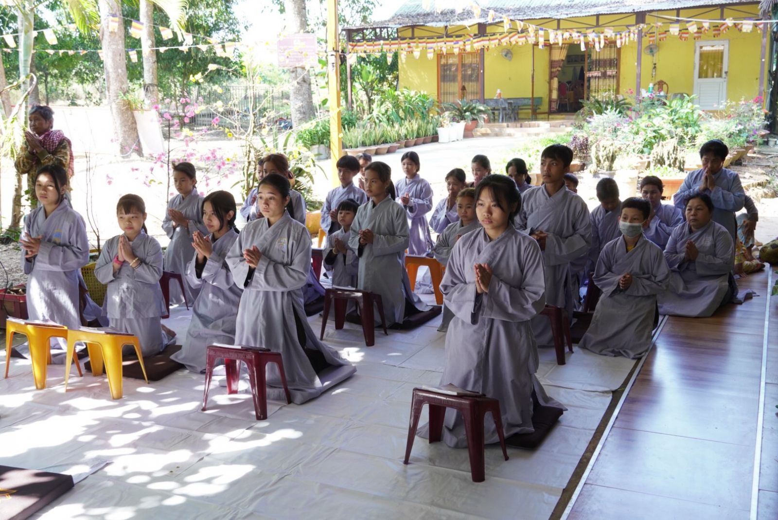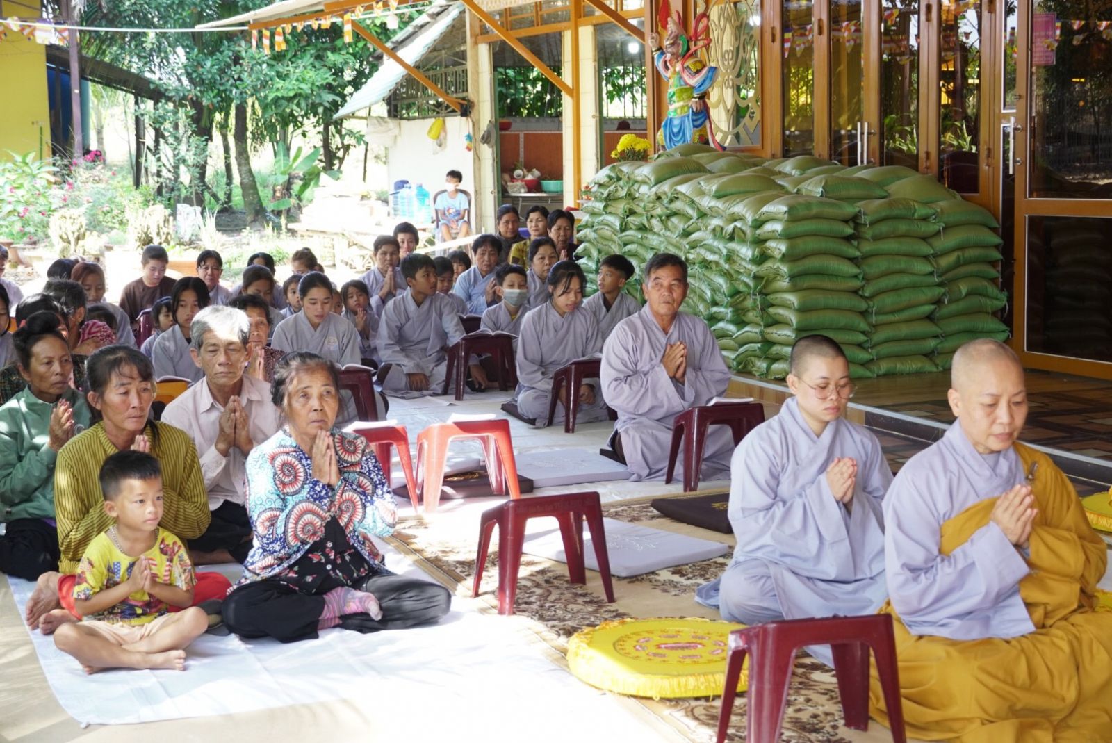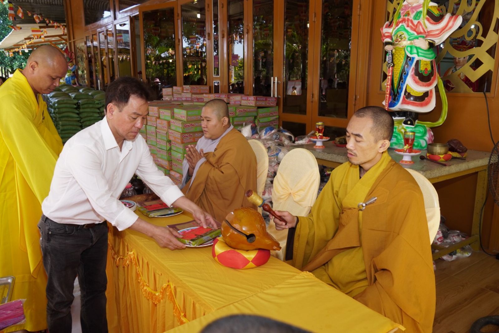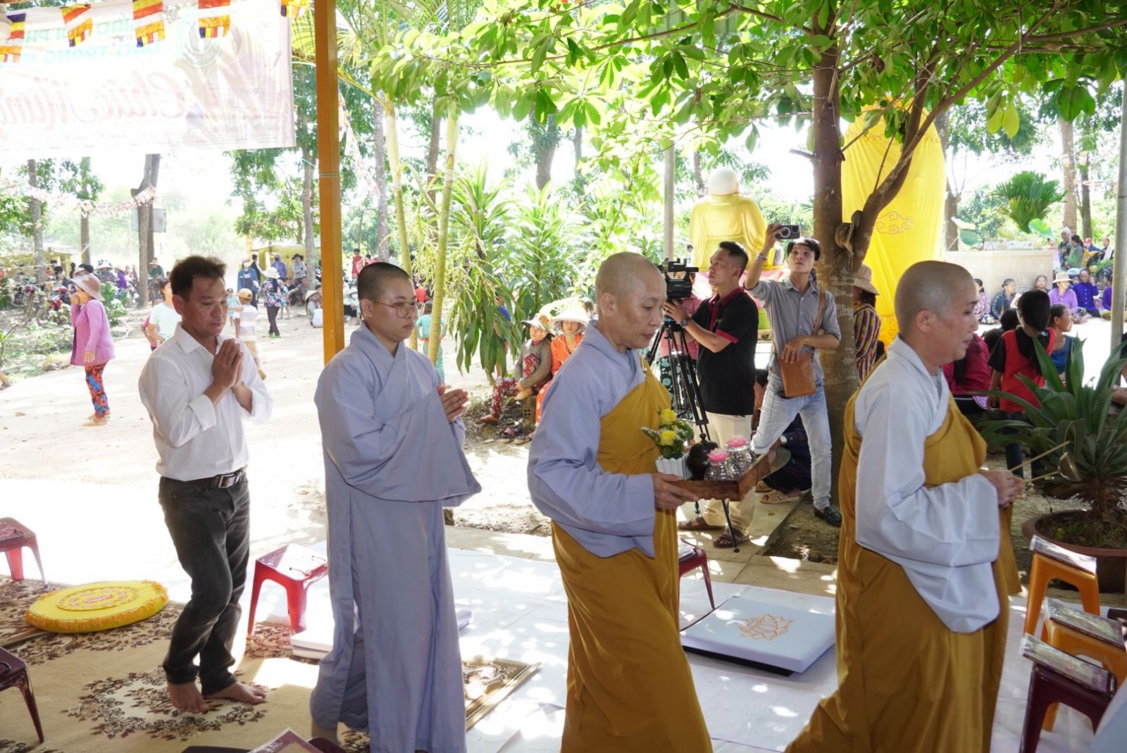 Sau nghi thức cầu nguyện, Hoà thượng chứng minh cùng chư tôn đức Tăng Ni, hội chữ thập đỏ, quý Ân nhân, quý Mạnh thường quân đã trực tiếp trao tay đến bà con những phần quà quý giá, bày tỏ sự quan tâm của đạo tràng Phật tử, của chư tôn đức đối với bà con nơi vùng đất xa xôi này.