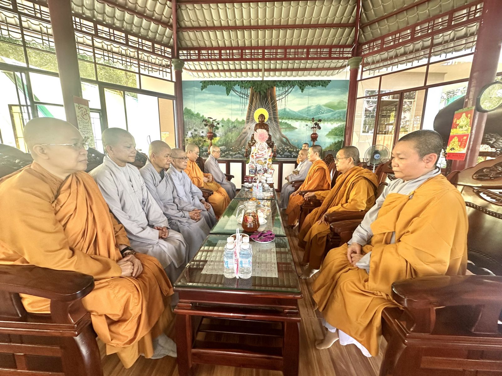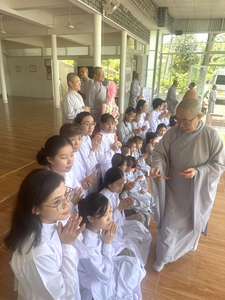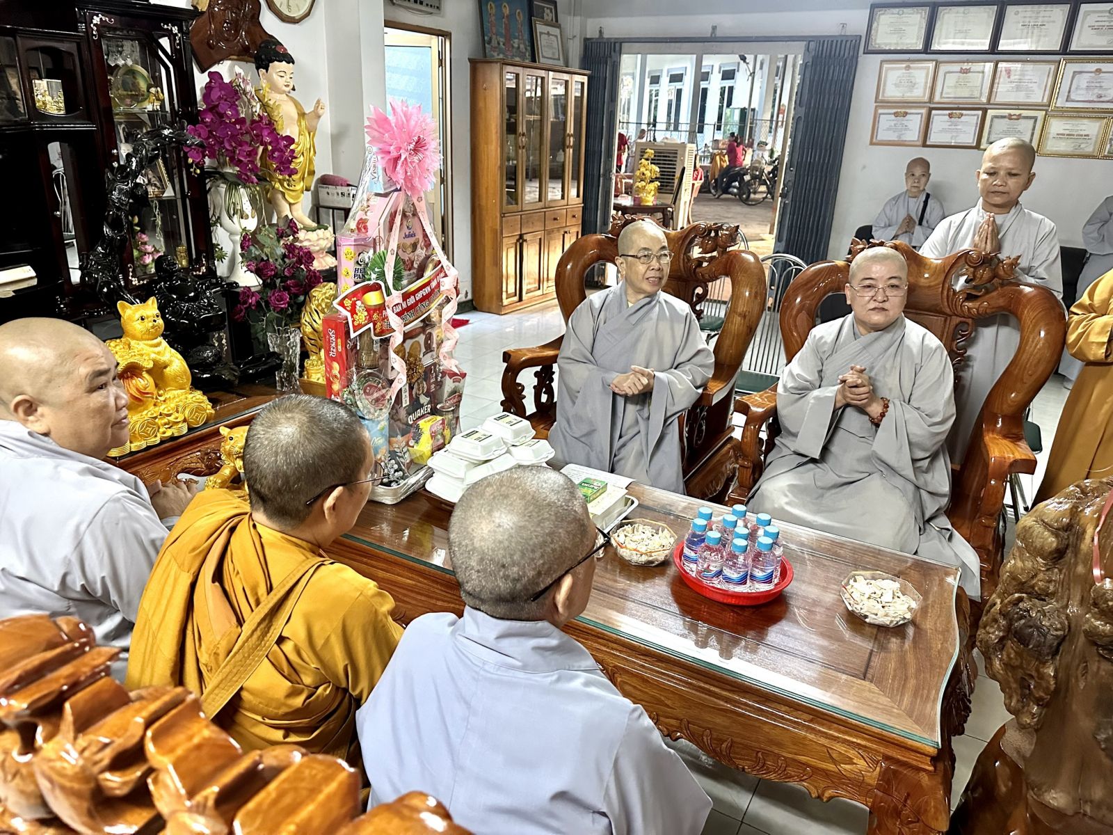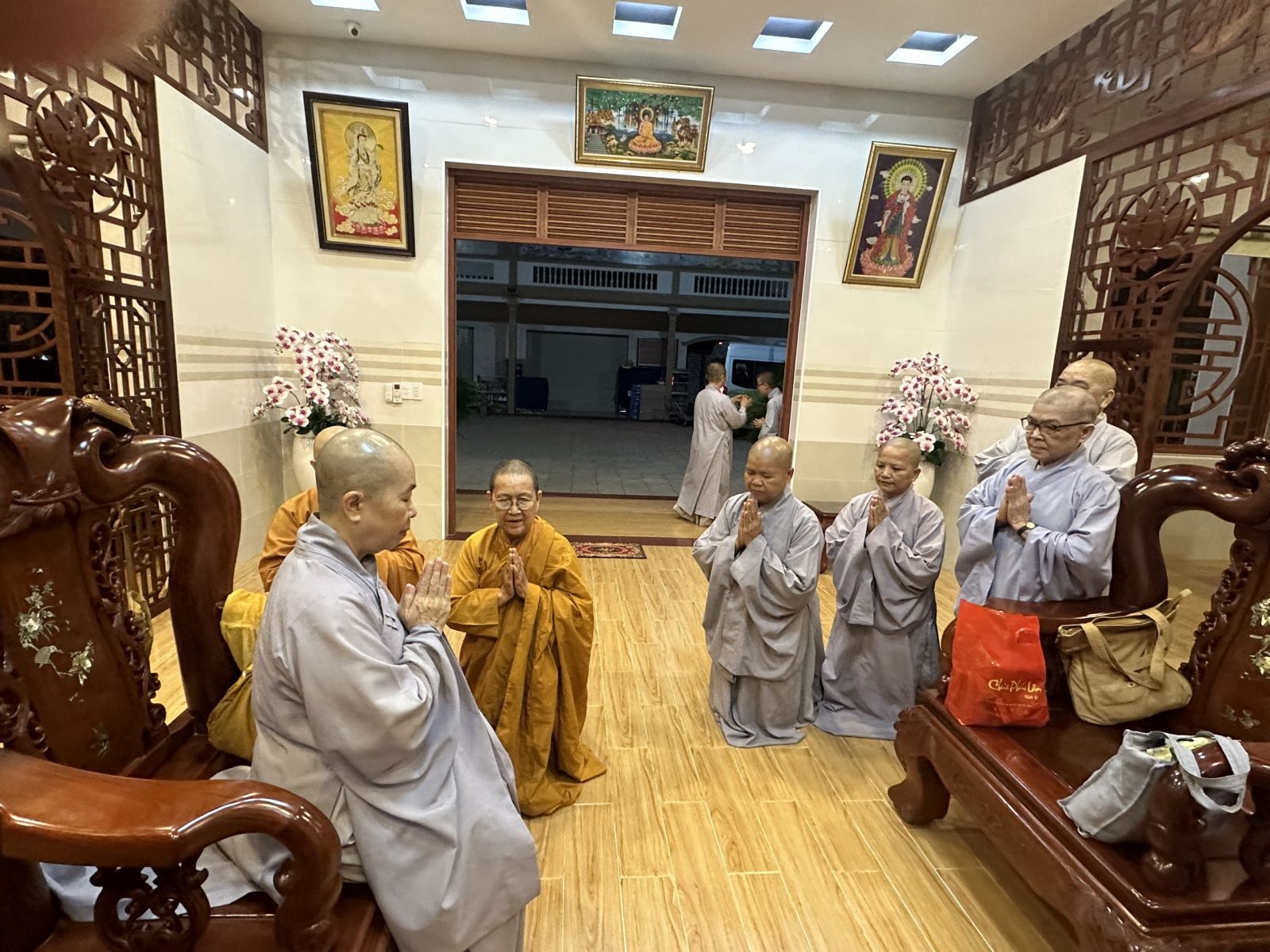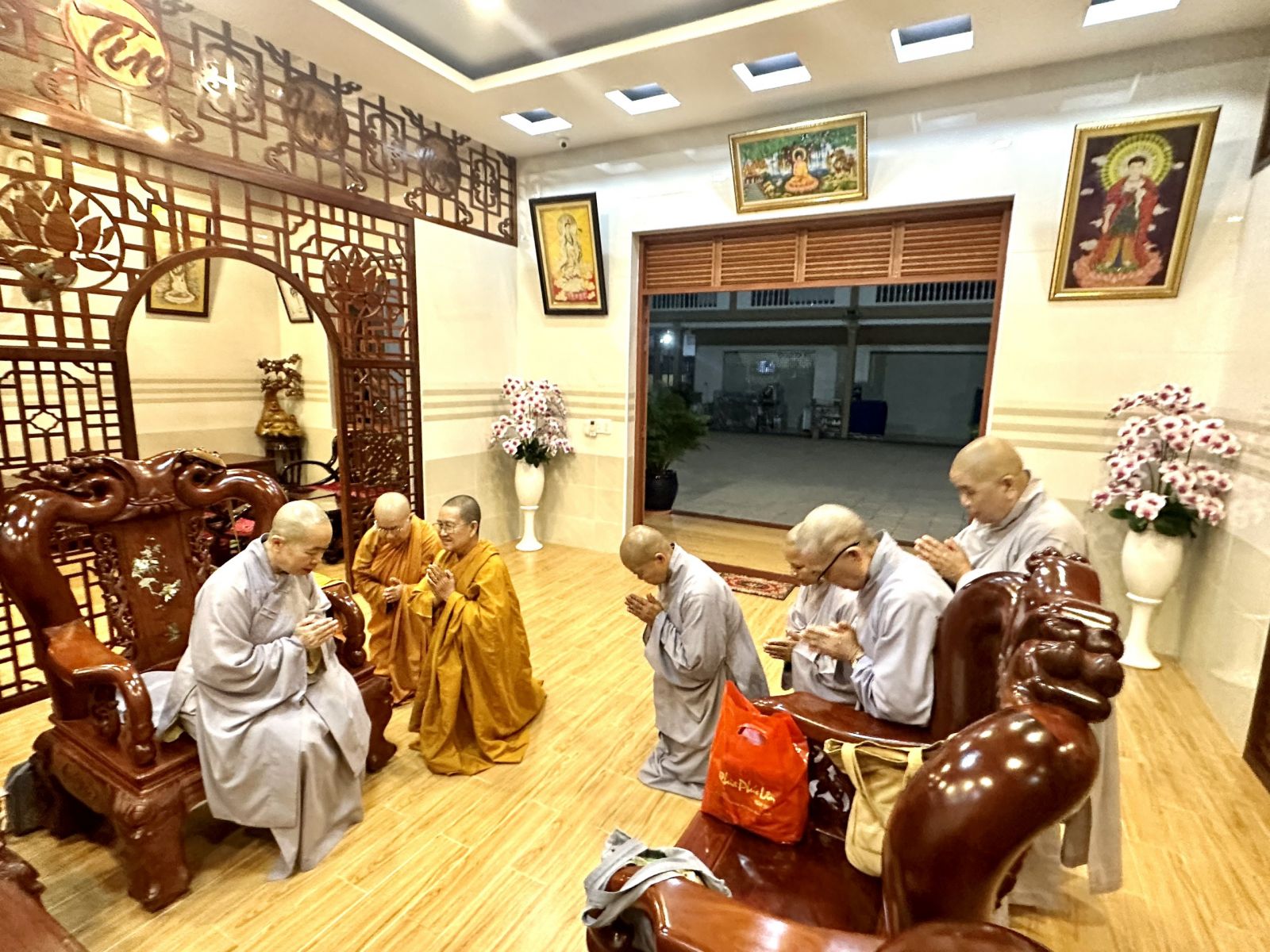 Điểm đầu tiên các thành viên trong đoàn đã kính vấn an sức khỏe của Ni trưởng Thích nữ Như Dung - Trưởng PBNG kiêm Trưởng tiểu Ban giám luật (Trưởng PBNG Tp.Biên Hòa) trụ trì Chùa Long Vân (Kp. Long Đức 1, Phường Tam Phước, Tp. Biên Hòa).