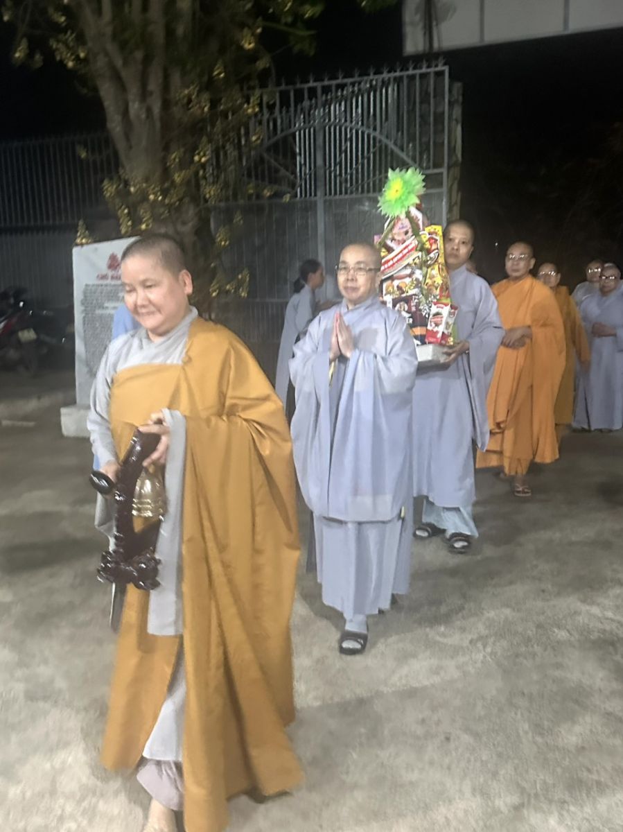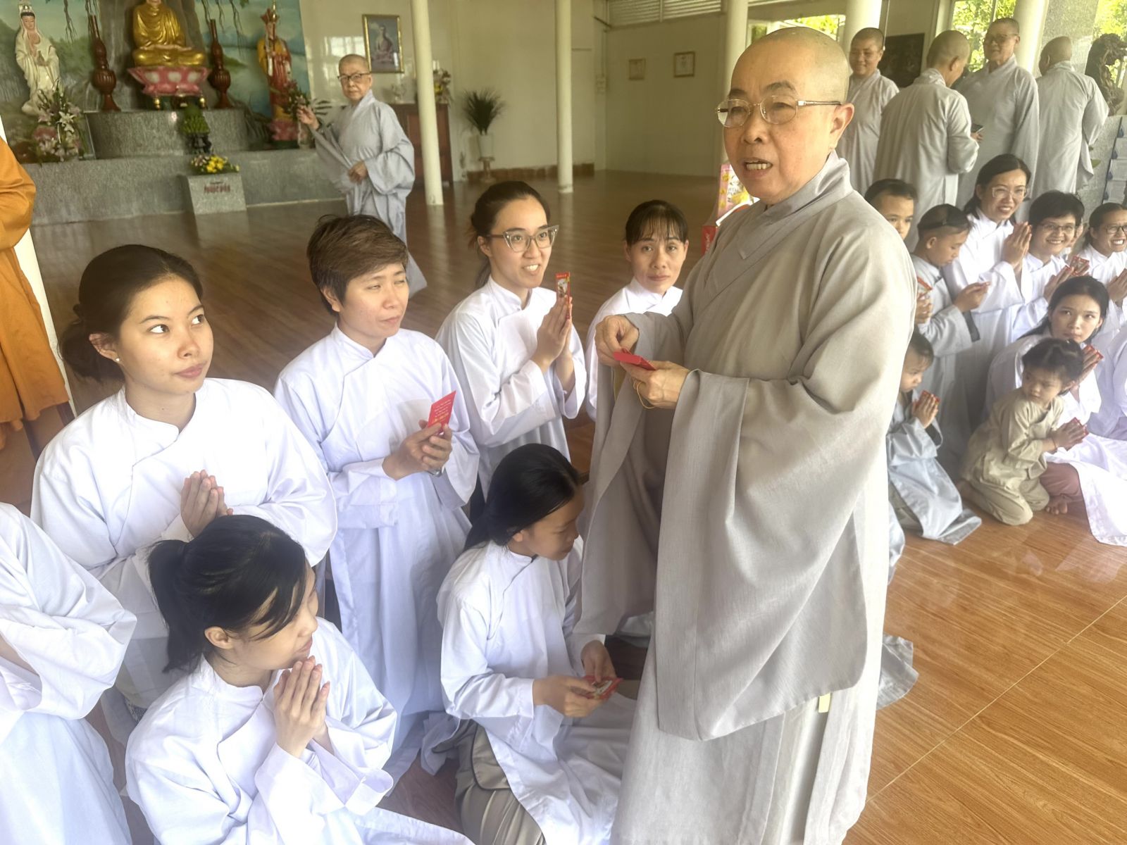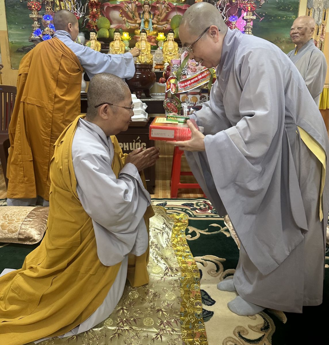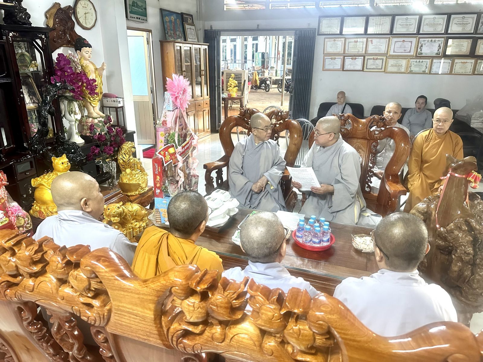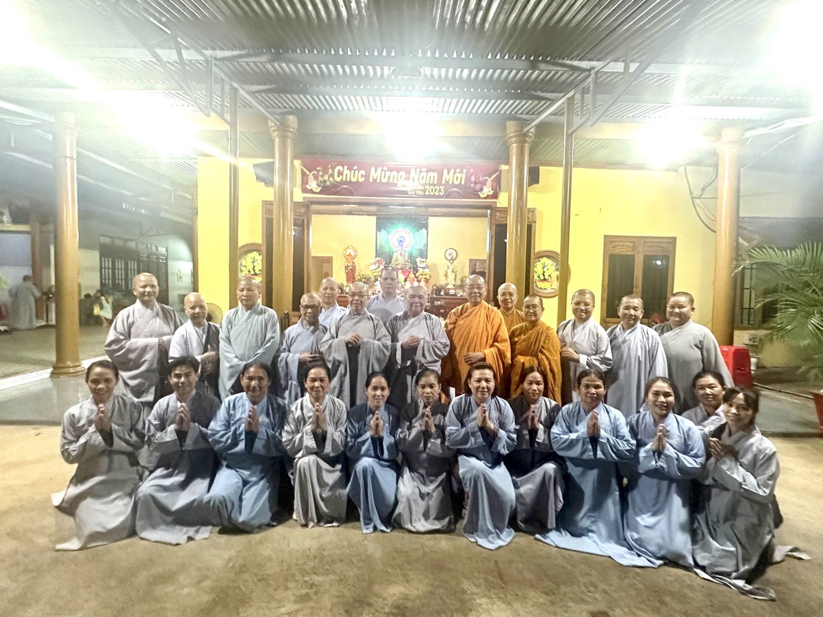 Điểm đầu tiên các thành viên trong đoàn đã kính vấn an sức khỏe của Ni trưởng Thích nữ Như Dung - Trưởng PBNG kiêm Trưởng tiểu Ban giám luật (Trưởng PBNG Tp.Biên Hòa) trụ trì Chùa Long Vân (Kp. Long Đức 1, Phường Tam Phước, Tp. Biên Hòa).