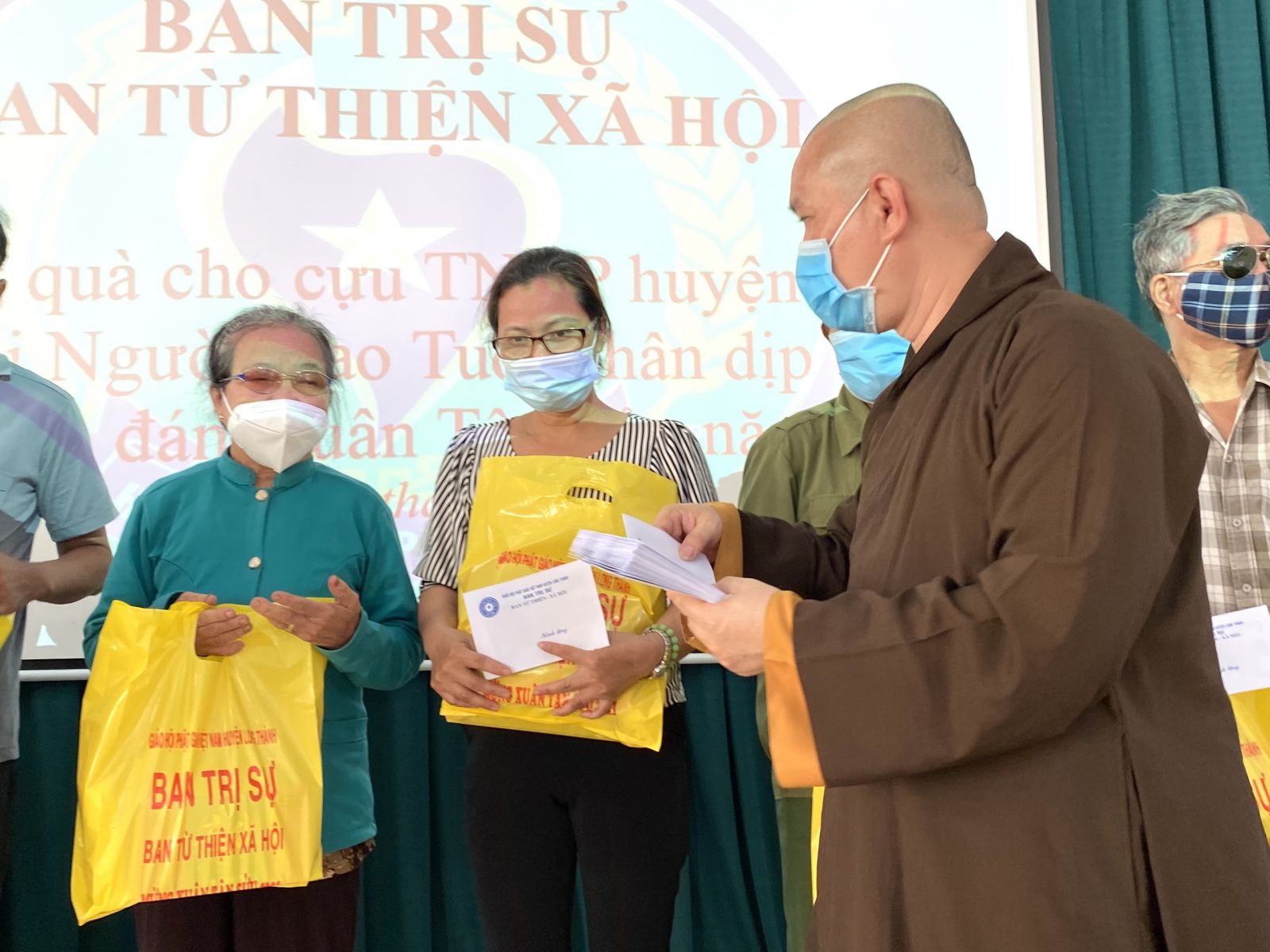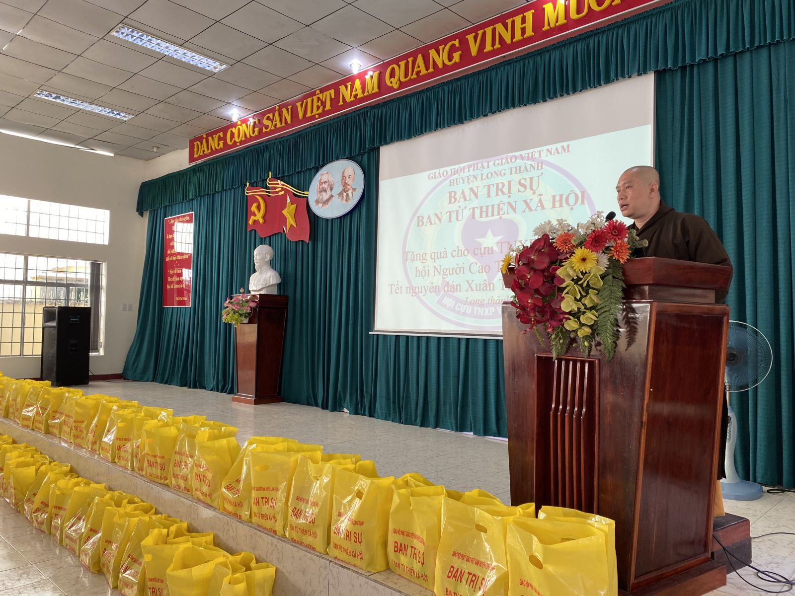 Nhằm tri ân và báo ân những người thanh niên năm xưa dũng cảm hy sinh, xung phong tham gia vào chiến trường, tải đạn phục vụ kháng chiến trường kỳ, giành lại độc lập cho Tổ quốc; Phật giáo huyện Long Thành luôn đồng hành cùng dân tộc với tinh thần ăn quả nhớ kẻ trồng cây, uống nước nhớ nguồn, trực tiếp trao tặng 155 phần quà tại buổi lễ thăm hỏi.