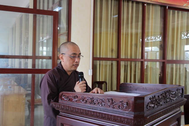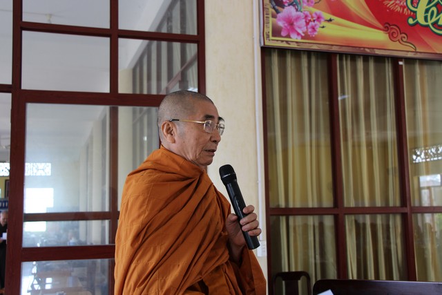 Hòa thượng Thích Giác Quang – Phó BTS, Trưởng Ban Tăng sự tỉnh, trình bày Dự thảo Tổ chức Đại giới đàn năm 2019.