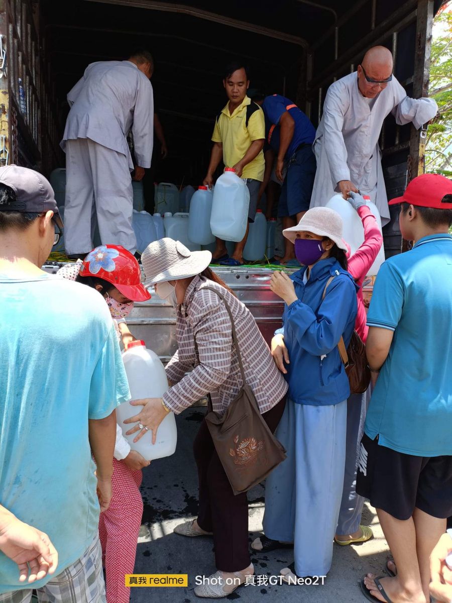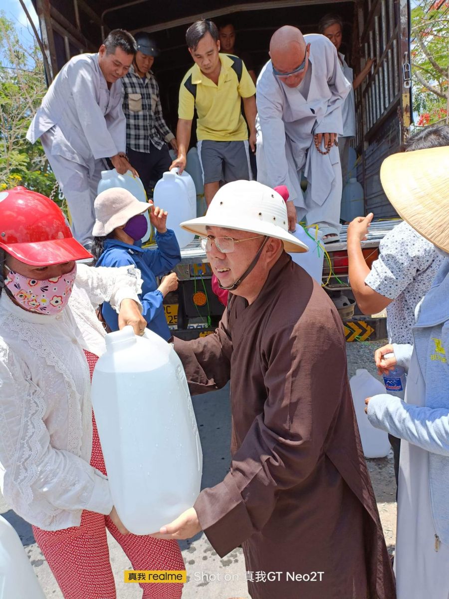 Thượng tọa đã hỗ trợ các huyện tỉnh Tiền Giang 130 thùng nước suối, 1000 can nước ngọt (mỗi can 30 lít), 04 bồn nước dung tích 16 khối và 1 bồn lớn dung tích 20 khối. Tất cả đều là nguồn nước tinh khiết dùng để uống và nấu ăn sinh hoạt cấp thời.