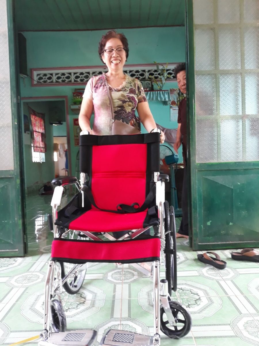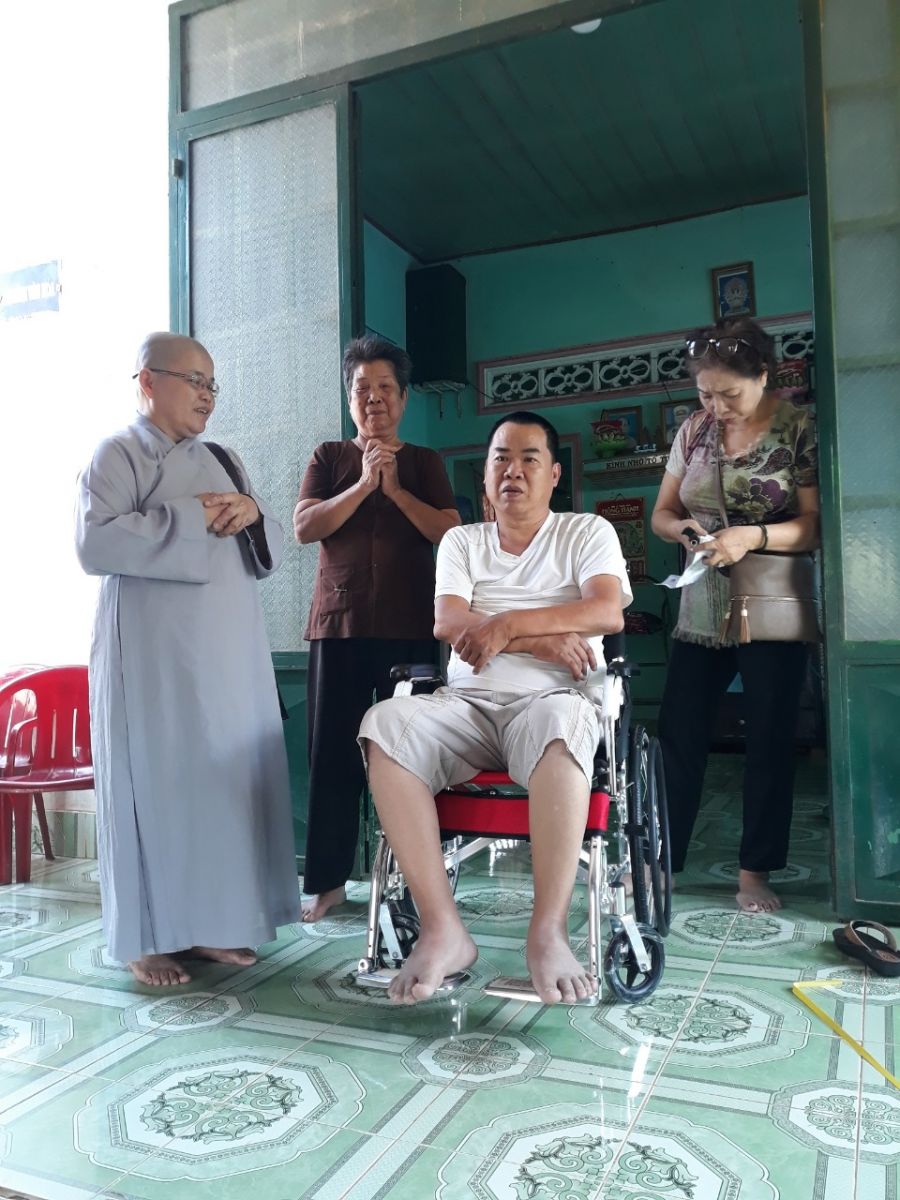 Sau khi phát quà xong, nhóm thiện nguyện lại tiếp tục đến nhà anh Bùi Văn Tâm ở Phú Túc, Định quán, Đồng Nai để trao tặng chiếc xe lăn do Đoàn y bác sĩ Thiện Tâm trao tặng.