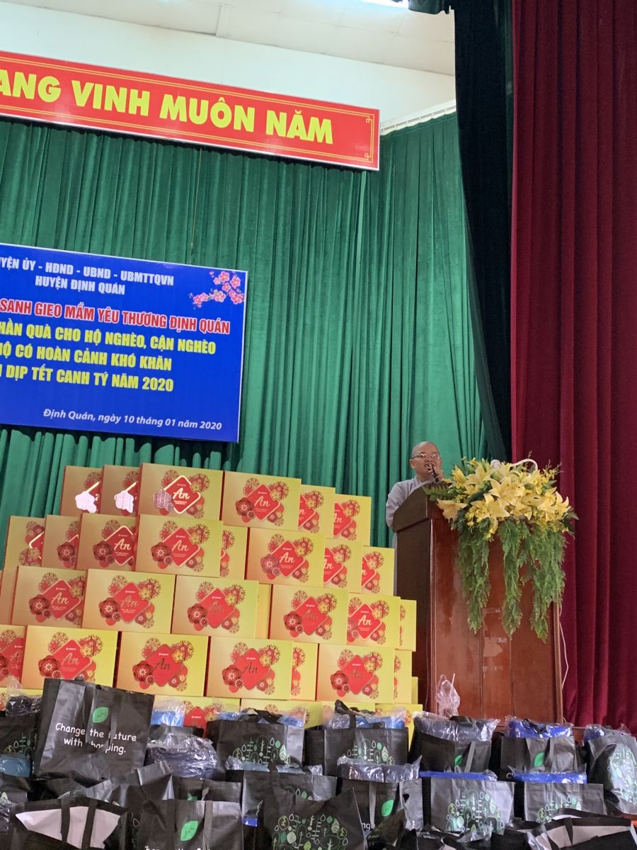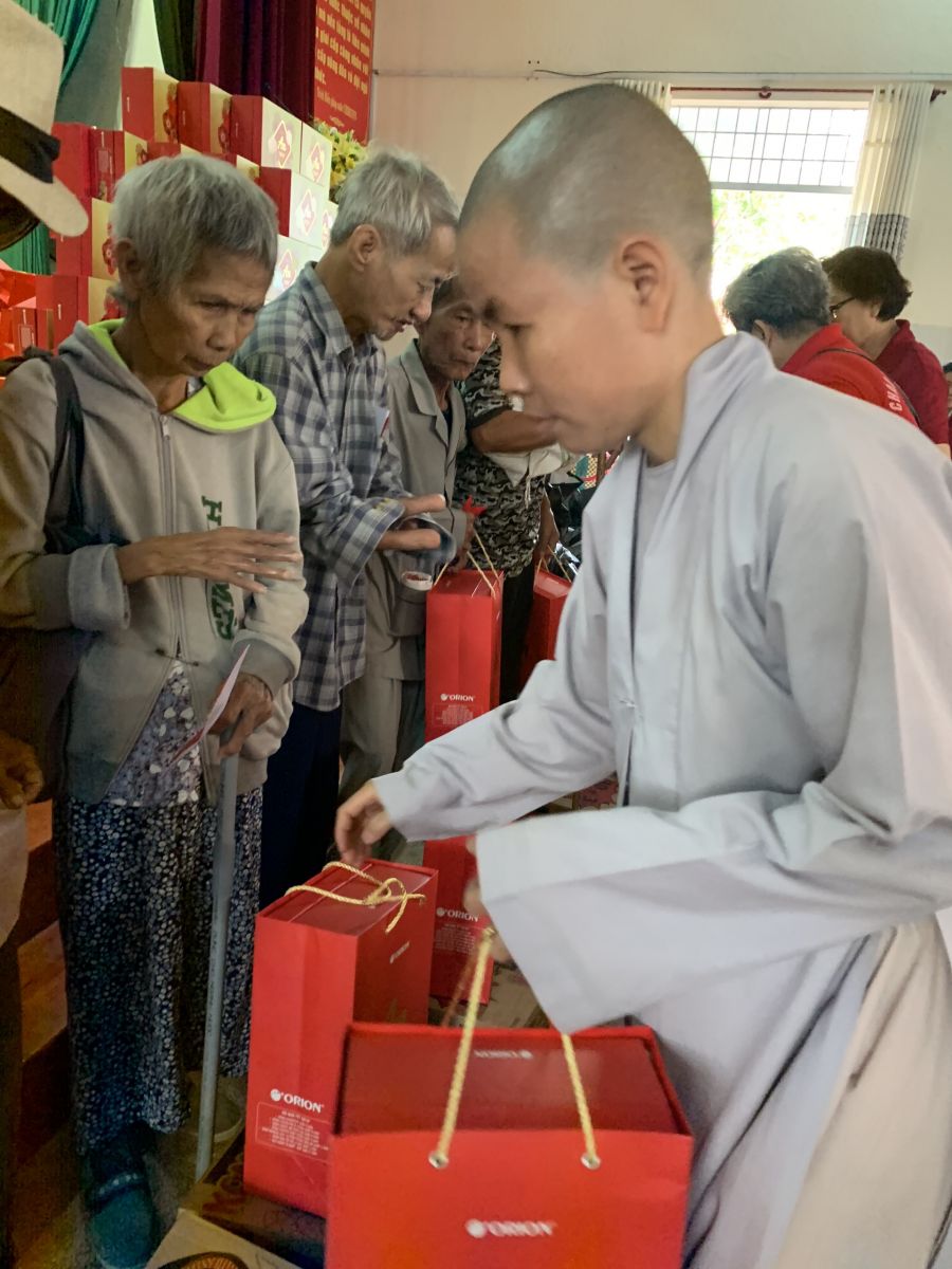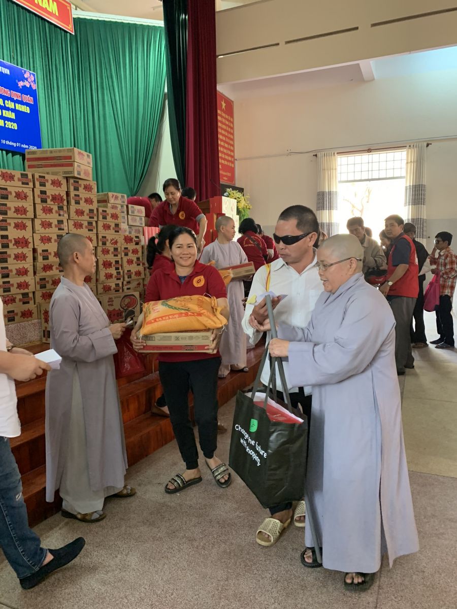 Sư cô Chúc Hoà đại diện cho đoàn gửi lời tri ân sâu sắc đến các cấp chính quyền, nhất là Hội Chữ thập đỏ huyện đã tạo điều kiện cho đoàn đem những món quà thân thương, tấm lòng ấm áp chia sẻ đến bà con chung vui Tết Canh Tý và chúc bà con sức khỏe và an lành.