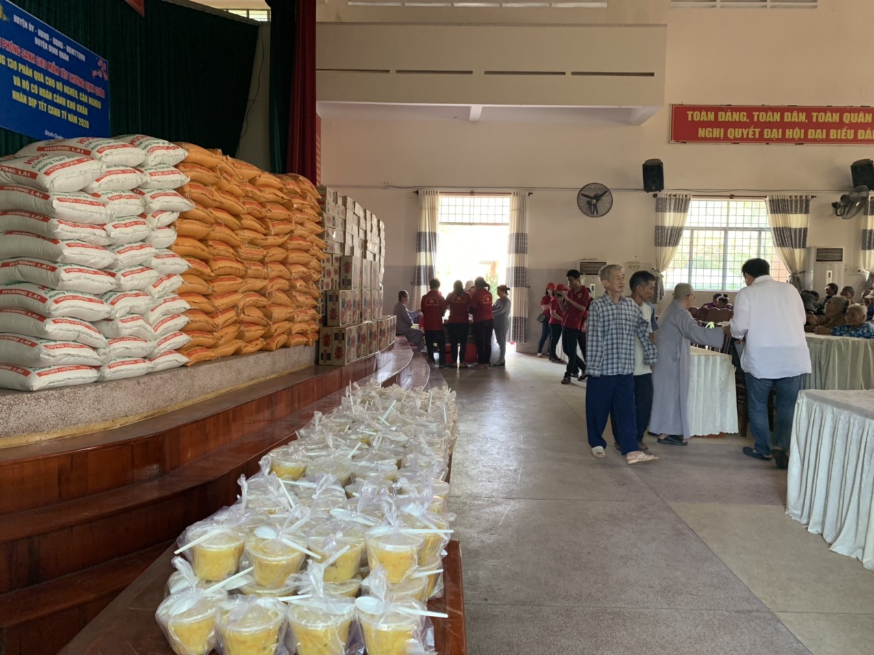 Tham gia chương trình tặng quà gồm có Sư cô Thích nữ Chúc Hoà làm trưởng đoàn cùng chư Tôn đức Ni trụ xứ chùa Linh Quang, xã Túc Trưng, huyện Định Quán, tỉnh Đồng Nai và 30 thành viên trong nhóm Phóng sanh Gieo mầm yêu thương Định Quán. Về phía chính quyền có: ông Nguyễn Mạnh Khỏe - Phó chủ tịch Hội Chữ thập đỏ (HCTĐ) huyện Định Quán; ông Nguyễn Đình Thanh - chuyên viên HCTĐ huyện Định Quán; cô Nguyễn Thị Hiển - kế toán HCTĐ huyện Định Quán.