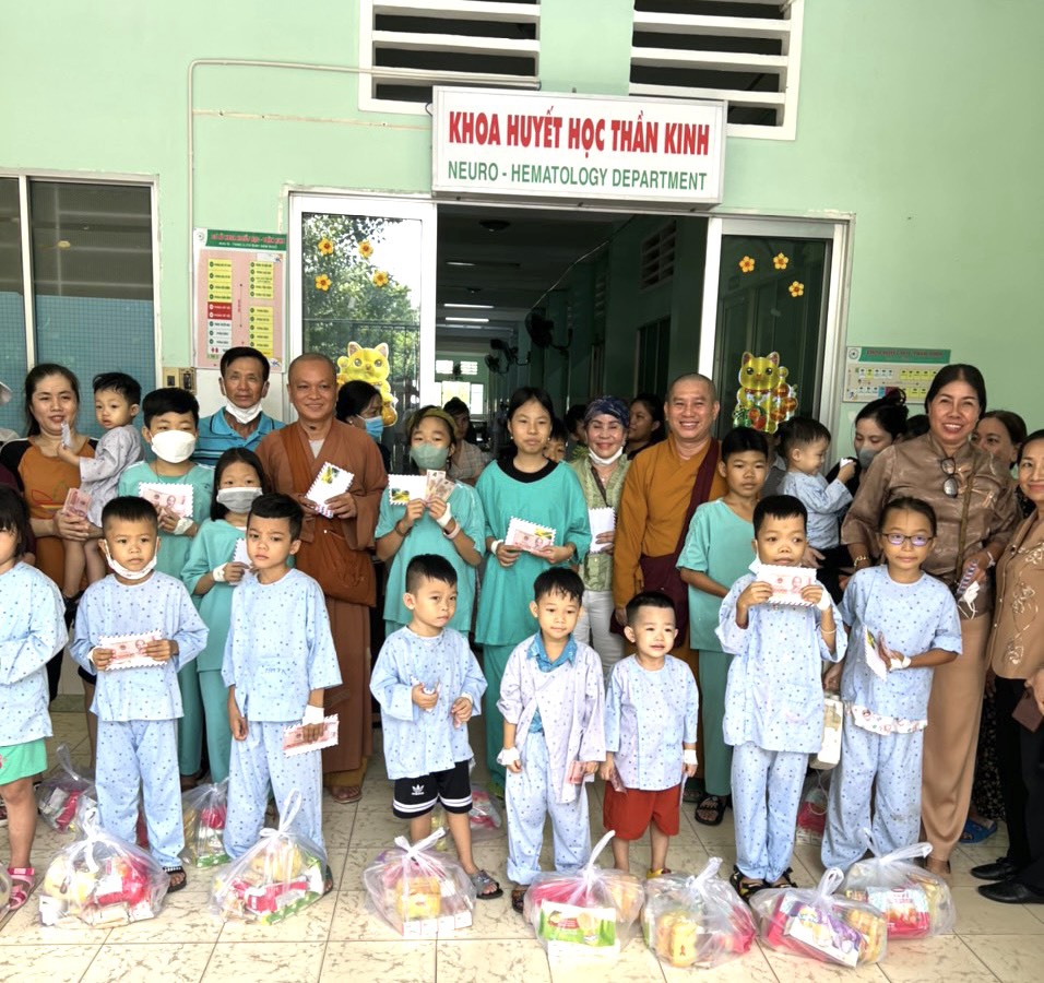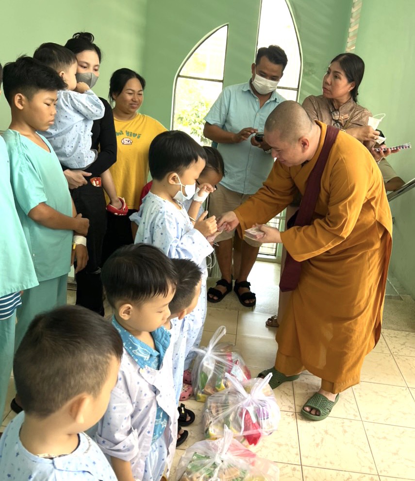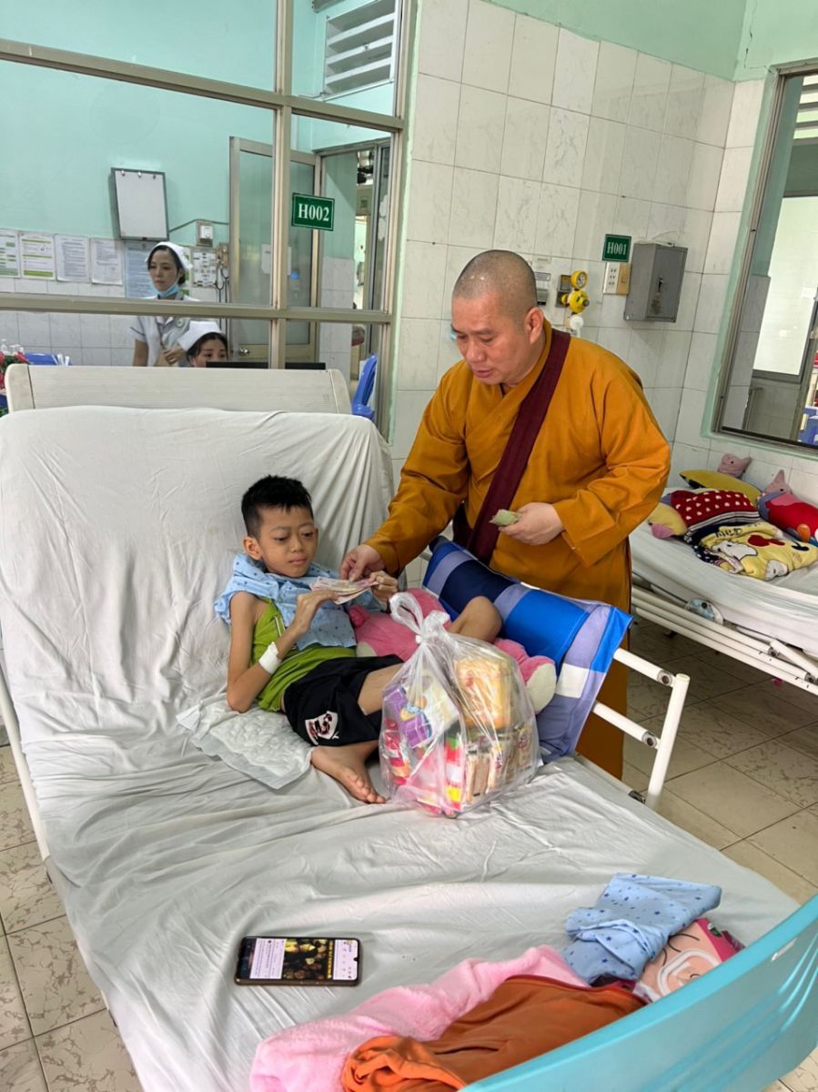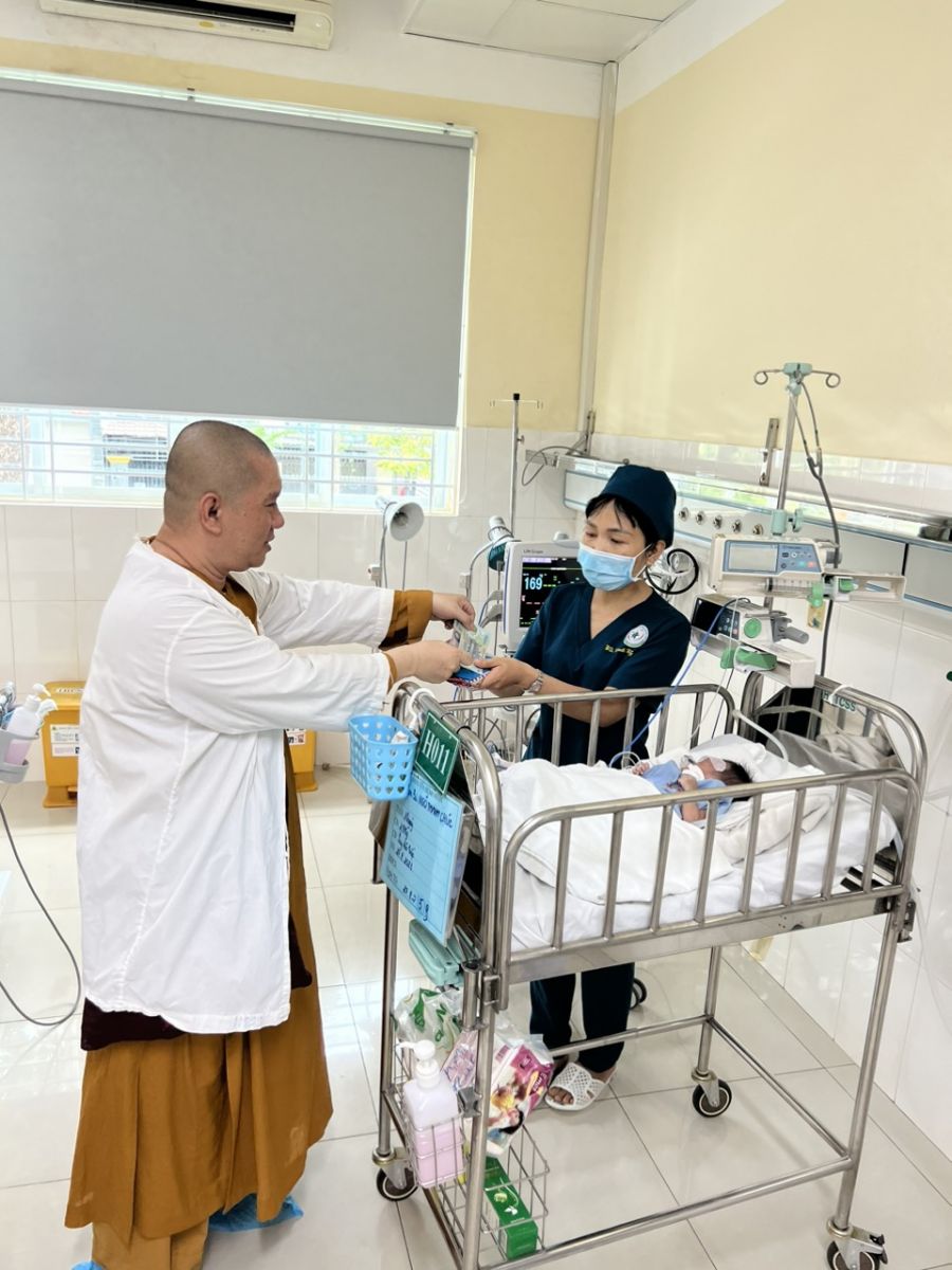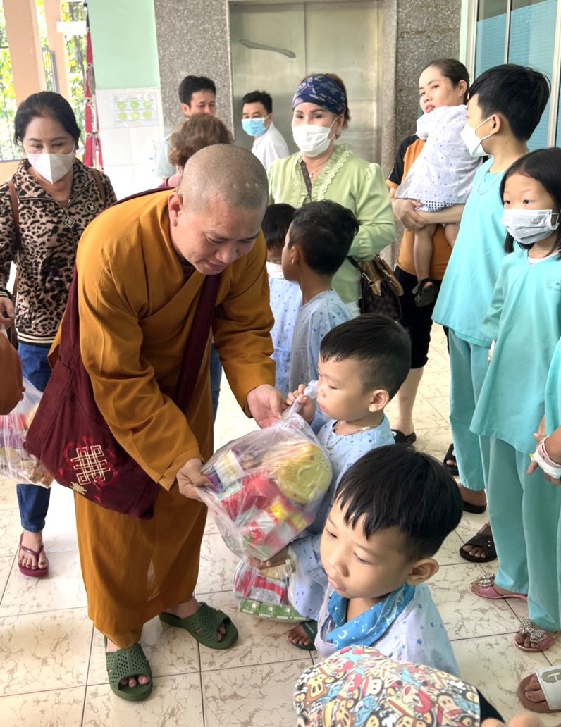 Nhằm hỗ trợ và giúp đỡ cho các em vượt qua khó khăn, ĐĐ. Thích Nguyên Thông cùng đoàn Từ thiện đã đến trao tặng tại Bệnh viện Nhi Đồng 1 là 100 phần quà, tại Bệnh viện Nhi Đồng 2 là 200 phần quà, tổng là 300 phần quà.
