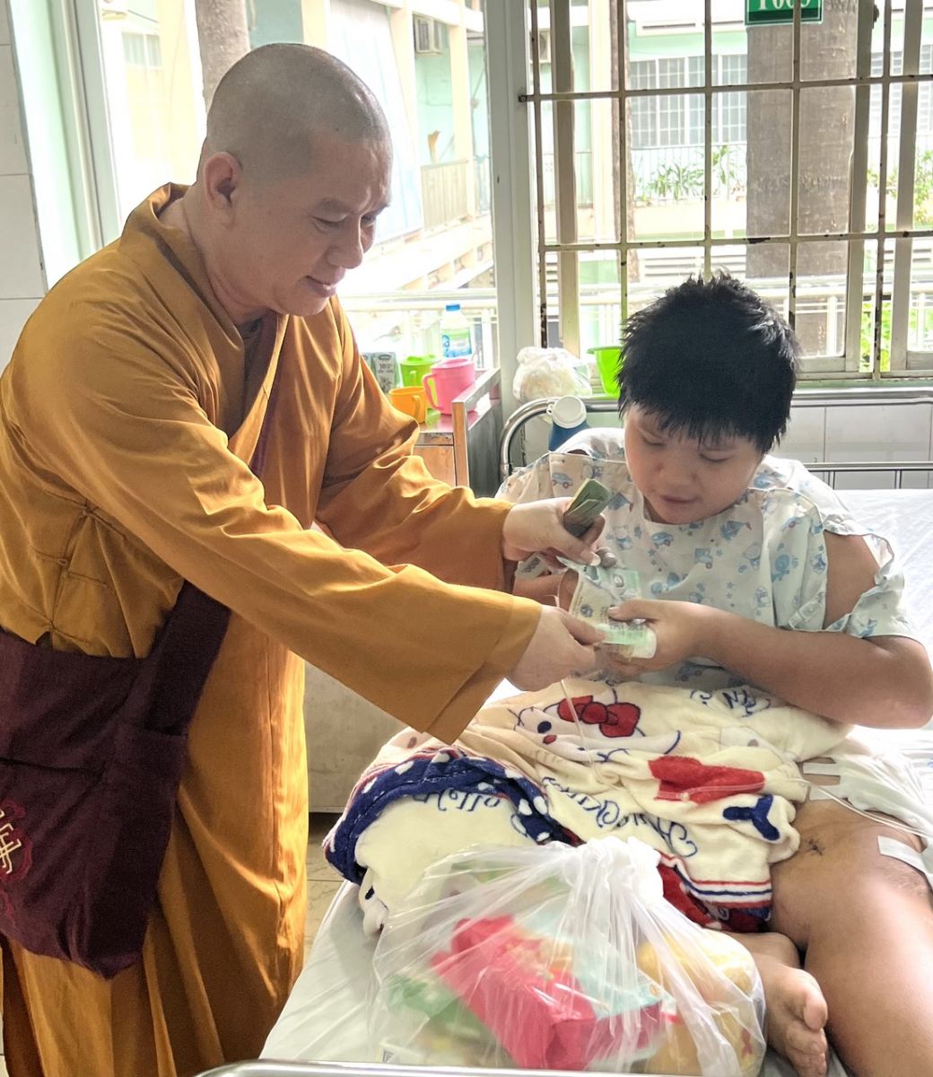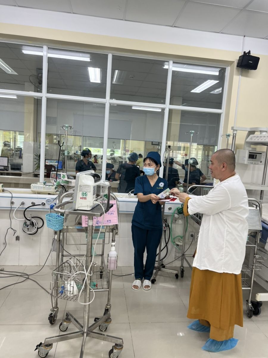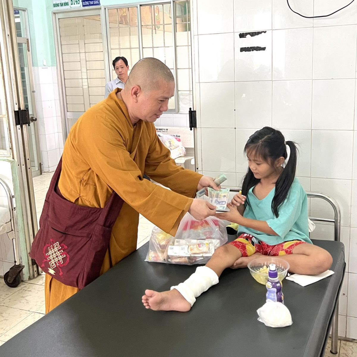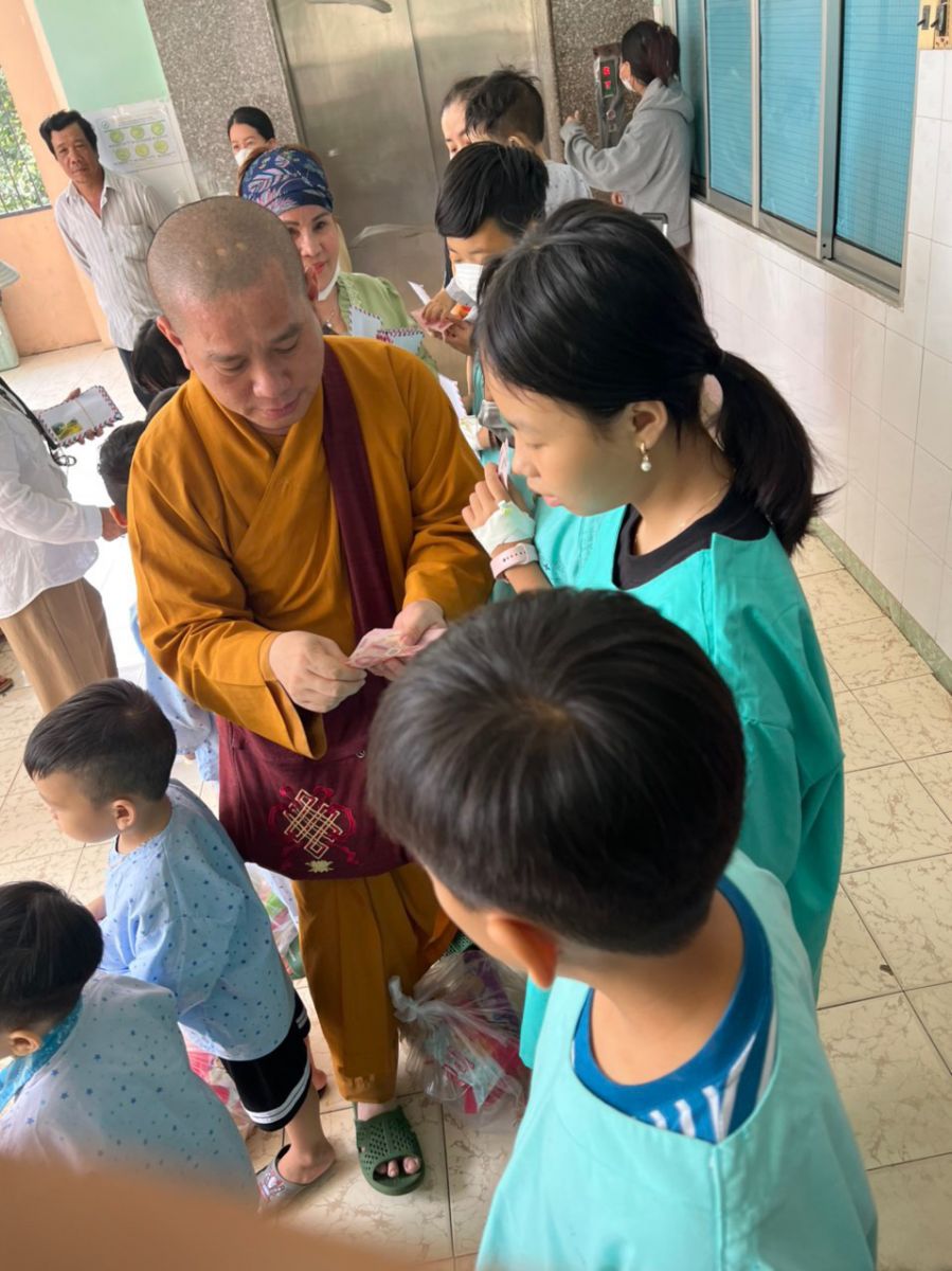 Nhằm hỗ trợ và giúp đỡ cho các em vượt qua khó khăn, ĐĐ. Thích Nguyên Thông cùng đoàn Từ thiện đã đến trao tặng tại Bệnh viện Nhi Đồng 1 là 100 phần quà, tại Bệnh viện Nhi Đồng 2 là 200 phần quà, tổng là 300 phần quà.