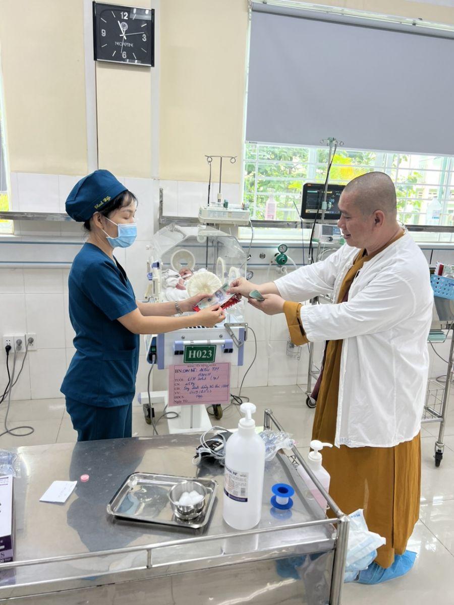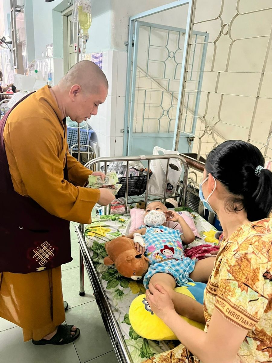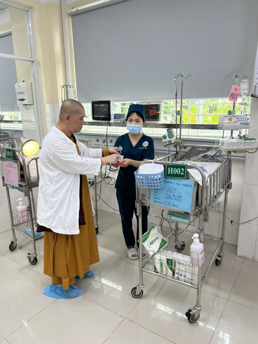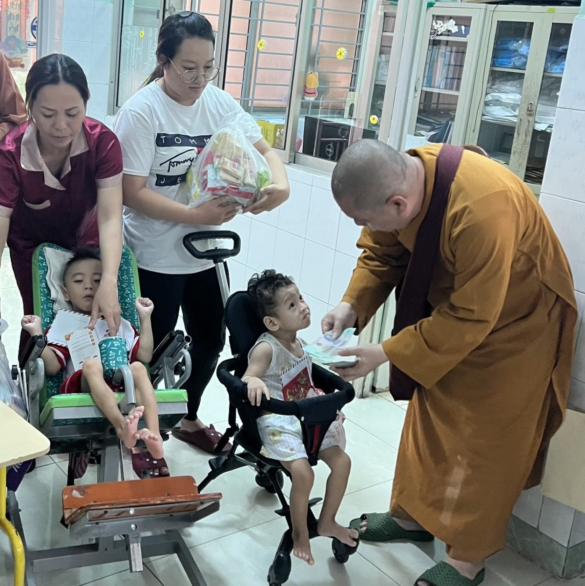 Nhằm hỗ trợ và giúp đỡ cho các em vượt qua khó khăn, ĐĐ. Thích Nguyên Thông cùng đoàn Từ thiện đã đến trao tặng tại Bệnh viện Nhi Đồng 1 là 100 phần quà, tại Bệnh viện Nhi Đồng 2 là 200 phần quà, tổng là 300 phần quà.