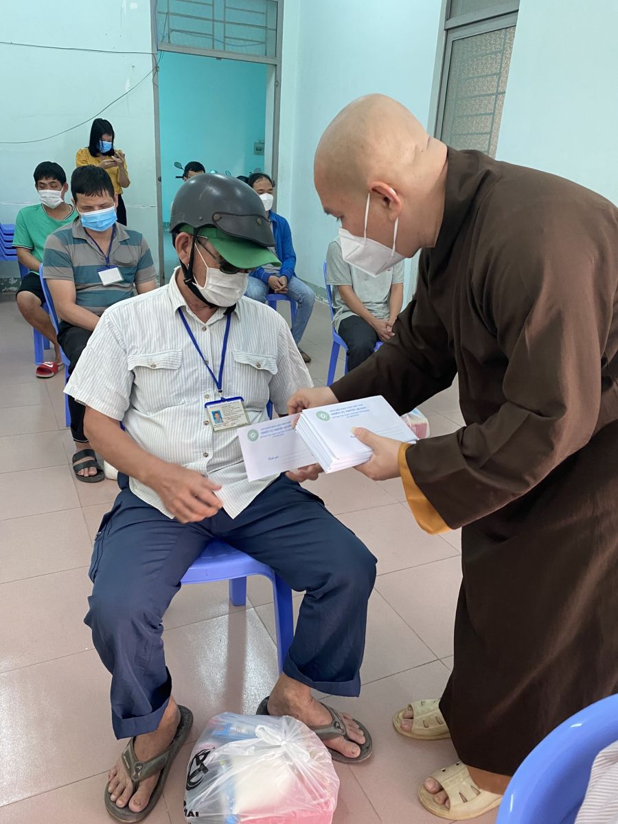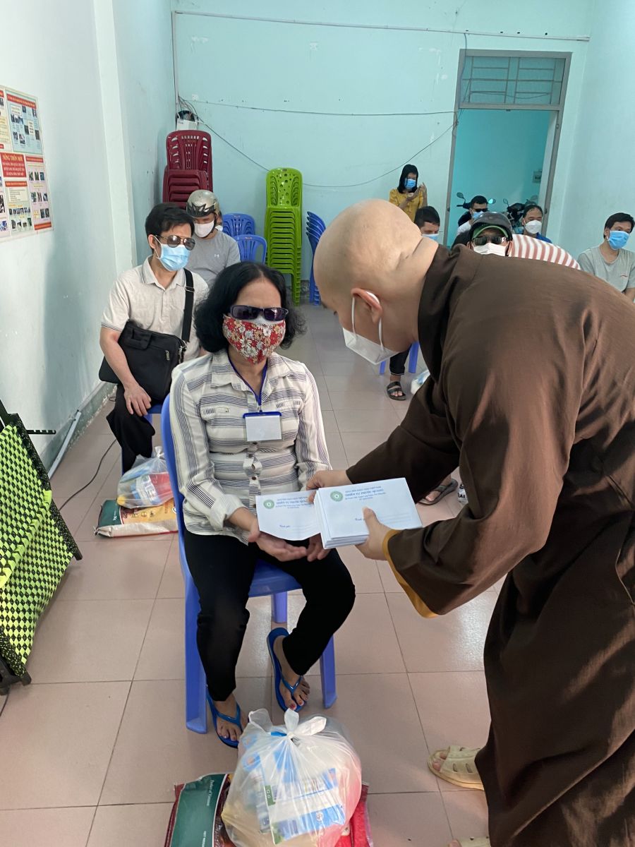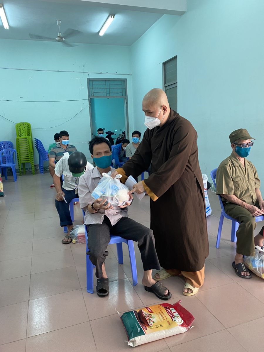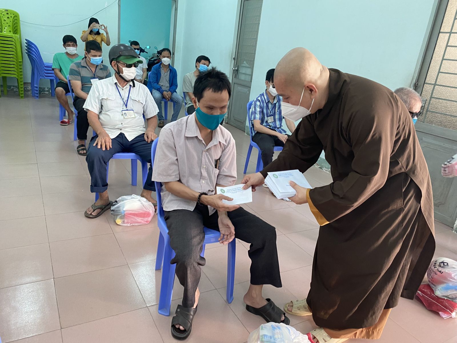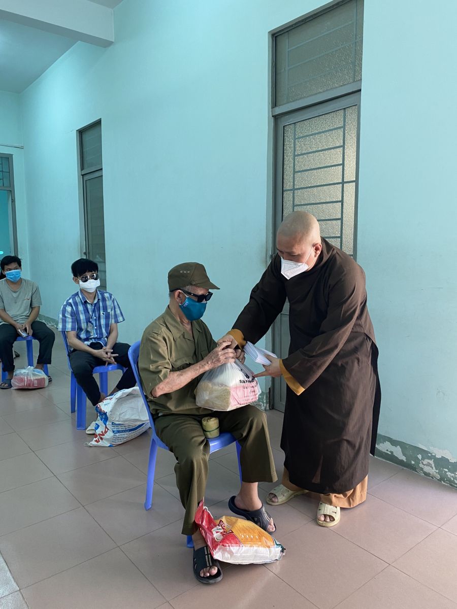 Trên cơ sở đó, đoàn đã thực hiện cúng dường hơn 100 phần quà cho chư tôn Đức Ni và 100 phần quà khác dành cho hội viên Hội Người mù tại huyện Long Thành nhằm hỗ trợ phần nào những khó khăn mà dịch bệnh Covid-19 gây ra. Tổng 200 phần quà trị giá là 80.000.000 đồng.