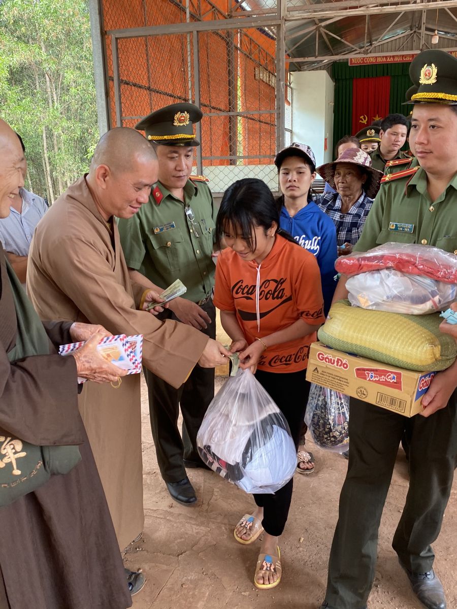 Đoàn từ thiện dưới sự hướng dẫn, chứng minh của Đại Đức Thích Nguyên Thông - Phó trưởng ban TTXH GHPGVN tỉnh Đồng Nai, Trưởng ban TTXH GHPGVN huyện Long Thành, trụ trì thiền tự Phước Quang (xã Phước Thái, huyện Long Thành, Đồng Nai); Đại Đức Thích Đạt Ma Nghiêm Thuận - cơ sở Trúc Lâm Long Đức; Đại Đức Thích Trúc Thông Nhuận; sư cô Thích Nữ Diệu Thông - Uỷ viên kiêm thủ quỹ ban TTXH GHPGVN huyện Long Thành. Cùng tham gia đoàn từ thiện có đồng chí Đại tá Nguyễn Thanh Liêm - Trưởng phòng PA02 Công an Đồng Nai cùng các đồng chí, cán bộ công an và quý mạnh thường quân, quý Phật tử thiền tự Phước Quang.