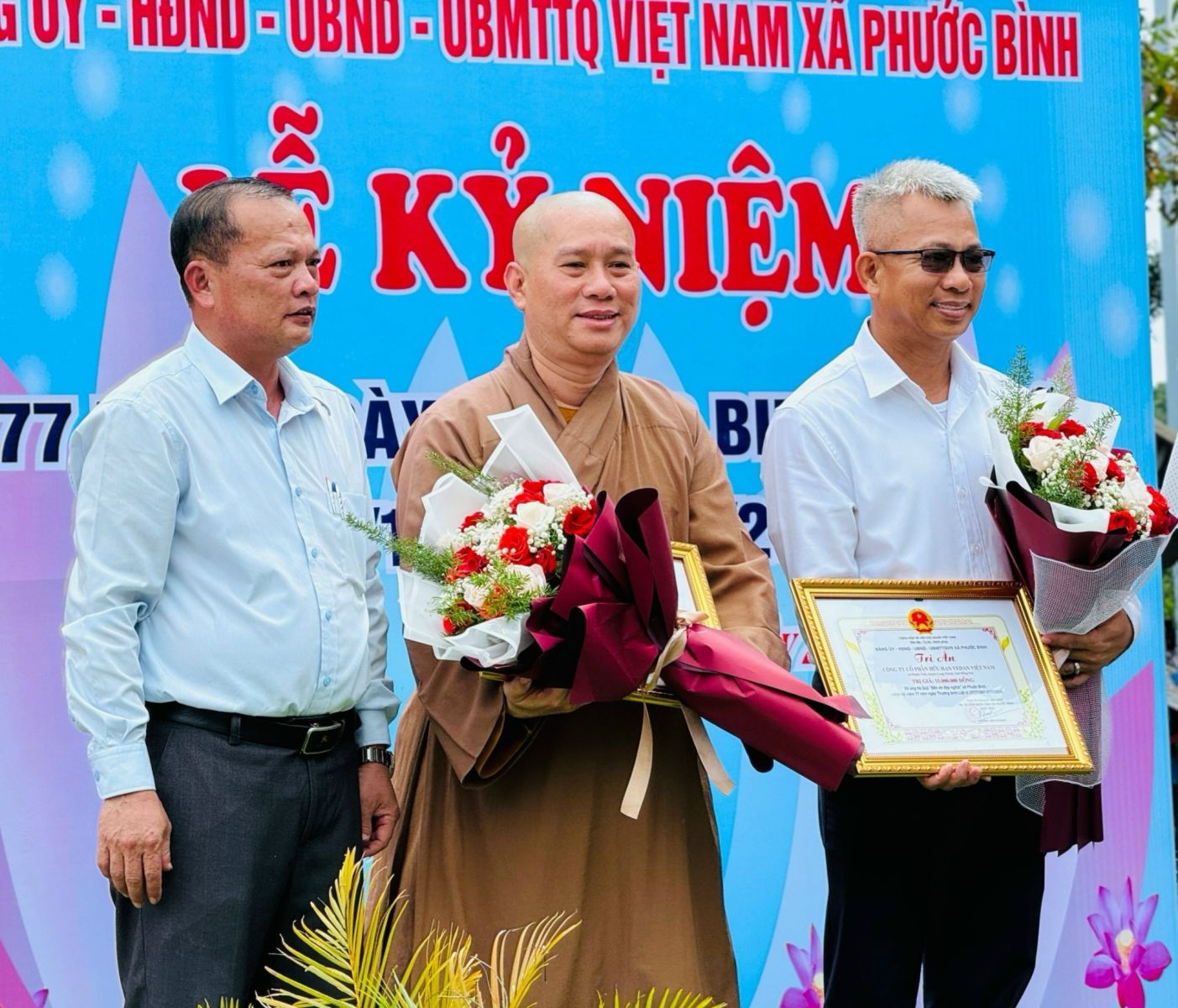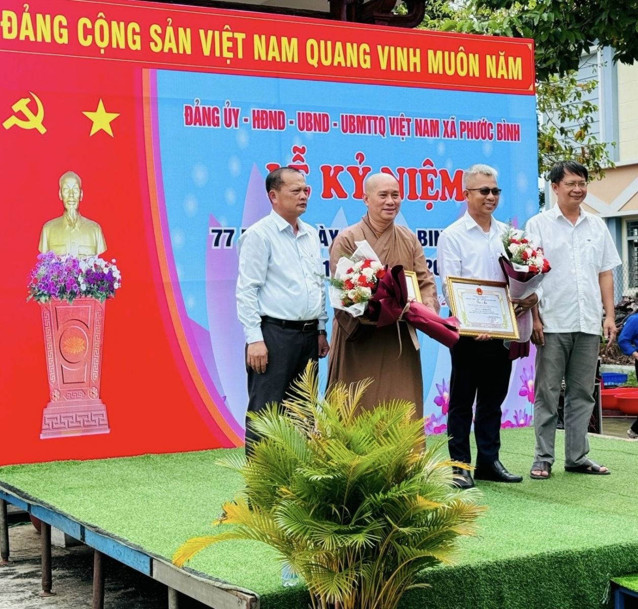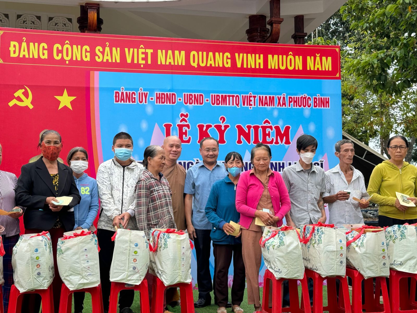 Tham dự tại ngày lễ, ĐĐ. Thích Nguyên Thông - Phó trưởng phân ban quản lý các cơ sở bảo trợ Phật giáo ban Từ thiện xã hội Trung ương, Phó Trưởng ban Thường trực Ban Từ thiện xã hội Phật giáo tỉnh Đồng Nai, Phó ban kiêm Chánh Thư ký Ban Trị sự GHPGVN huyện Long Thành, Trụ trì Thiền tự Phước Quang đã trao tặng một số phần quà tri ân cho các bà mẹ Việt Nam nhân dịp ngày lễ kỷ niệm này.
