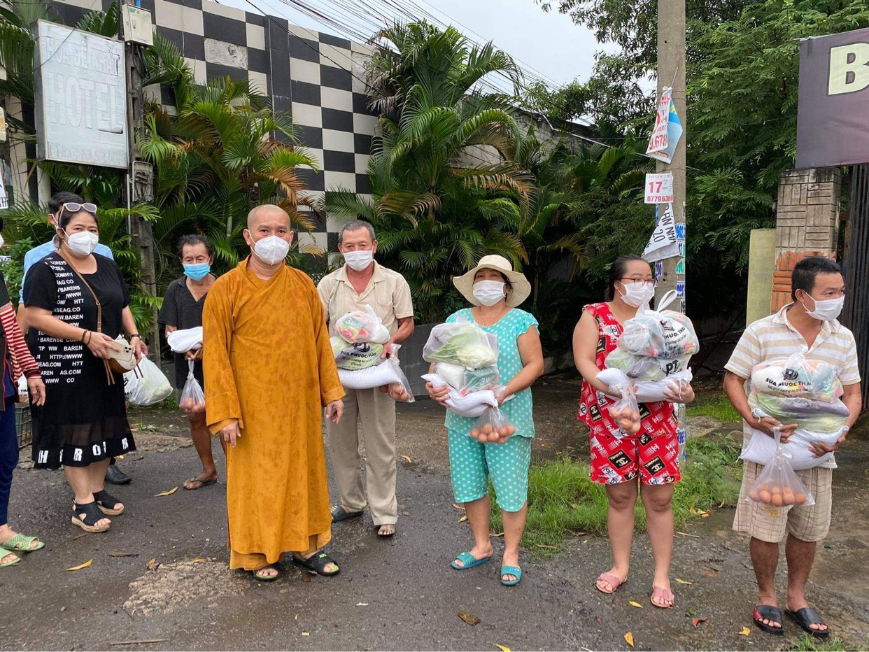 Từ đầu đợt dịch đến nay, Thiền tự Phước Quang đã liên tục tổ chức 5 chuyến thăm tặng quà cho nhiều bà con hoàn cảnh kinh tế khó khăn, công nhân không có việc làm phải ở trọ trên địa bàn xã An Phước.