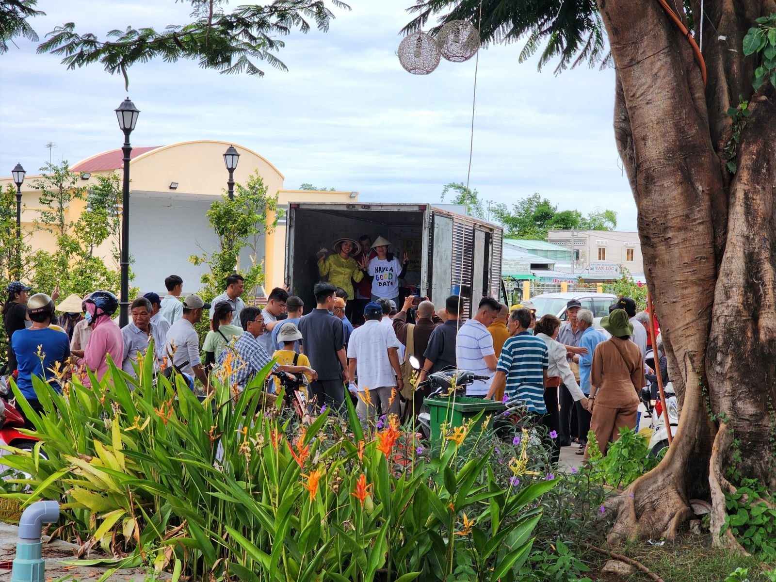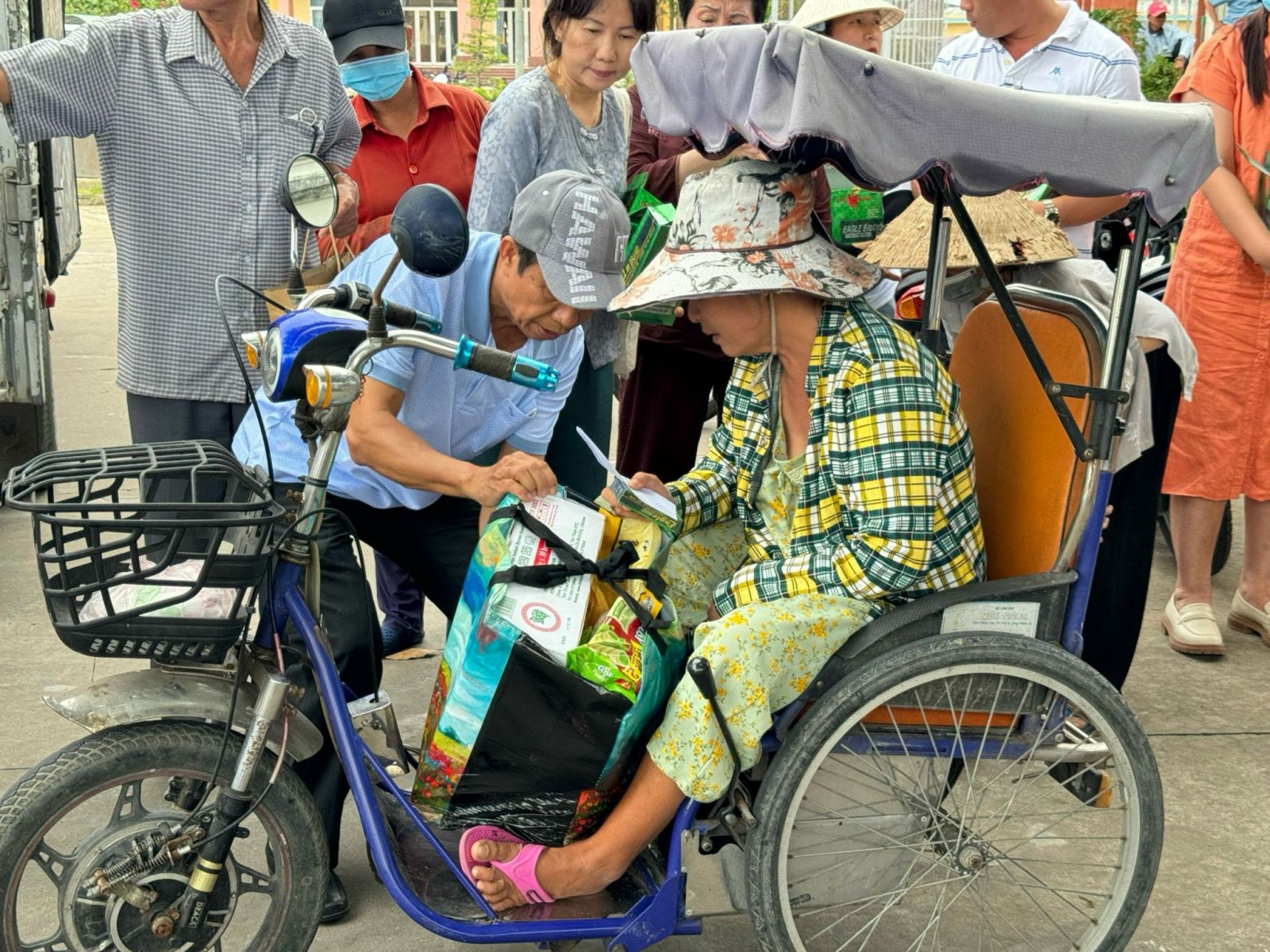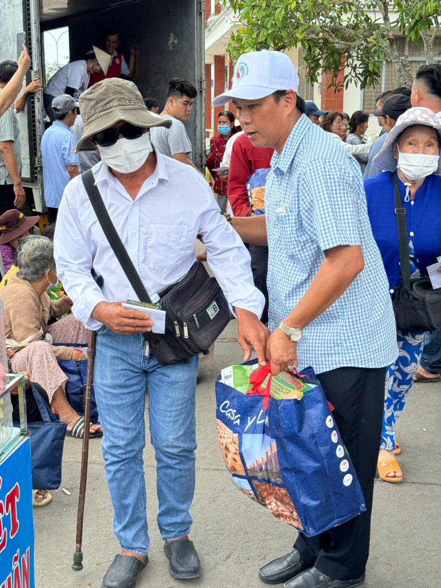 Đoàn đã đến trao tặng 200 phần quà cho bà con khó khăn, bà con Hội người mù, người già neo đơn, trẻ em khuyết tật. Mỗi phần quà bao gồm Gạo, mì, dầu ăn, đường, nước tương, bột ngọt và các nhu yếu phẩm khác, và 1 bao thư tiền mặt 100 ngàn đồng. Tổng trị giá cho 200 phần quà là 120 triệu đồng.