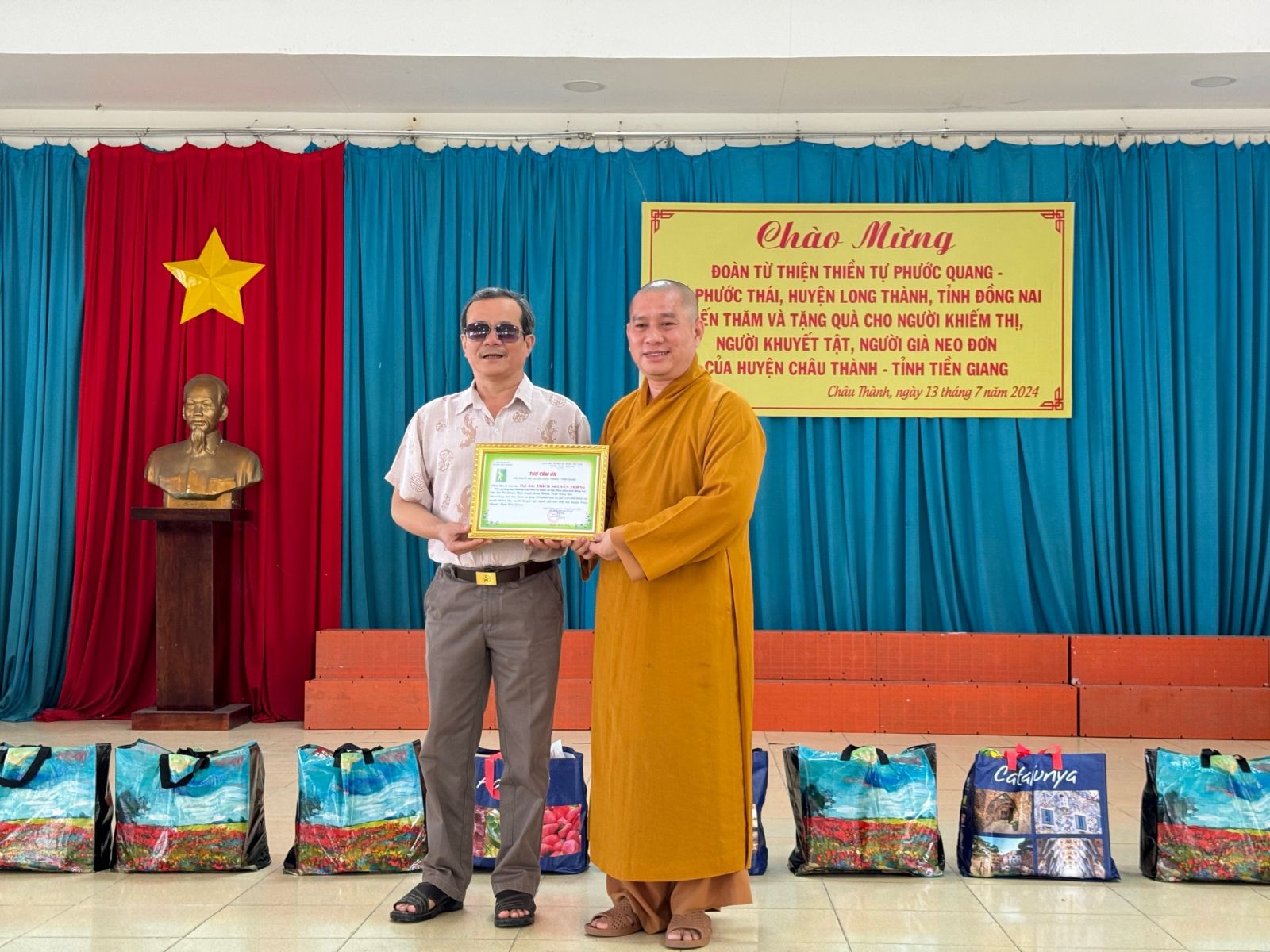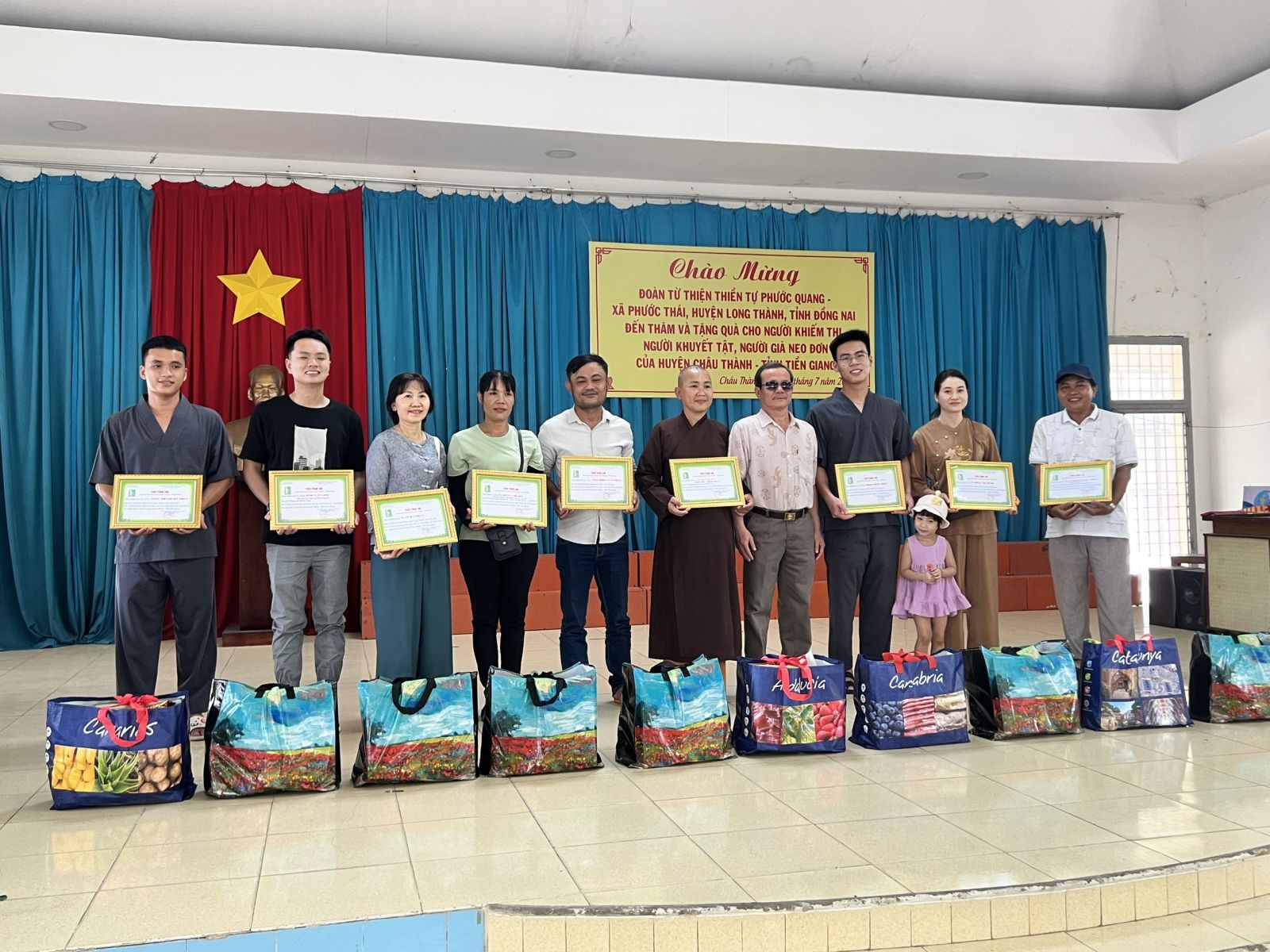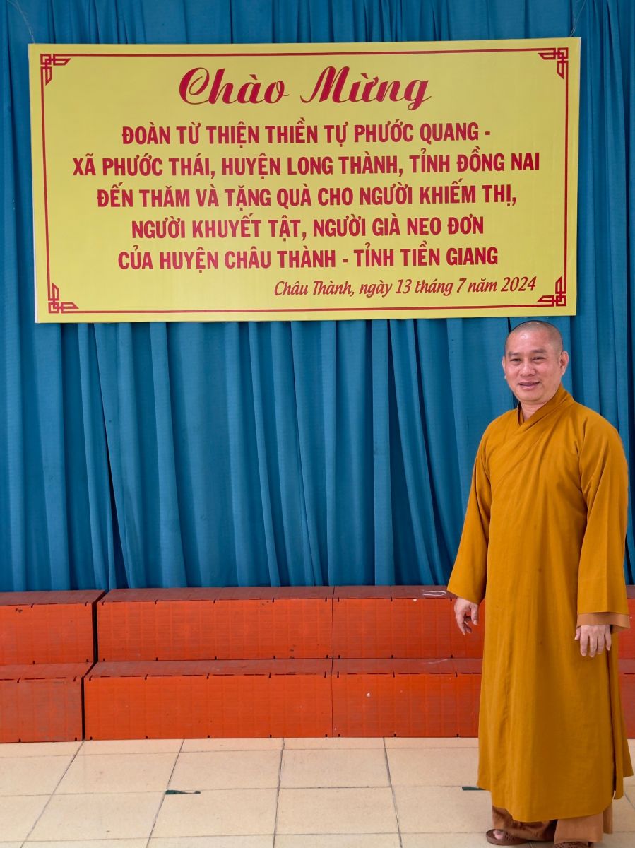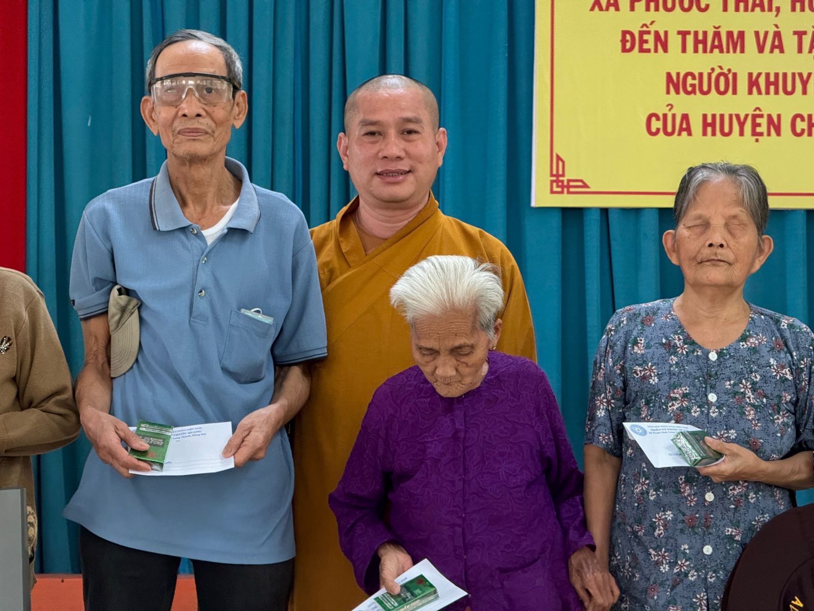 Đi cùng đoàn có ĐĐ. Thích Đạt Ma Toàn Nguyện - Phó Trưởng ban Từ thiện xã hội GHPGVN huyện Long Thành; ông Phạm Ngọc Vinh – Chủ tịch Hội chữ Thập đỏ huyện Long Thành; ông Nguyễn Tấn Lâm – Phó Trưởng phòng kinh tế huyện Long Thành; ông Nguyễn Văn Thắng – Phó Chủ tịch Hội khuyết học huyện Long Thành; ông Đinh Văn Bất – Chủ tịch Hội cựu thanh niên xung phong huyện Long Thành; ông Phạm Minh Triết – Phó Trưởng Công an xã Phước Bình; cùng đại diện các Công ty Thành Mỹ Phát xã Phước Bình; CTY Hiệp Tuấn Phát – xã Long Phước; Cửa hàng Thuốc tây 239 xã Phước Thái; Cửa hàng Điện thoại Apple xã Phước Thái; cùng các mạnh thường quân, Phật tử đi cùng đoàn.