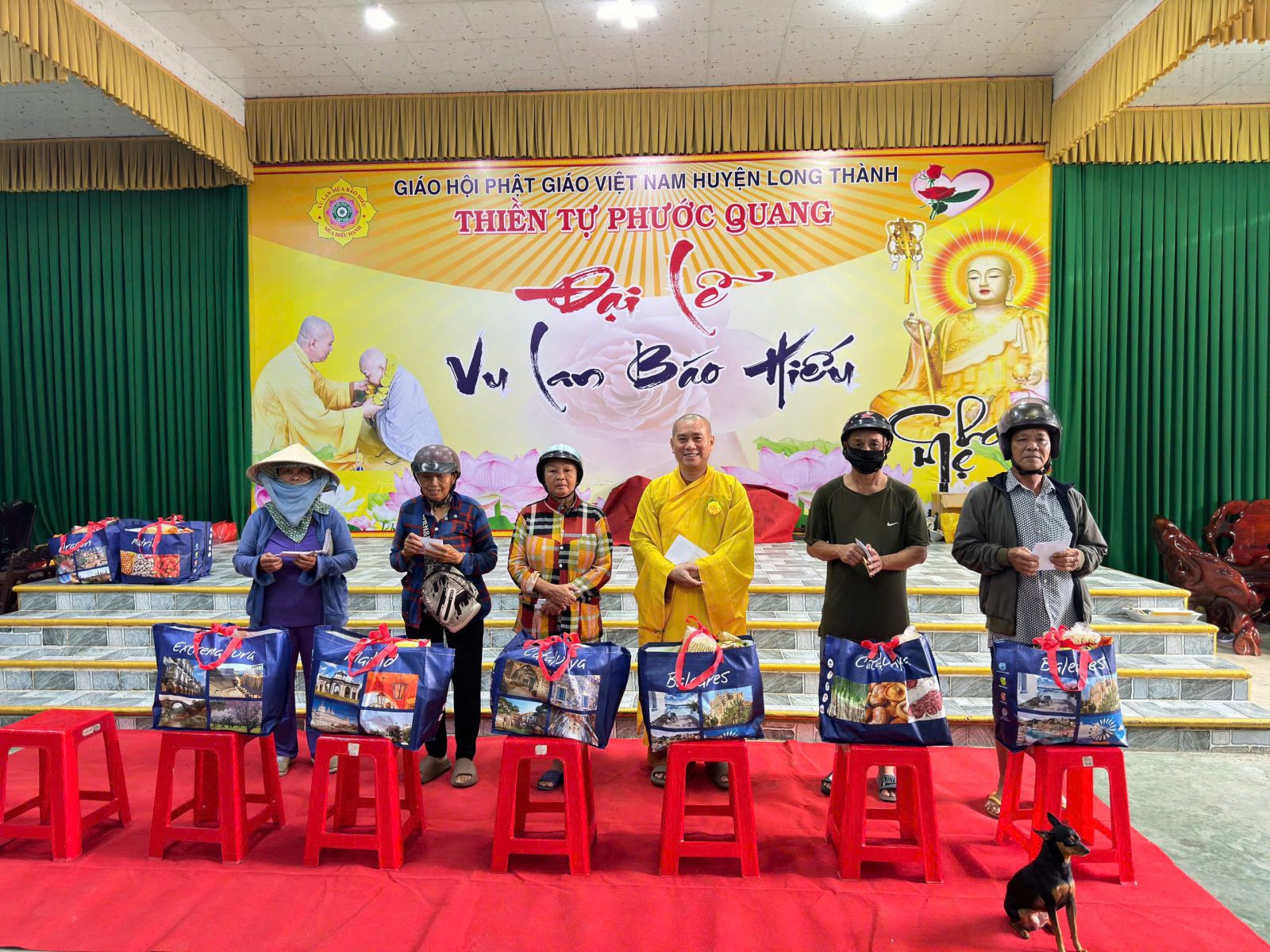 Tham dự buổi tặng quà có ĐĐ. Thích Nguyên Thông - Ủy viên Ban Trị sự tỉnh, Phó Trưởng ban Thường trực ban Từ thiện xã hội GHPGVN tỉnh Đồng Nai; Phó ban kiêm Chánh Thư ký Ban Trị sự GHPGVN huyện Long Thành, Trụ trì Thiền tự Phước Quang; cùng sự tham dự của bà Lê Thị Thanh Nguyệt – Huyện Ủy viên, Chủ tịch Ủy ban MTTQVN huyện Long Thành; ông Phạm Ngọc Vinh – Chủ tịch Hội chữ thập đỏ huyện Long Thành; bà Trần Thị Bạch Phượng – xã Tam An; cùng các Mạnh thường quân và quý Phật tử.