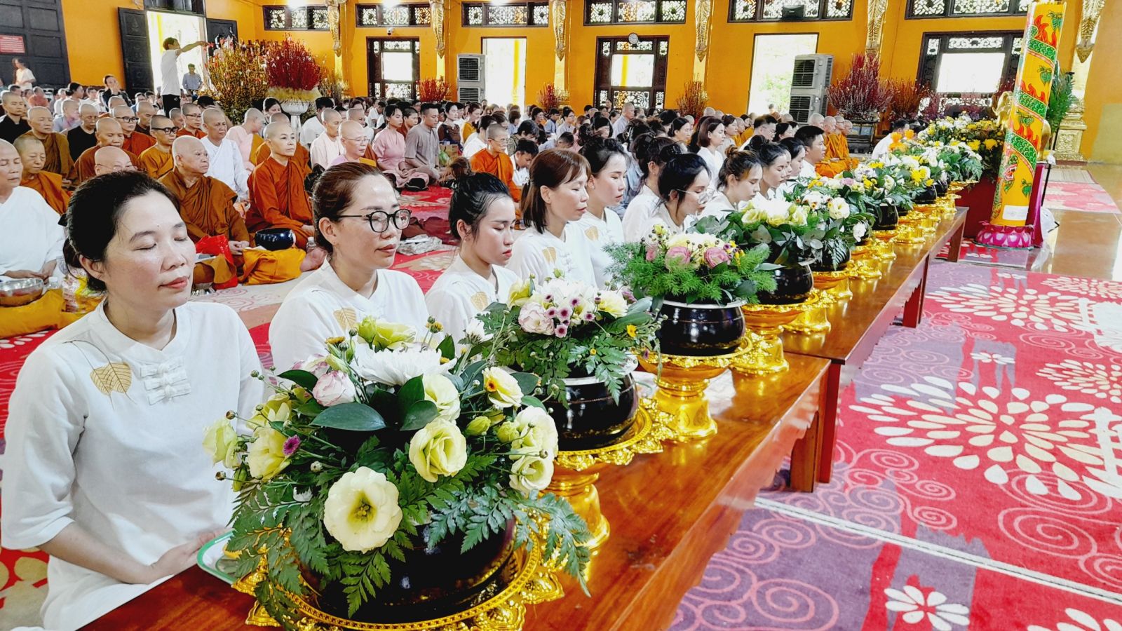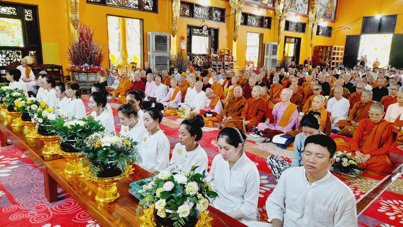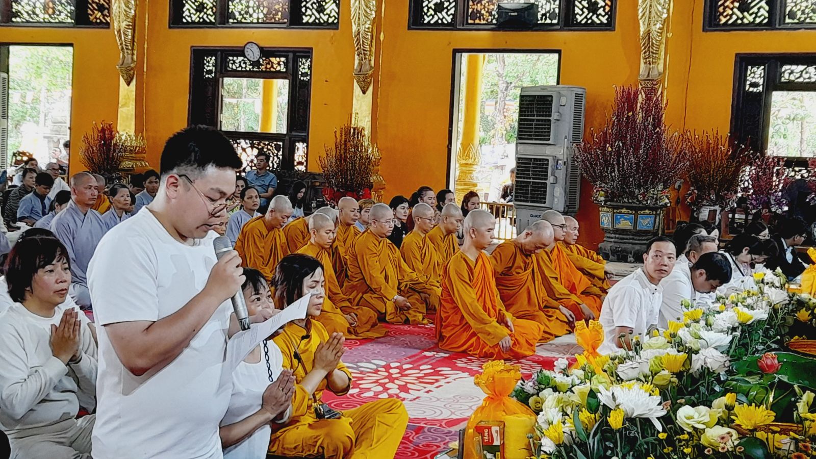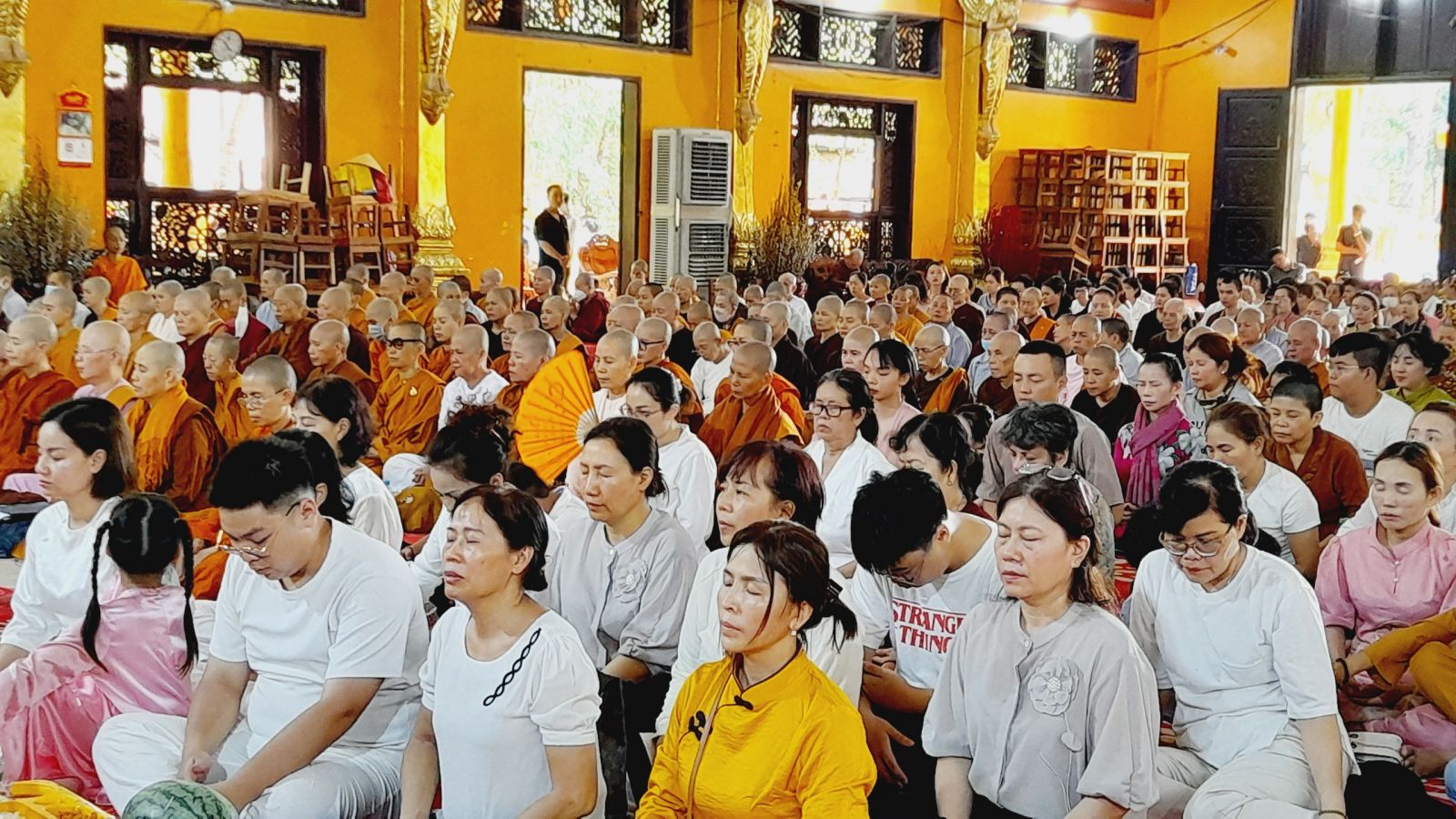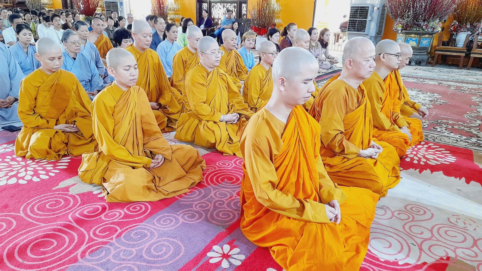 Sau thời khóa lễ bái tam bảo, tọa thiền, hòa thượng Thích Bửu Chánh - Phó thường trực ban trị sự GHPGVN tỉnh Đồng Nai; trụ trì TV Phước Sơn, chủ trì thuyết giảng về nhân duyên thị hiện của Đức Phật.