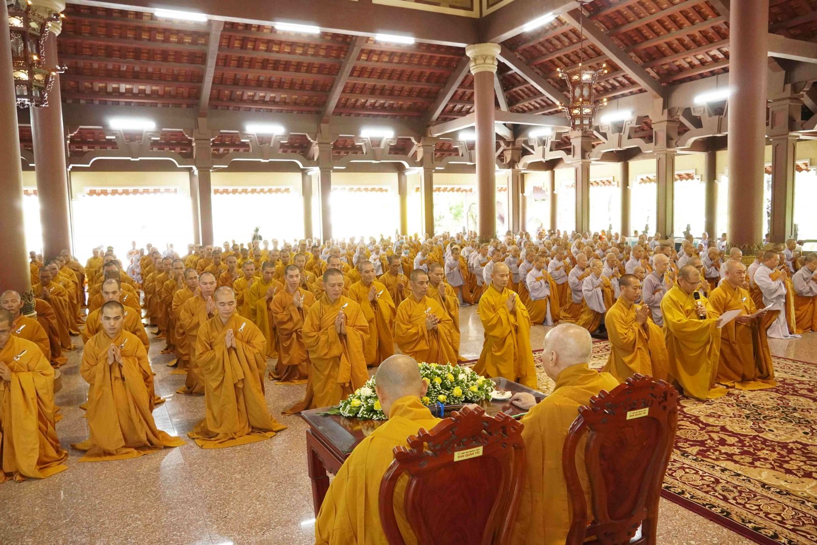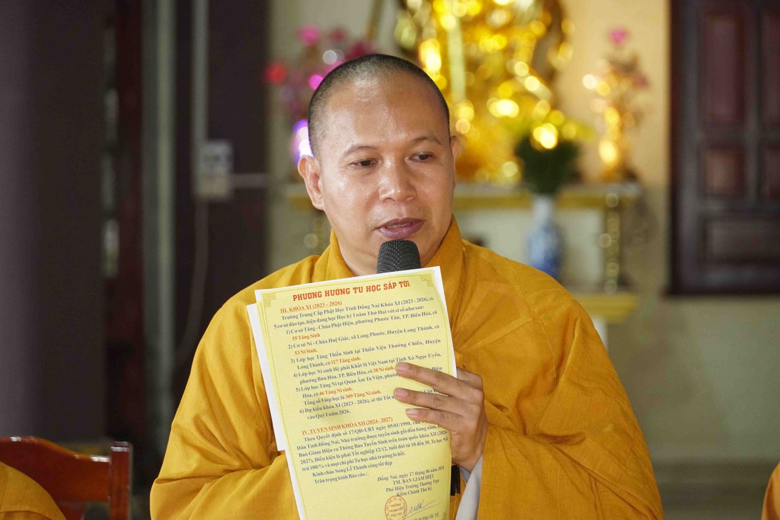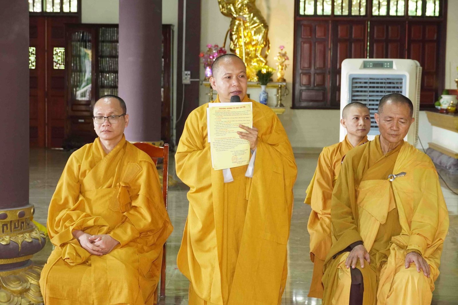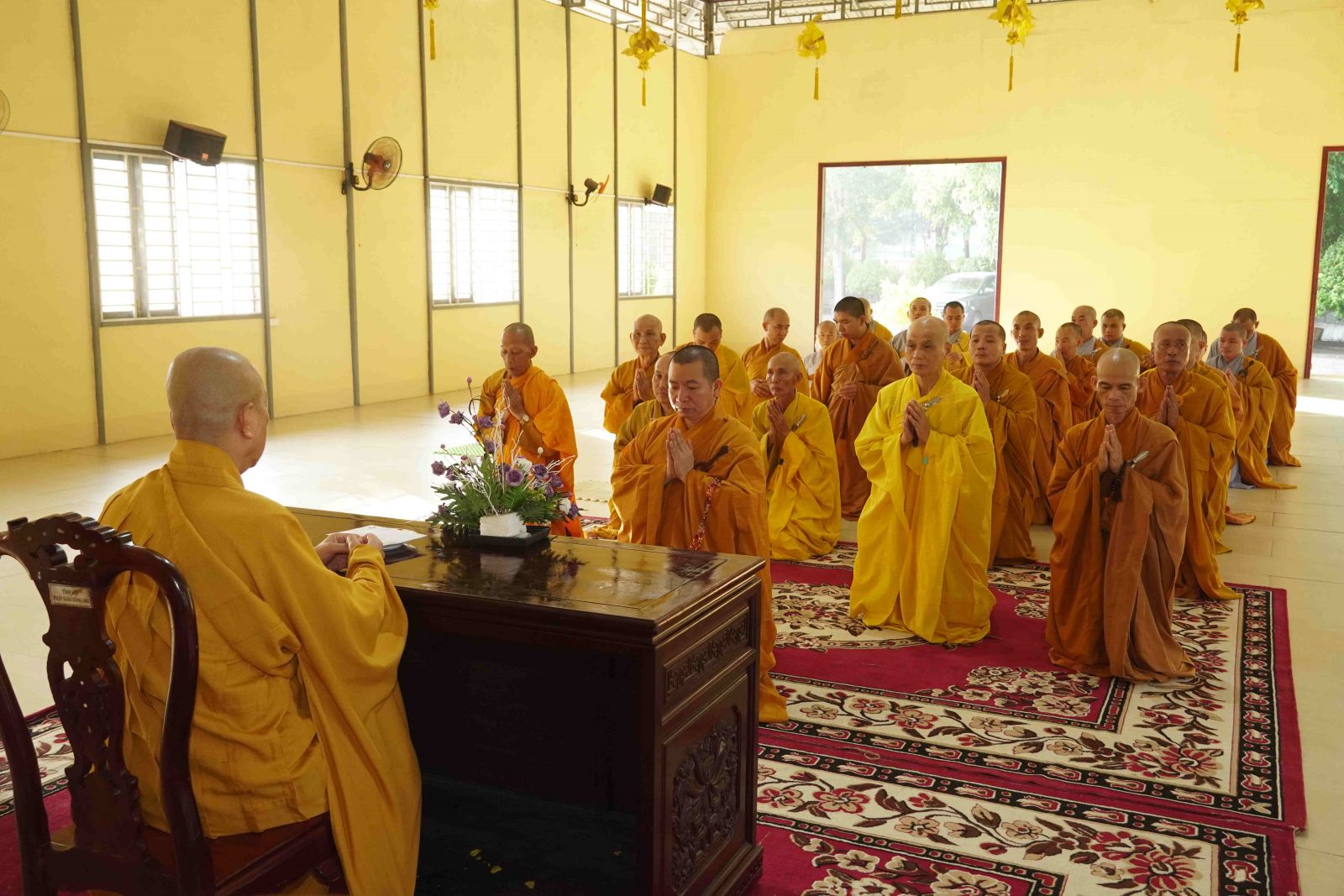 Tại đây, Thượng toạ Trưởng Ban Trị sự tỉnh Đồng Nai đã có lời sách tấn chư hành giả và cùng lắng nghe chư hành giả báo cáo chương trình tu học tại Thiền viện trong 03 tháng an cư.