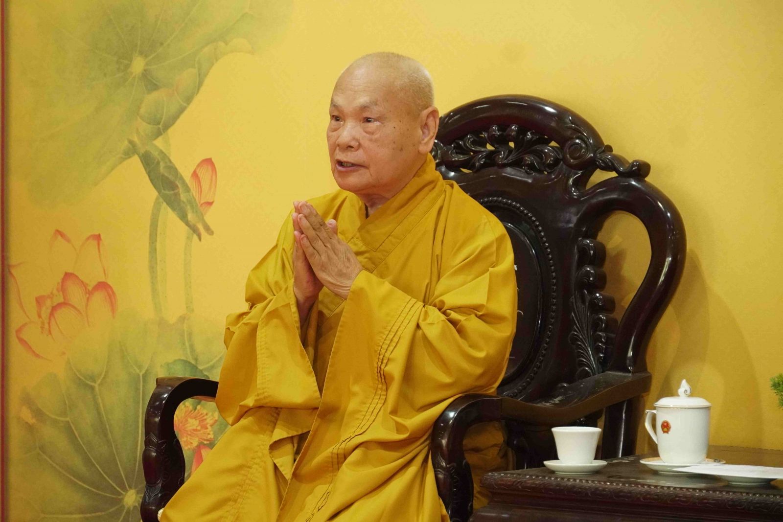 Sau khi đảnh lễ, chư Tôn đức đã được lắng nghe những lời pháp ngữ của Hoà thượng và cùng chụp hình lưu niệm.