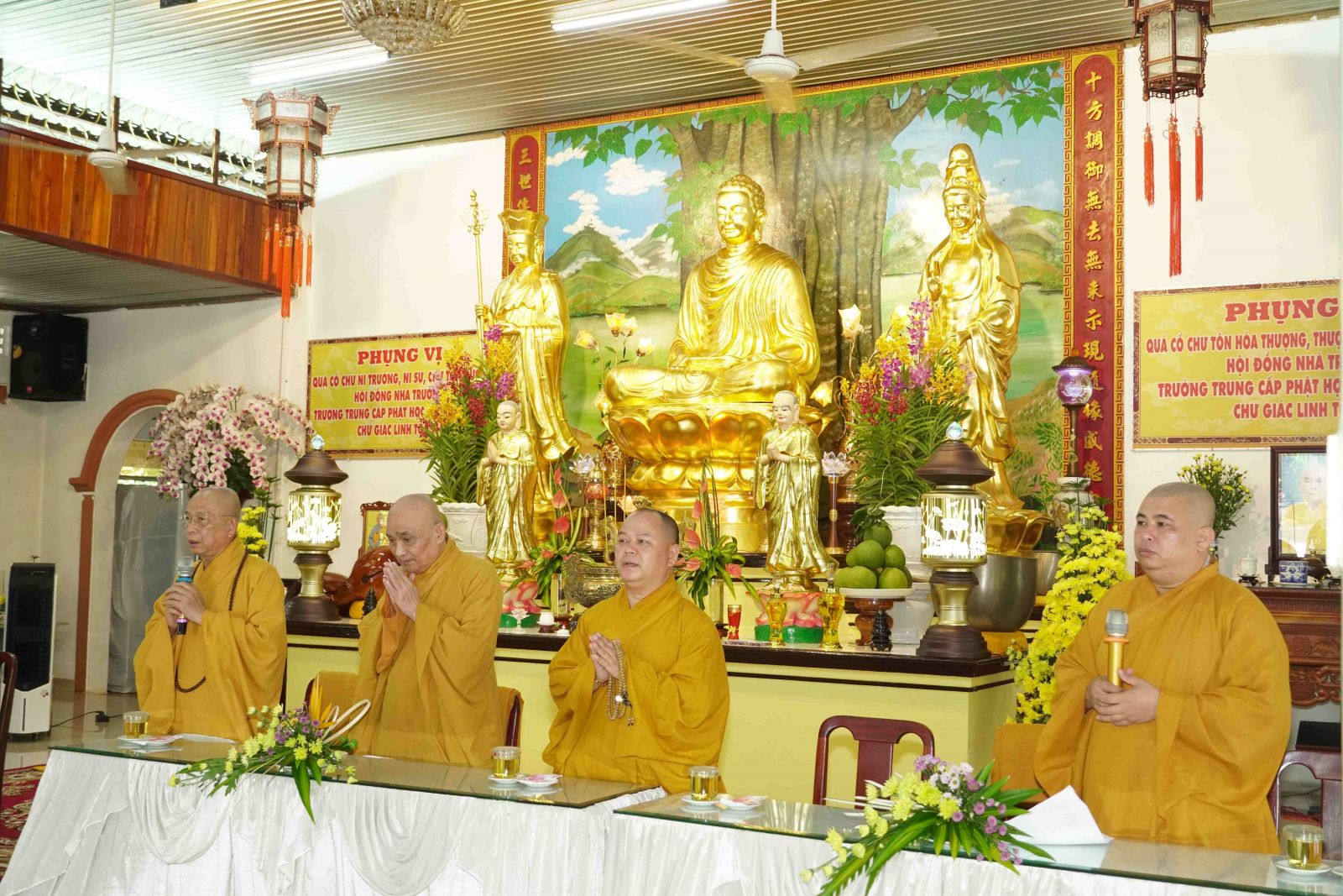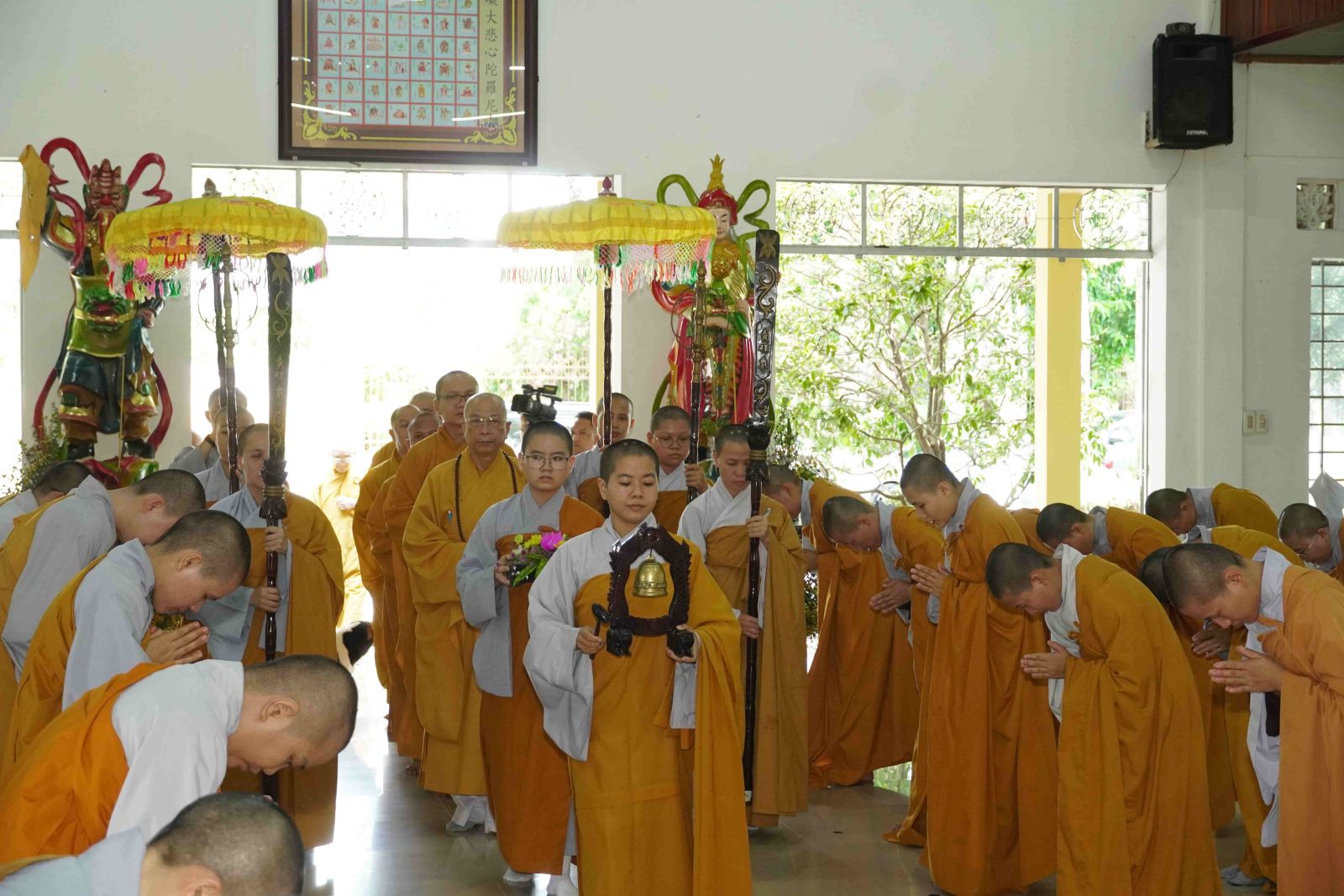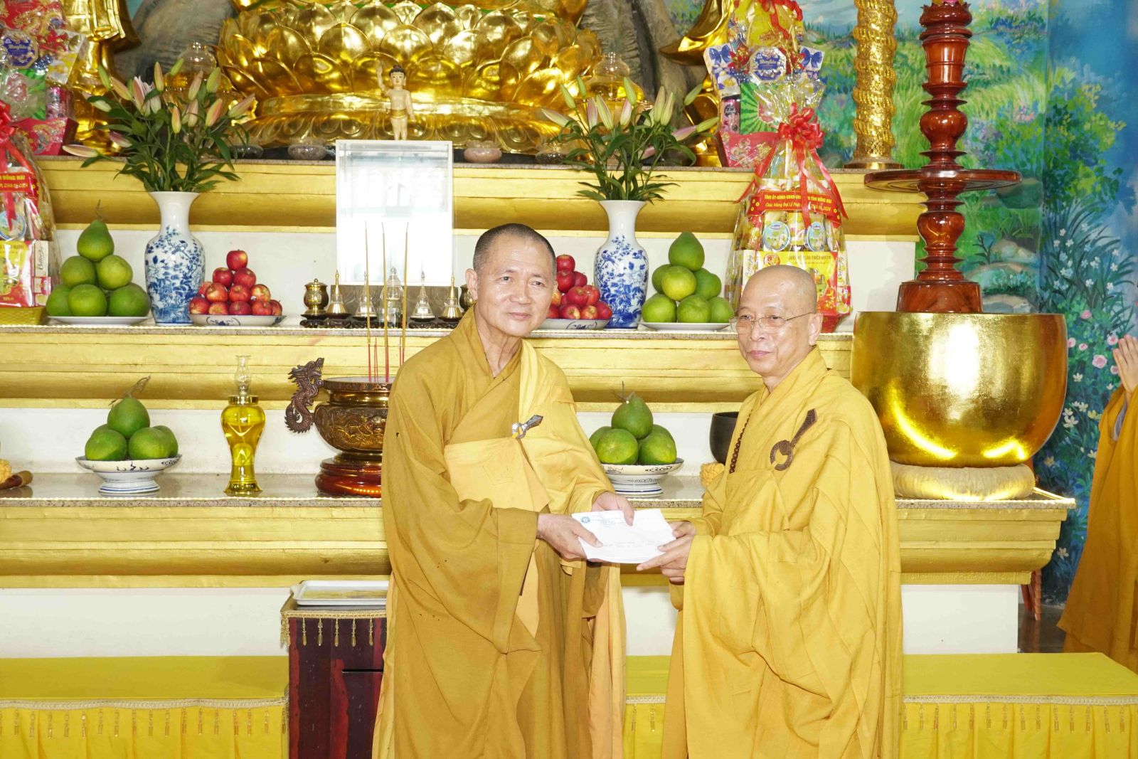 Đoàn do TT. Thích Huệ Khai - Uỷ viên Thường trực HĐTS, Trưởng ban Ban Trị sự, Trưởng ban Tăng sự GHPGVN tỉnh làm Trưởng đoàn; đi cùng đoàn có HT. Thích Bửu Chánh - Uỷ viên Thư ký HĐTS, Phó Trưởng ban Thường trực Ban Trị sự GHPGVN tỉnh; TT. Thích Minh Trì - Phó Ban Trị sự GHPGVN tỉnh; TT. Thích Thiện Pháp - Phó Ban Trị sự GHPGVN tỉnh; ĐĐ. Thích Thiện Trí - Phó Thư ký, Chánh Văn phòng Ban Trị sự GHPGVN tỉnh; ĐĐ. Thích Phước Toàn - Uỷ viên Thường trực Ban Trị sự GHPGVN tỉnh; ĐĐ. Thích Huệ Thới - Phó Văn phòng Ban Trị sự GHPGVN tỉnh; ĐĐ. Thích Thiện Hải - Phó Văn phòng Ban Trị sự GHPGVN tỉnh. cùng chư Tôn đức đi cùng đoàn.