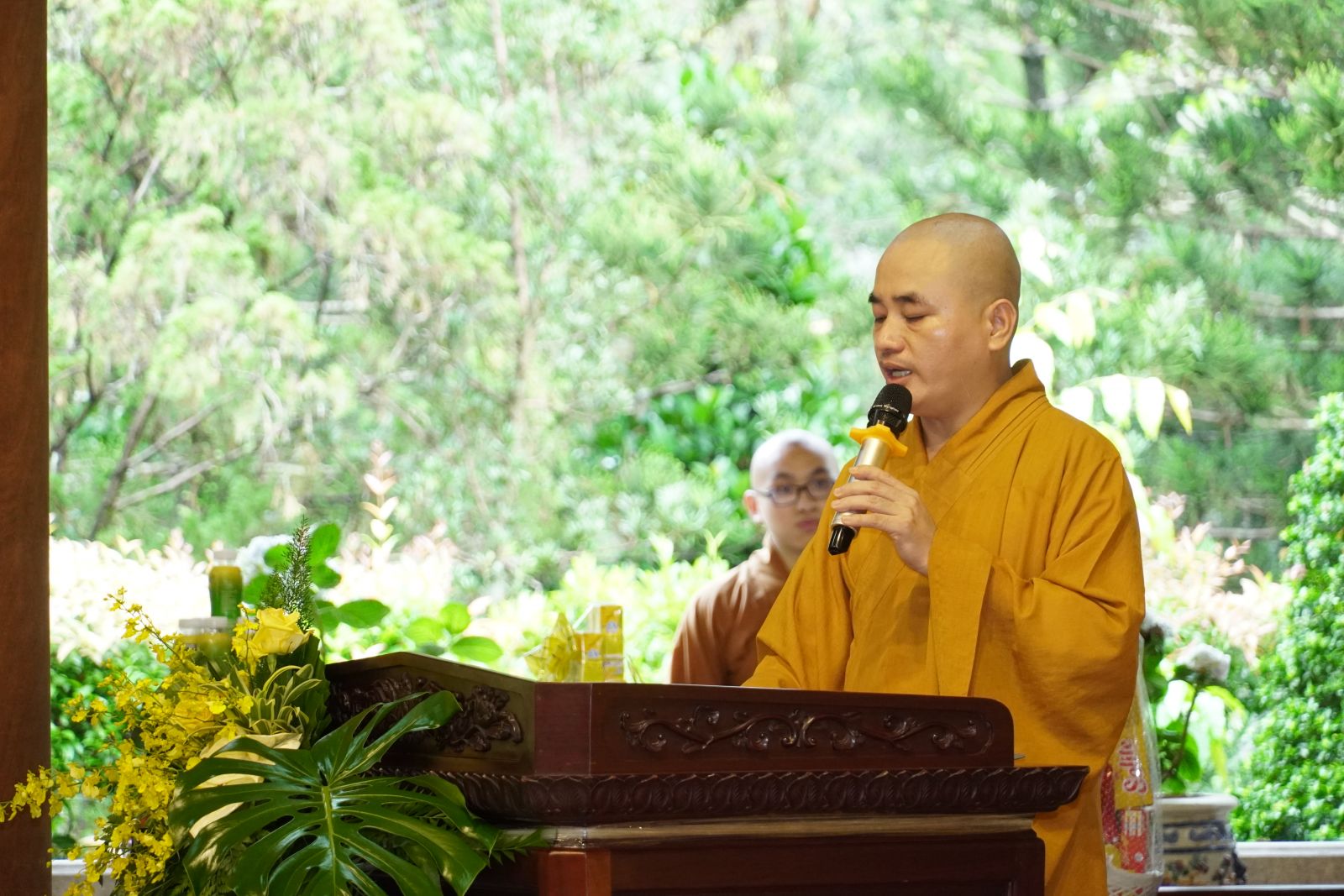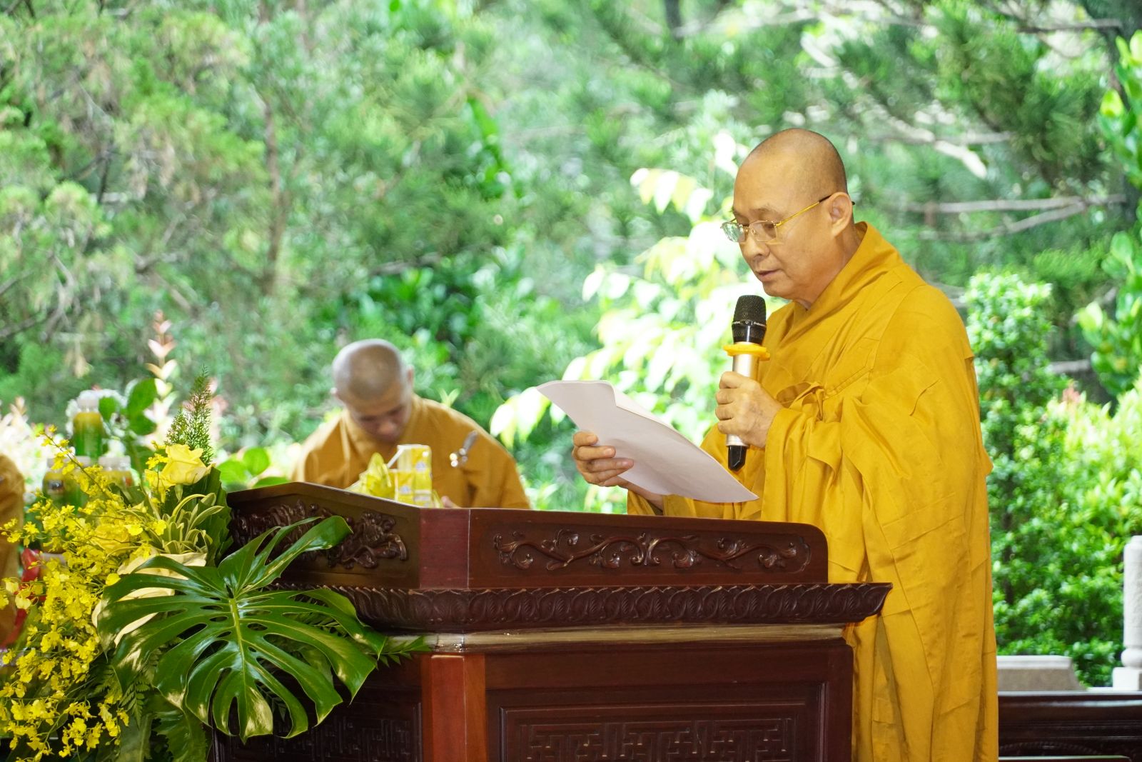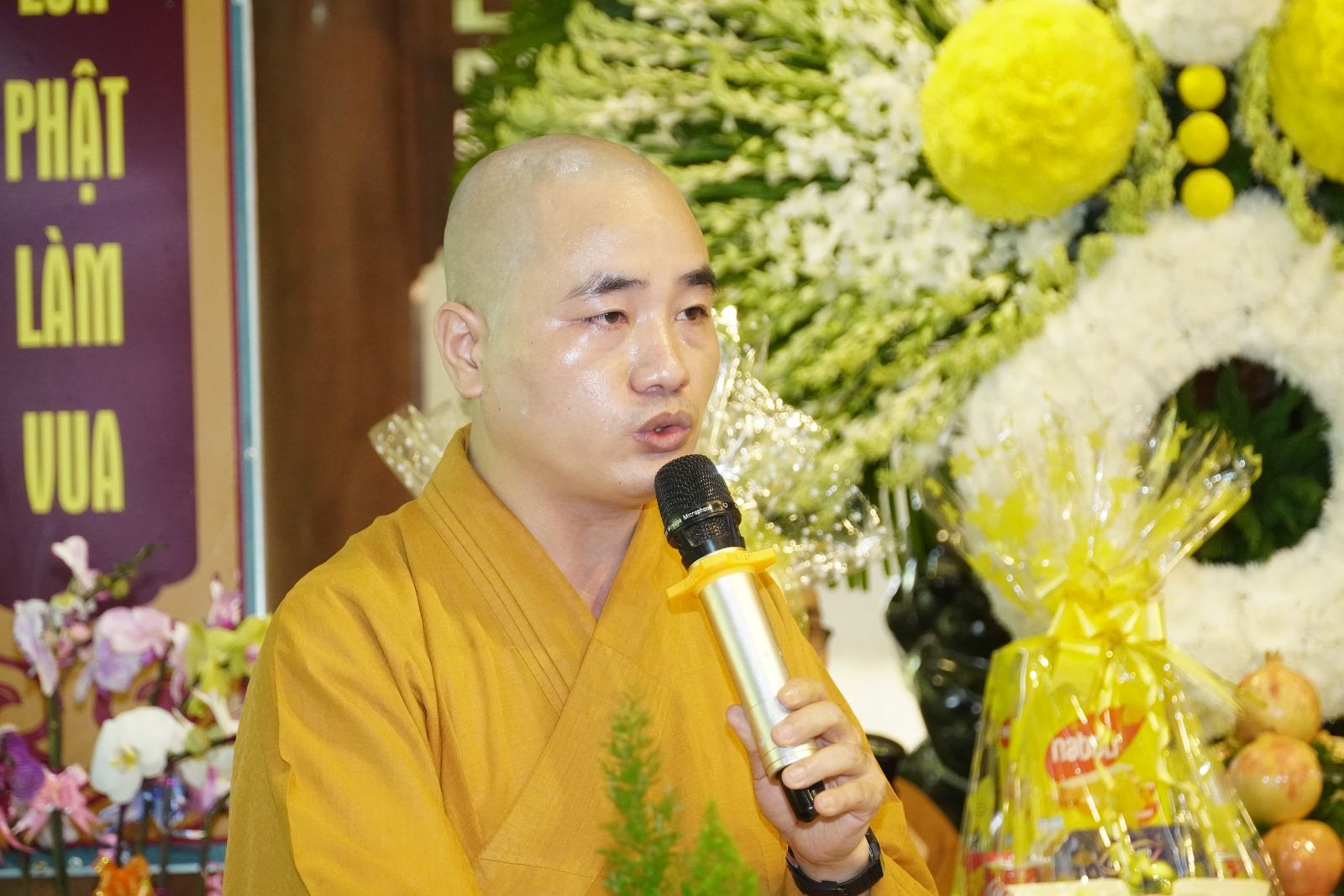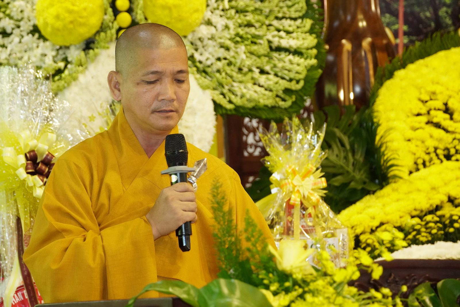 Trang nghiêm trong buổi lễ tưởng niệm Đức vua – Phật hoàng Trần Nhân Tông nhập Niết bàn, TT. Thích Huệ Khai - Ủy viên HĐTS, Trưởng ban Ban Trị sự GHPGVN tỉnh Đồng Nai đã Tuyên đọc lời tưởng niệm của Trung ương GHPGVN: “Công đức hoằng dương Phật pháp của Tổ Sư sau khi ngộ đạo, Điều ngự Giác Hoàng, Vua Phật trần gian, trăm hoa đua nở, ngàn cỏ hương thơm, chín nước, mười mây vang rền tiếng Pháp, chống gậy trúc dạo chơi thiên hạ, nâng gót hài đại địa vững bền.