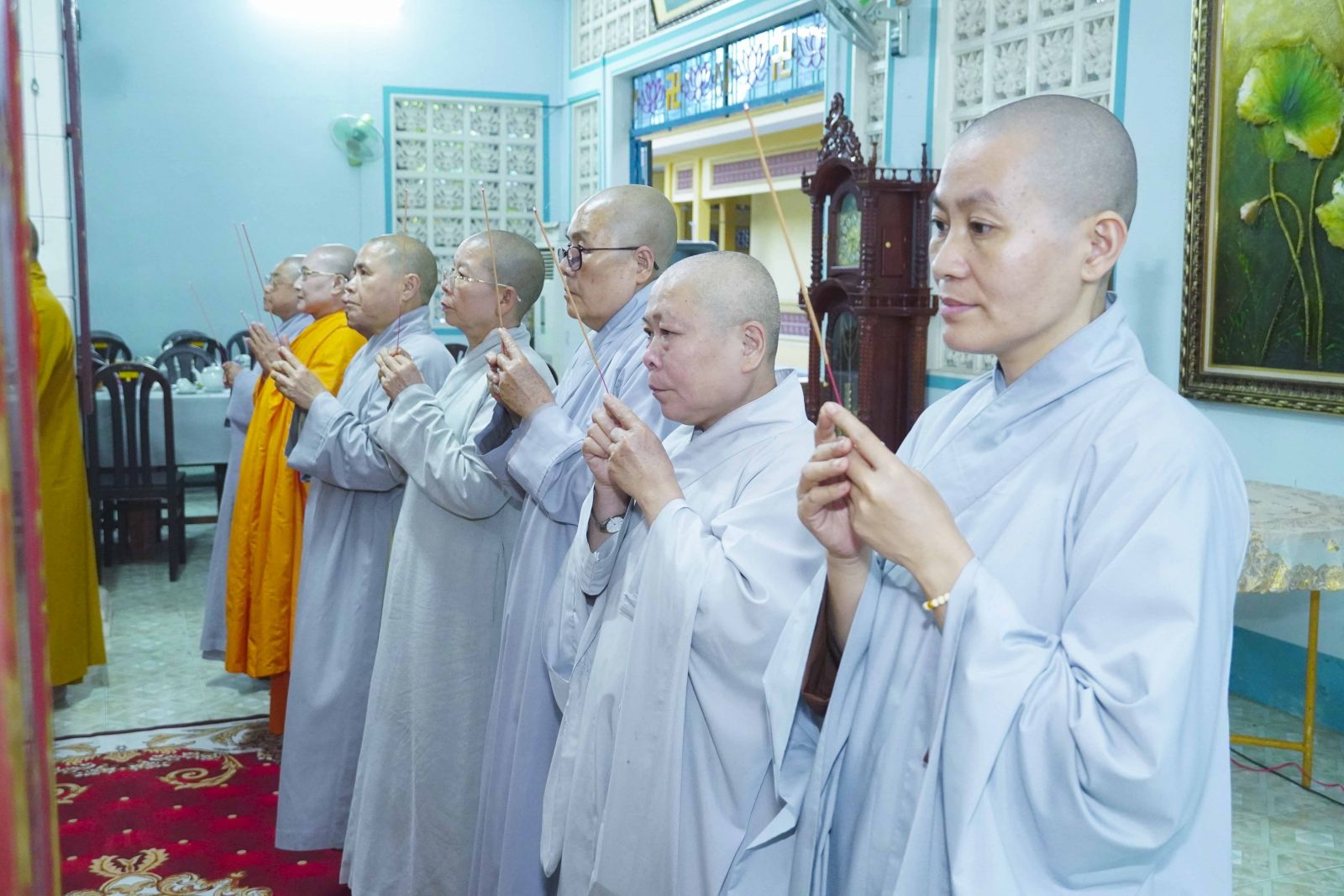 Đoàn có TT. Thích Huệ Khai - Ủy viên Thường trực HĐTS, Trưởng Ban Trị sự, Trưởng ban Tăng sự GHPGVN tỉnh Đồng Nai; HT. Thích Bửu Chánh - Ủy viên Thư ký HĐTS, Phó Trưởng ban Thường trực Ban Trị sự GHPGVN tỉnh; HT. Thích Tĩnh Cường - Ủy viên HĐTS, Phó Trưởng ban Thường trực Ban Trị sự GHPGVN tỉnh; TT. Pháp Quyền - Ủy viên HĐTS, Phó ban kiêm Chánh Thư ký Ban Trị sự GHPGVN tỉnh; cùng chư Tôn đức Thường trực Ban Trị sự, chư Tôn đức Văn phòng Ban Trị sự Phật giáo tỉnh đến dâng hương tưởng niệm.