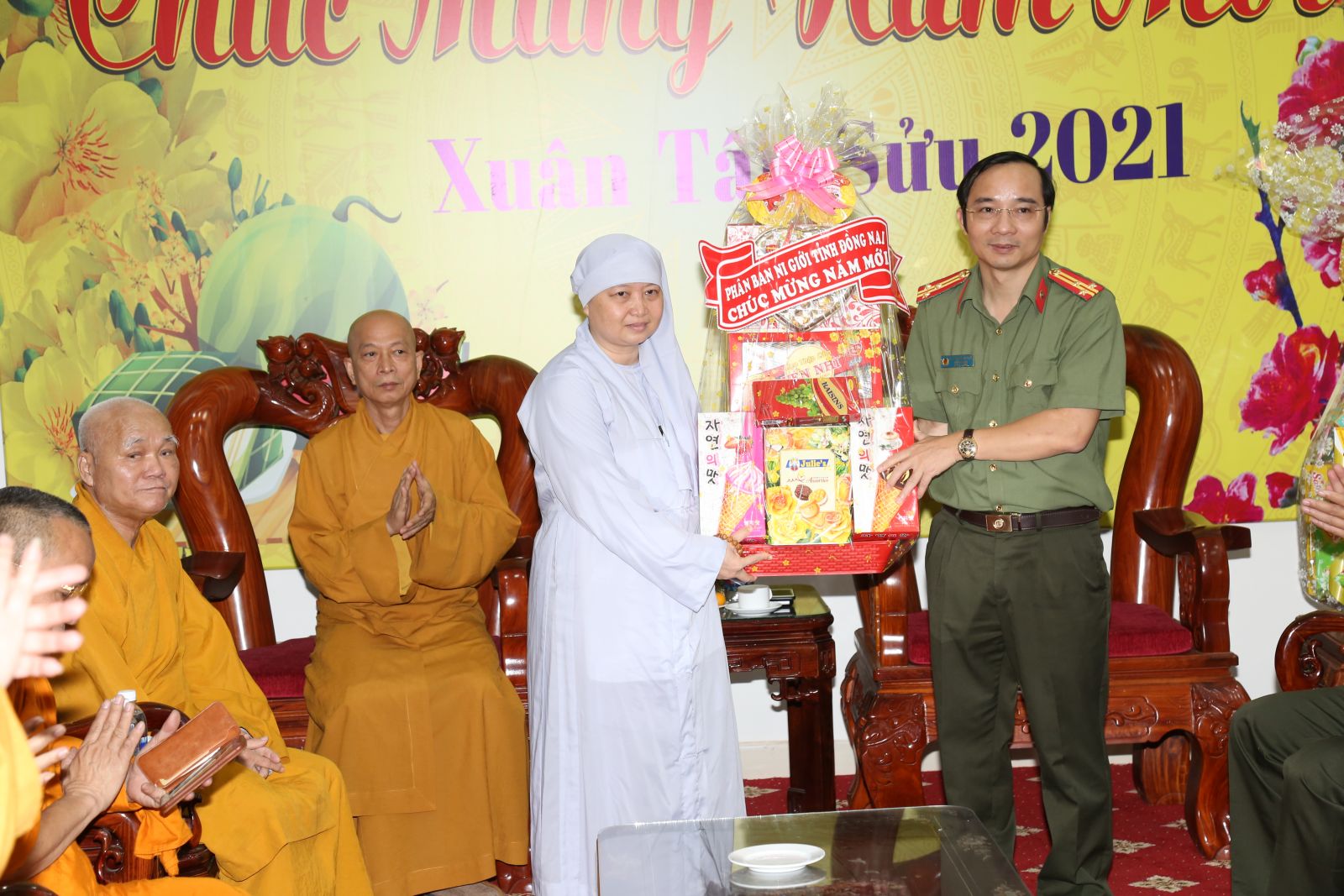 Trong chuyến thăm và chúc Tết, phái đoàn thường trực BTS GHPGVN tỉnh Đồng Nai cũng đến thăm và chúc Tết và tặng quà Phòng PA02 Công an tỉnh Đồng Nai và đại diện các cơ quan ban ngành thành phố Biên Hòa.