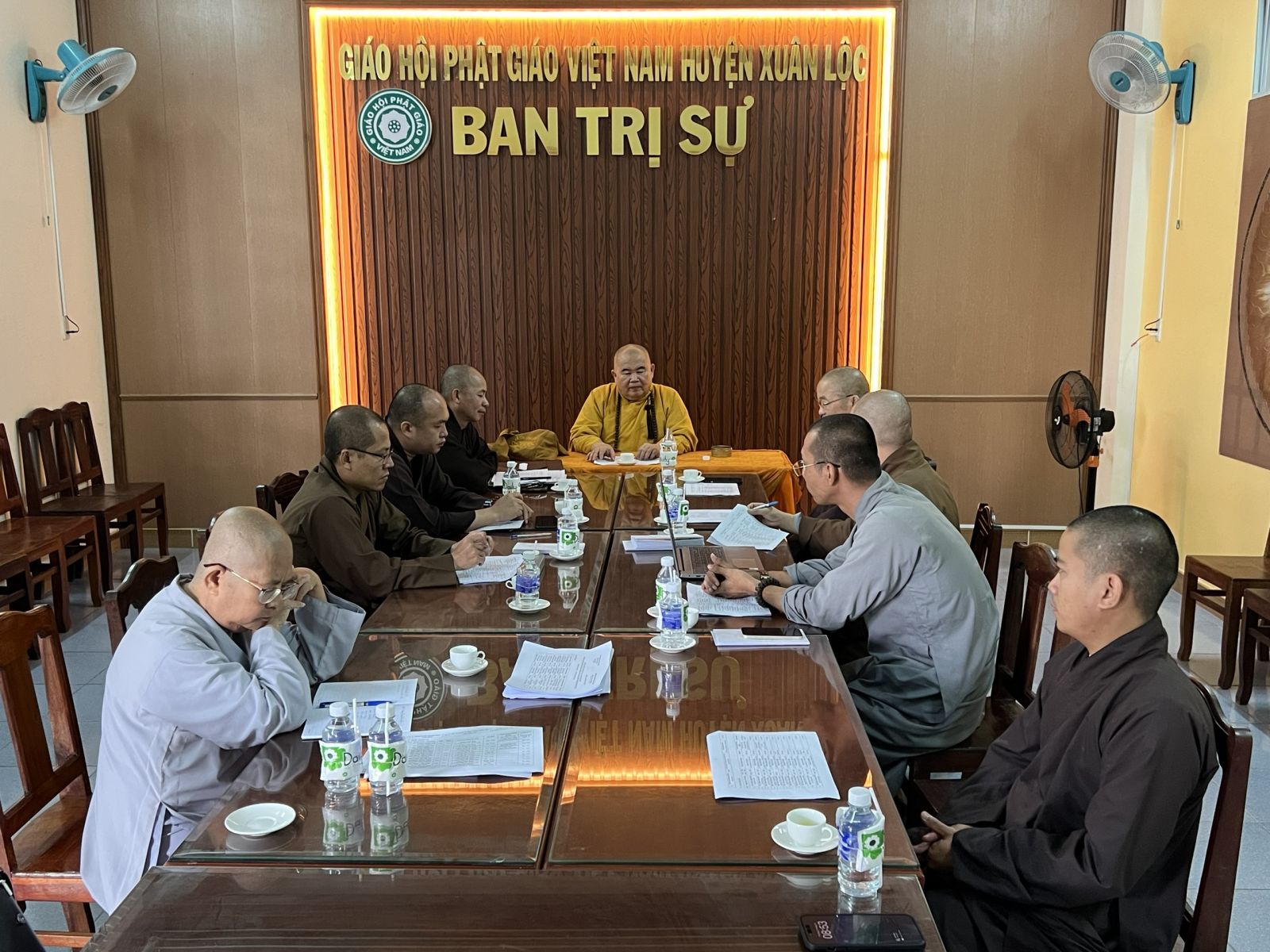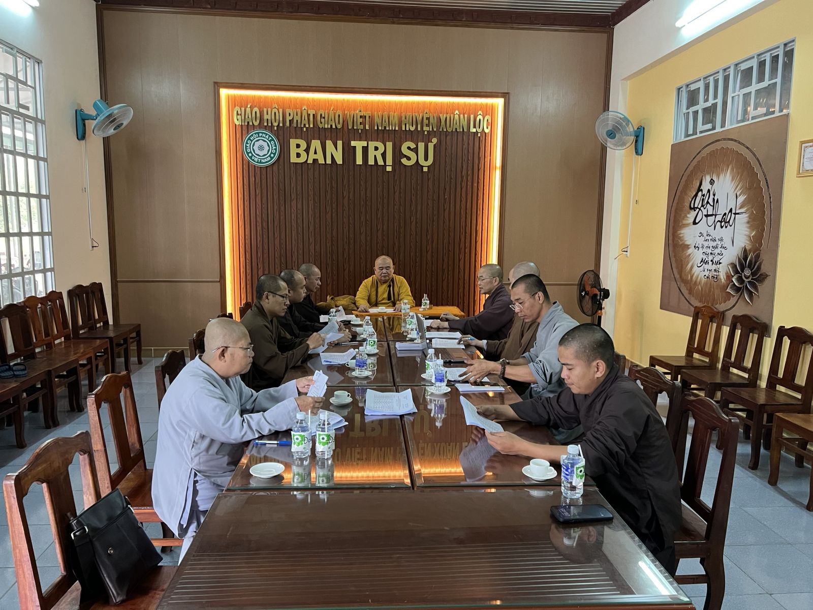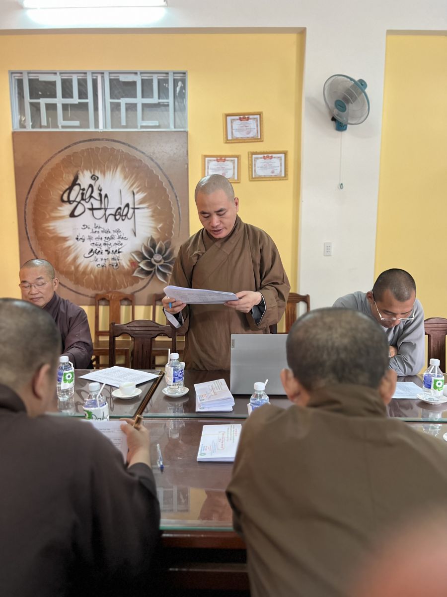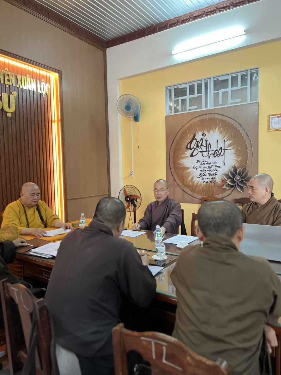 Chủ trì cuộc họp có HT. Thích Tâm Minh - Phó BTS GHPGVN tỉnh, Trưởng BTS GHPGVN huyện; TT. Thích Huệ Quang - UV BTS GHPGVN tỉnh - Phó trưởng Ban Thường trực BTS GHPGVN huyện; TT. Thích Chánh Huệ - Phó trưởng BTS, Trưởng Ban Nghi lễ GHPGVN huyện; ĐĐ. Thích Quảng Vinh - Phó trưởng BTS, Trưởng Ban Pháp chế GHPGVN huyện; NS. Thích nữ Trung An – Phó BTS, Thủ quỹ BTS GHPGVN huyện; ĐĐ. Thích An Quang - UV BTS GHPGVN tỉnh, Chánh Thư ký Ban Trị sự GHPGVN huyện; ĐĐ. Thích Huệ Trường – Phó Thư ký BTS, Chánh Văn phòng GHPGVN huyện cùng chư tôn đức Tăng Ni trong Ban Trường trực đồng tham dự.