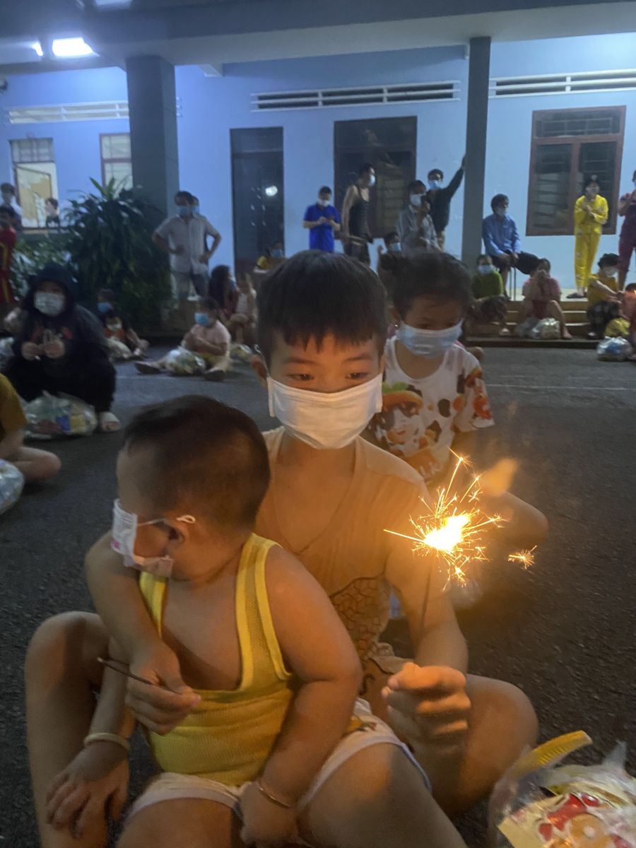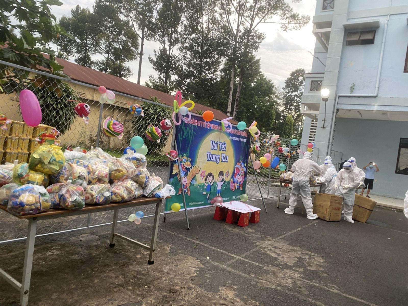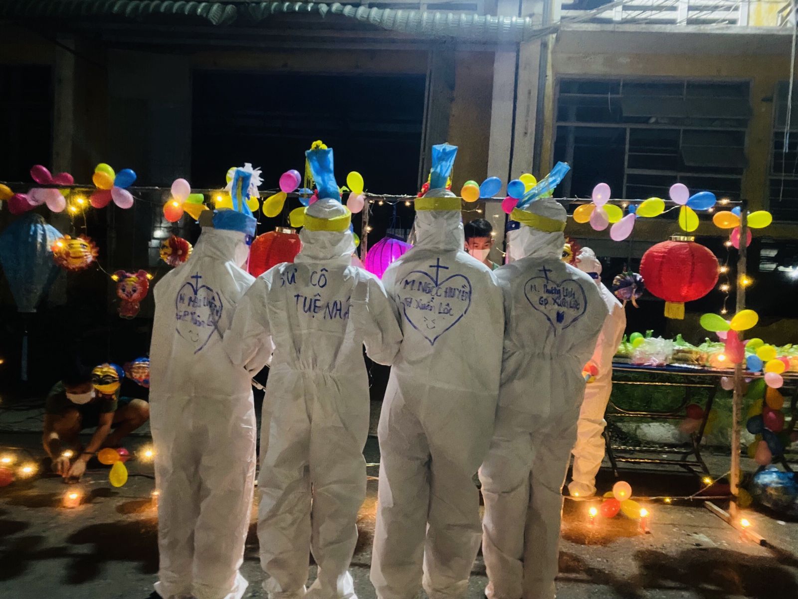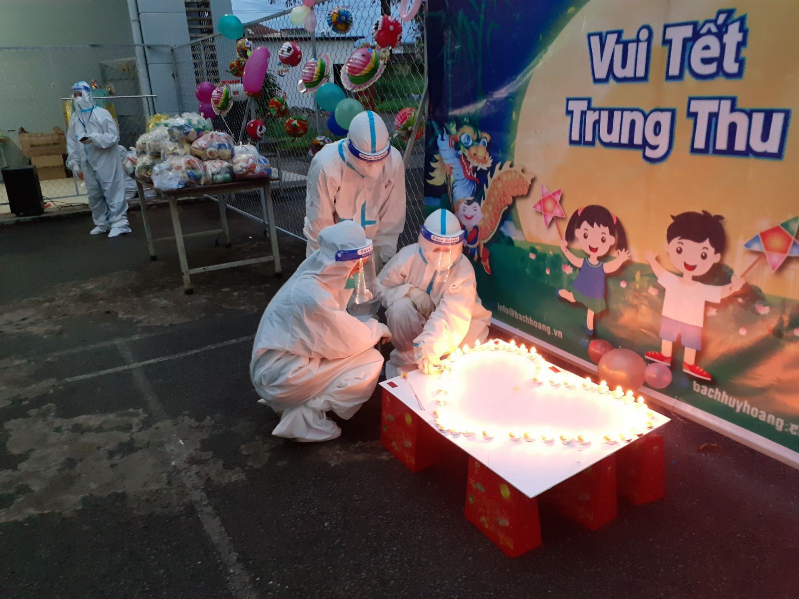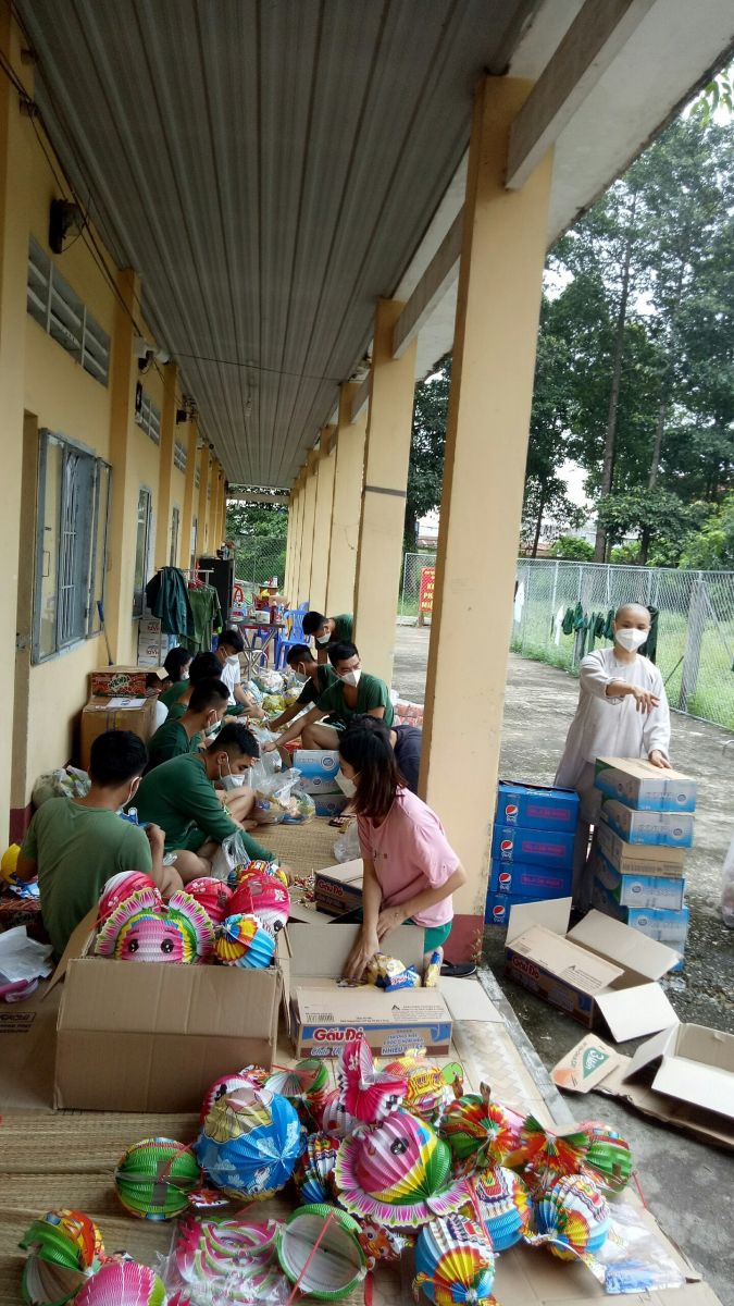 Tại 3 khu cách ly trường Đại học Tài nguyên & Môi trường, khu cách ly Công ty Bitis và khu cách ly Trung tâm giáo dục thường xuyên đều sáng lấp lánh ánh đèn, chị Hằng chú Cuội là những anh hùng trong bộ đồ bảo hộ quen thuộc hàng ngày. Chương trình trung thu được tổ chức đơn giản, nhanh gọn nhưng chất chứa đầy tình yêu thương của quý Thầy, quý Sư cô là TNV Phật giáo kết hợp cùng với quý Sơ Thiên chúa giáo, các chiến sỹ bộ đội, y bác sỹ. Sự vui vẻ háo hức hiện lên khuôn mặt từ người lớn đến trẻ nhỏ, không khí vui tươi ấy đã xua tan đi áp lực dịch bệnh đang đè nặng bấy lâu nay.