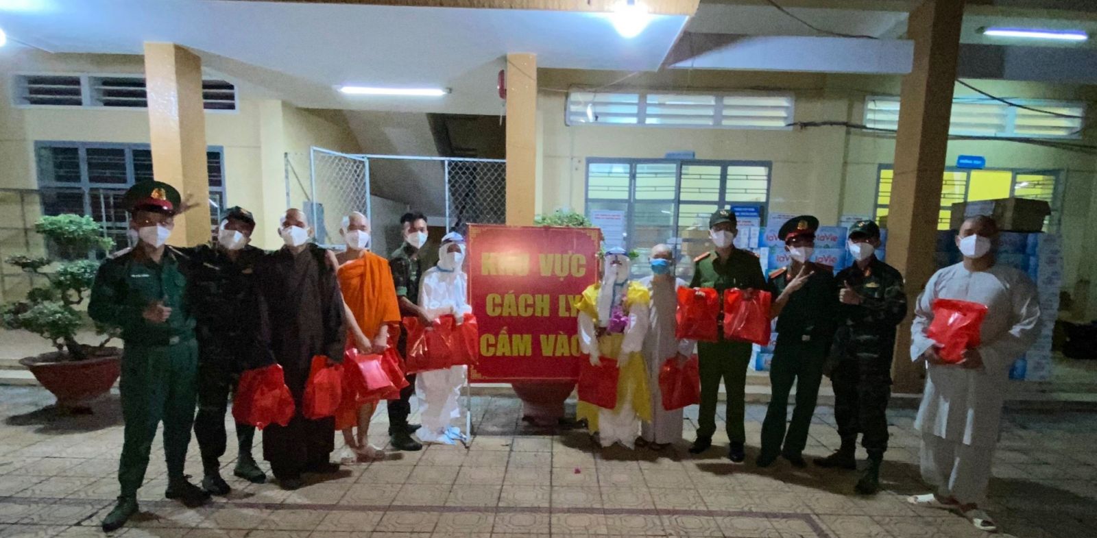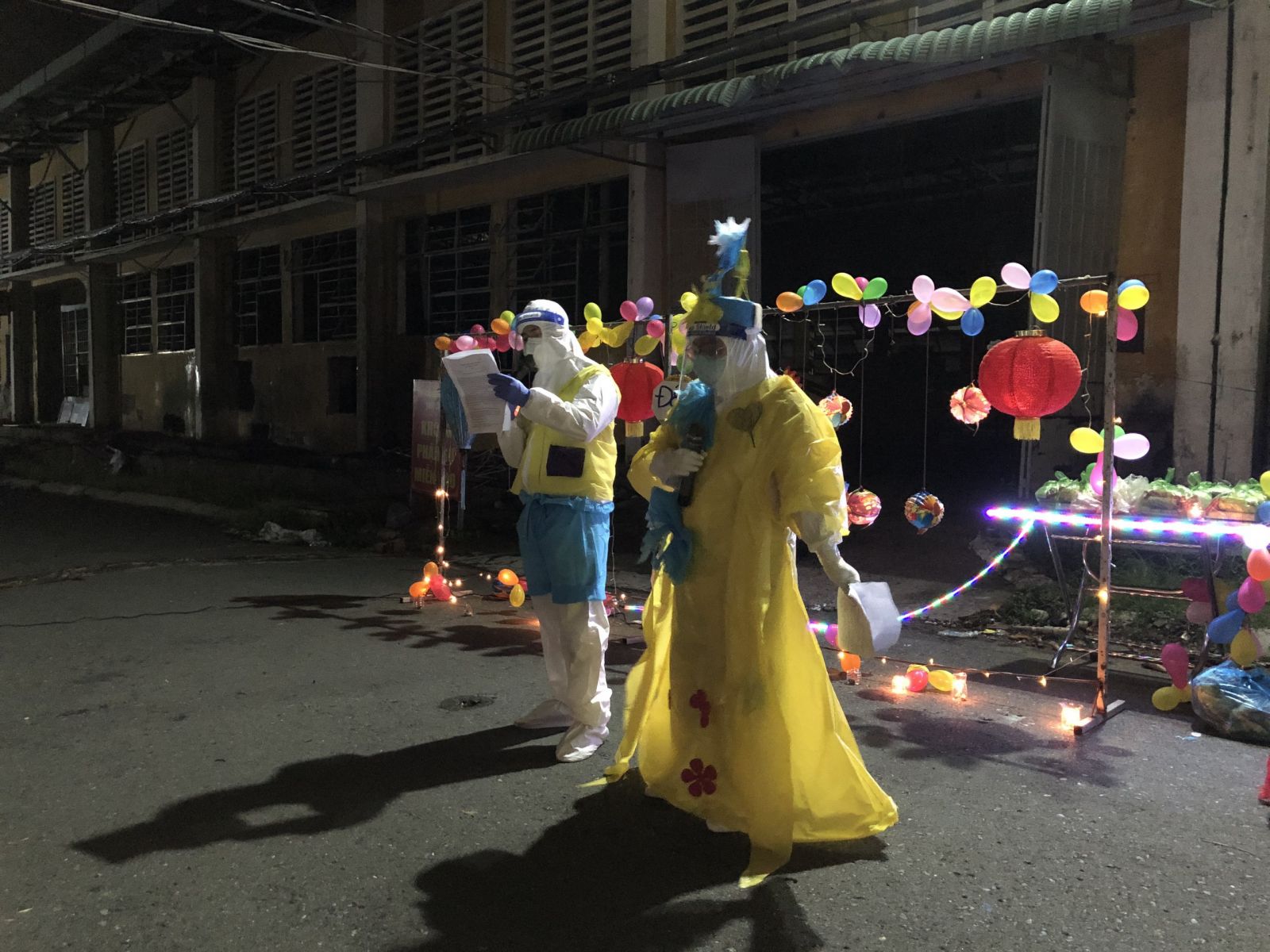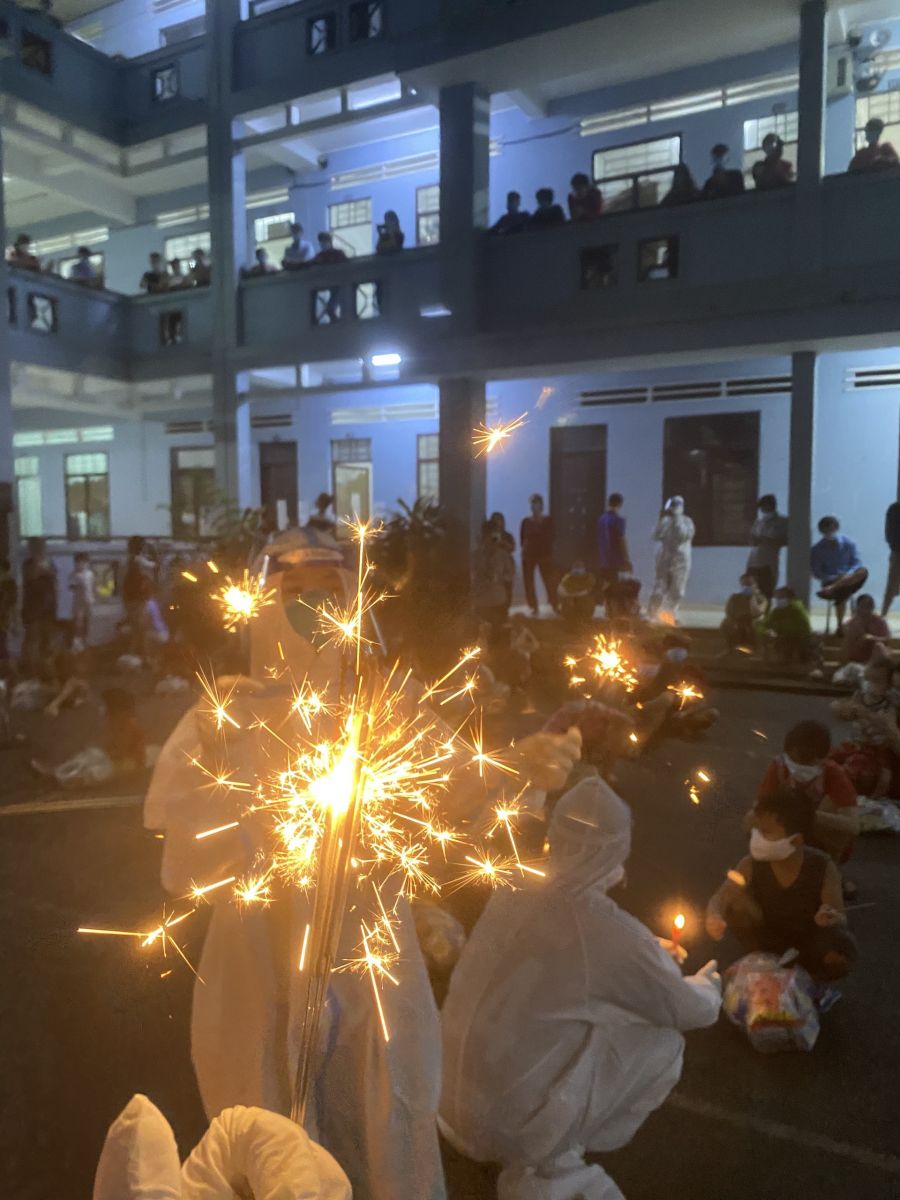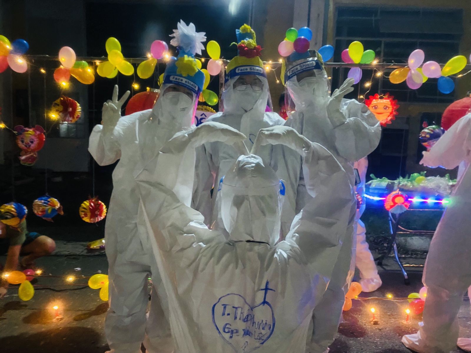 Tại 3 khu cách ly trường Đại học Tài nguyên & Môi trường, khu cách ly Công ty Bitis và khu cách ly Trung tâm giáo dục thường xuyên đều sáng lấp lánh ánh đèn, chị Hằng chú Cuội là những anh hùng trong bộ đồ bảo hộ quen thuộc hàng ngày. Chương trình trung thu được tổ chức đơn giản, nhanh gọn nhưng chất chứa đầy tình yêu thương của quý Thầy, quý Sư cô là TNV Phật giáo kết hợp cùng với quý Sơ Thiên chúa giáo, các chiến sỹ bộ đội, y bác sỹ. Sự vui vẻ háo hức hiện lên khuôn mặt từ người lớn đến trẻ nhỏ, không khí vui tươi ấy đã xua tan đi áp lực dịch bệnh đang đè nặng bấy lâu nay.