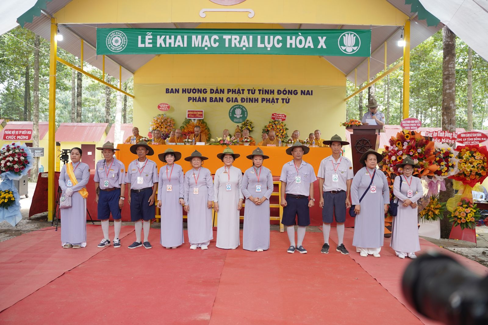 Quang lâm chứng minh và dự buổi lễ Khai mạc trại Lục Hòa X hôm nay có sự tham gia của Thượng tọa Đạo hiệu Thích Huệ Khai – Ủy viên Thường trực Hội đồng Trị sự, Trưởng Ban Trị sự GHPGVN tỉnh Đồng Nai, Chứng minh Ban Trị sự GHPGVN thành phố Biên Hòa, Trụ trì Tổ đình Long Thiền; Hòa thượng Đạo hiệu Thích Bửu Chánh – Ủy viên thư ký HĐTS, Phó trưởng ban thường trực BTS GHPGVN tỉnh Đồng Nai, Trụ trì Thiền viện Phước Sơn; Thượng tọa Thích Huệ Sanh - Ủy viên HĐTS, Phó Ban Trị sự, Trưởng Ban Hoằng Pháp GHPGVN tỉnh; Thượng tọa Thích Đạo Huy - Phó BTS kiêm Chánh thư ký GHPGVN tỉnh; Thượng tọa Đạo hiệu Thích Mính Trí - Ủy viên dự khuyết Hội đồng Trị sự - Phó ban Trị sự GHPGVN tỉnh Đồng Nai, Trưởng ban Trị sự Phật giáo thành phố Biên Hòa; Thượng tọa Thích Huệ Tánh – Ủy viên BHD Phật tử Trung ương, Trưởng BHD Phật tử GHPGVN tỉnh Đồng Nai, Trưởng BTS GHPGVN Tp. Long Khánh; Thượng tọa Thích Minh Trì - Phó Ban Trị sự tỉnh, Trưởng ban Trị sự huyện Trảng Bom; Thượng tọa Thích Huệ Nghiệp – Phó BTS, Trưởng Ban Pháp chế GHPGVN tỉnh; Đại đức Thích Đạt Ma Quang Tuệ - Phó Ban Trị sự, Trưởng ban Giáo dục Phật giáo tỉnh; Đại đức Thích Thiện Mỹ - Ủy viên thường trực BTS, Trưởng Ban TTTT GHPGVN tỉnh; Đại đức Thích Tịnh Hạnh - Ủy viên BTS tỉnh, cố vấn giáo hạnh Phân ban GĐPT tỉnh; Đại đức Thích Quảng Vinh – Phó trưởng ban kiêm Chánh thư ký BHD Phật tử tỉnh, cùng Chư Tôn đức Ban Trị sự GHPGVN tỉnh Đồng Nai về Tham dự.
