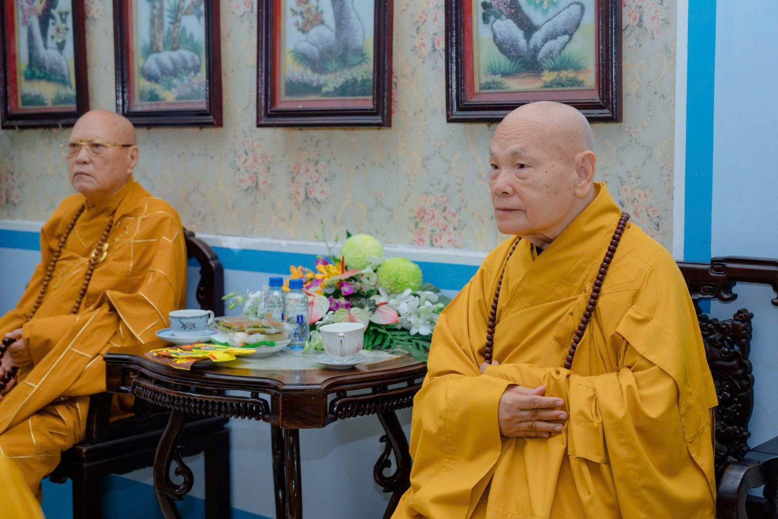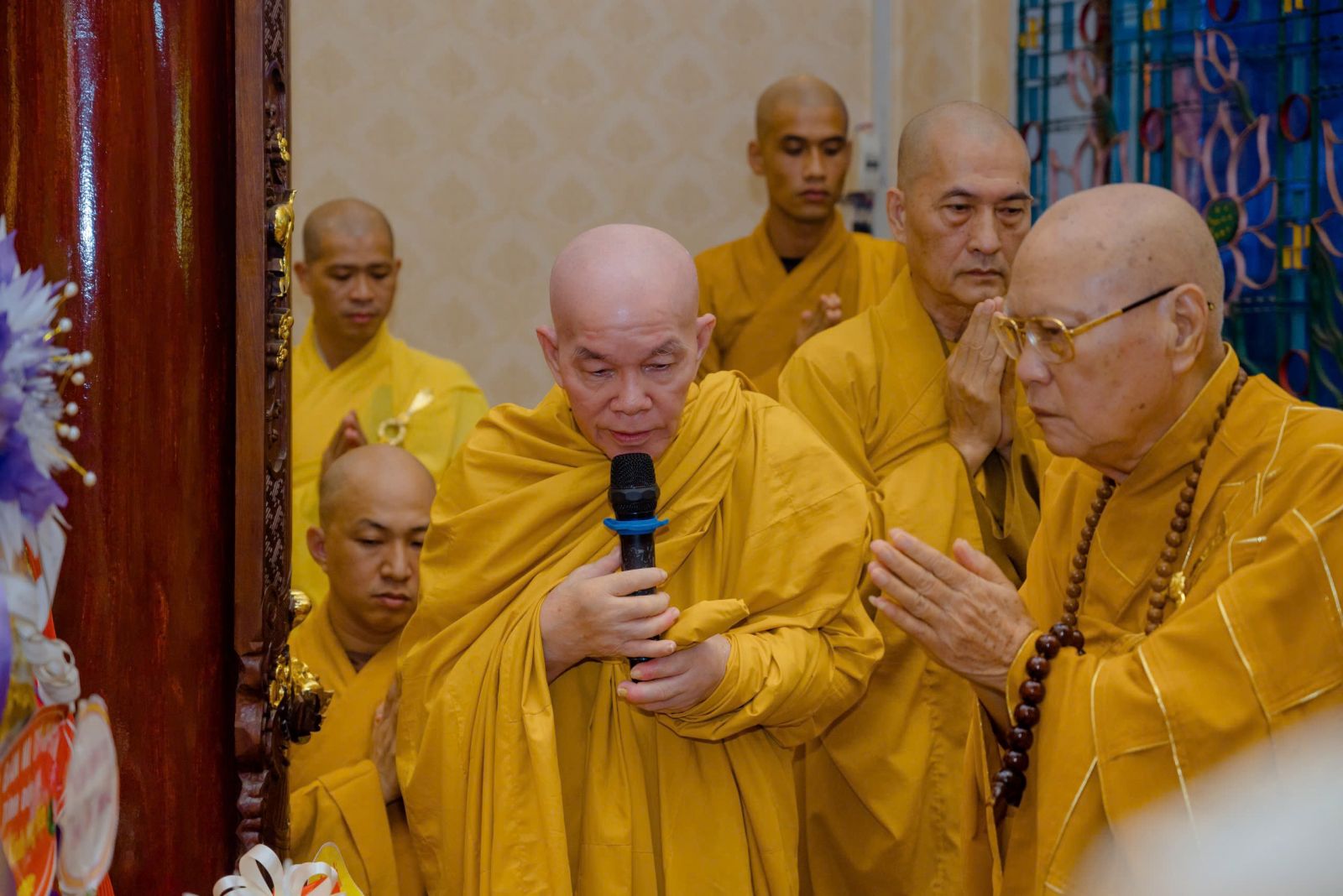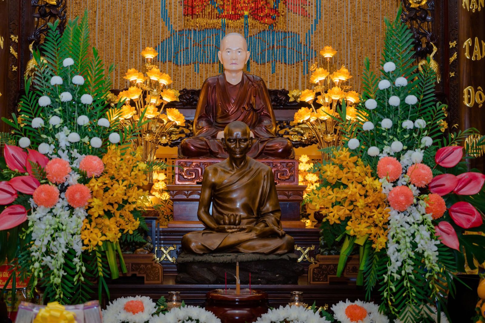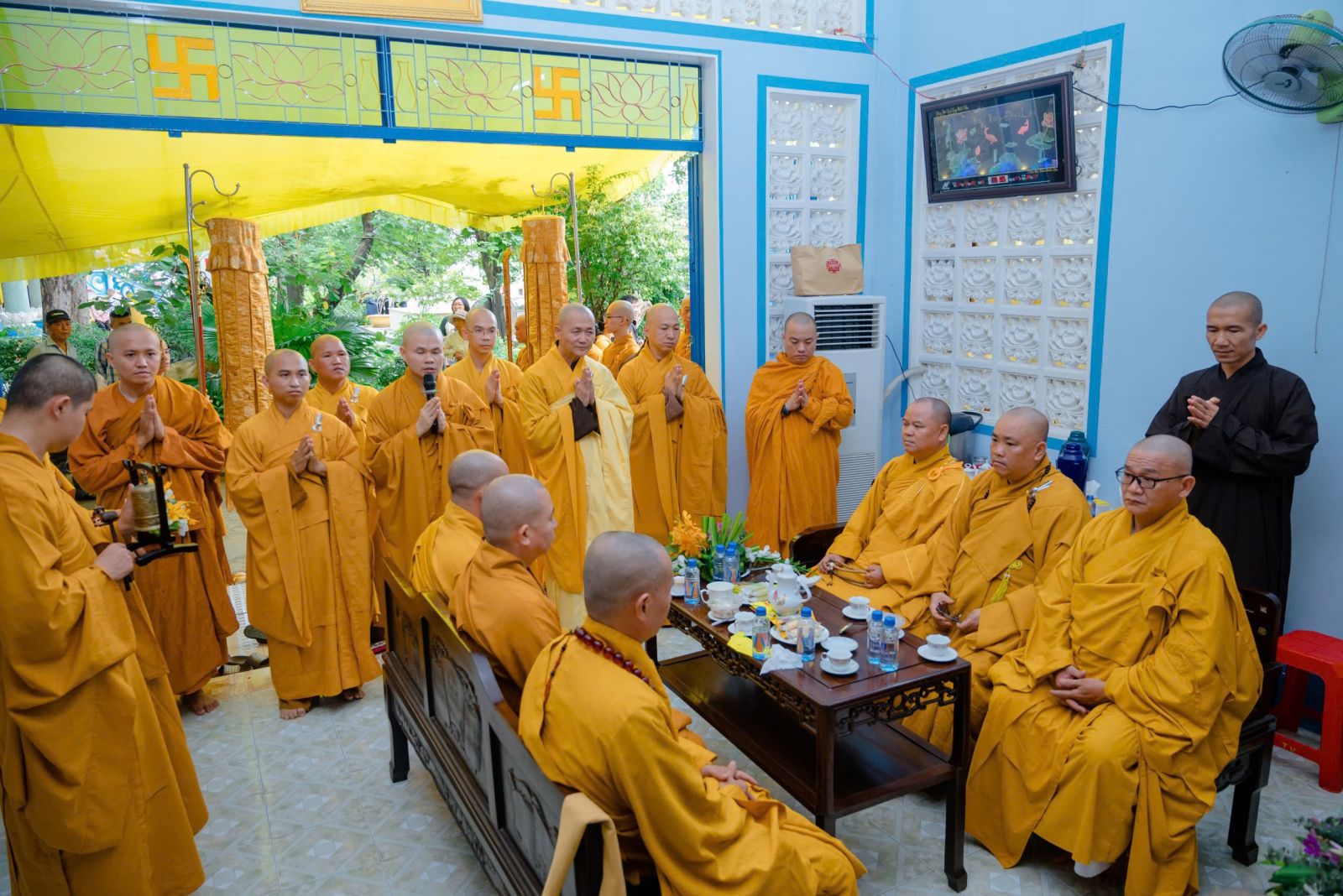 Đón tiếp quý phái đoàn đến dâng hương tưởng niệm có: HT. Thích Thiện Thảo, Trưởng ban Quản Trị Tông phong; Trưởng ban Tổ chức lễ tưởng niệm; Chư Tôn đức Phó ban Tổ chức: TT. Thích Minh Trì – Phó Ban Trị sự GHPGVN tỉnh Đồng Nai, Phó Ban Tổ chức; HT. Thích Thiện Tâm, Trụ trì chùa Pháp An; HT. Thích Thiện Kiết; HT. Thích Pháp Hỷ; HT. Thích Từ Thiện; TT. Thích Minh Vũ; TT Thích Thiện Hỷ; TT. Thích Thiện Quý – UV HĐTS, Phó trưởng BTS kiêm Chánh Thư ký Phật giáo TP. Hồ Chí Minh; Đại Đức Thích Chơn Nghĩa; TT. Thích Minh Nhựt – Trưởng BTS GHPGVN Quận Phú Nhuận; Ni trưởng Thích nữ Diệu Thọ; Ni trưởng TN. Kim Sơn; Ns. Tn Hương Nhũ; NT. Tn Diệu Thông; NT. Tn Diệu Tín; NT. Tn Lan Nhã cùng chư tôn đức Thường trực Môn phong đã trang trọng tiếp đón quý phái đoàn tại nơi lễ đường.