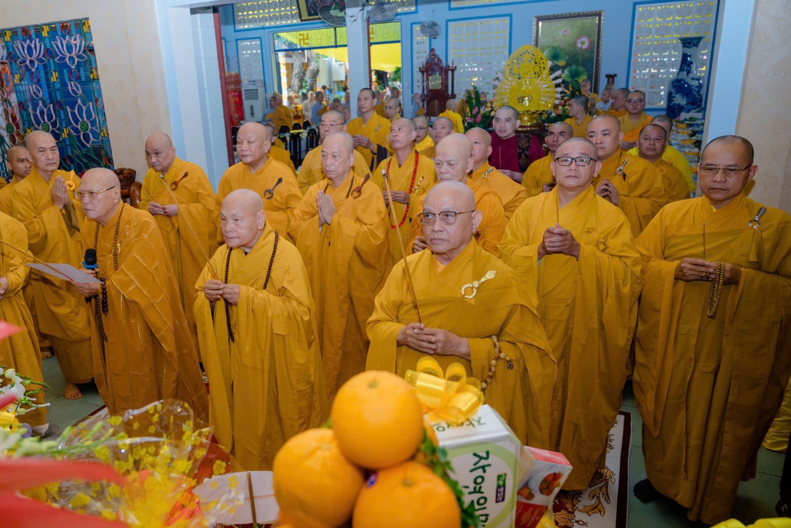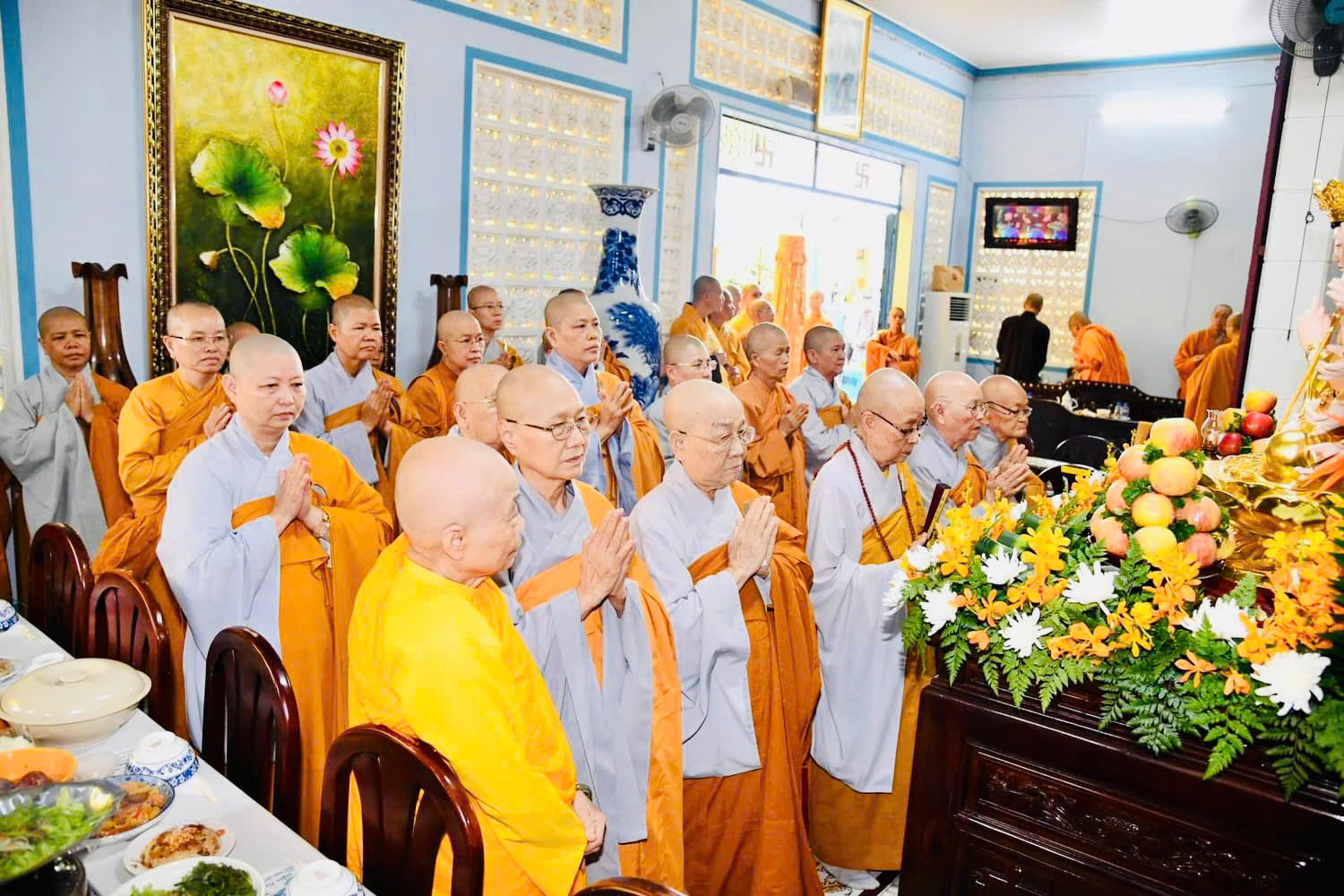 Trong không khí trang trọng và thanh tịnh, chư Tôn đức Tăng Ni Giáo phẩm lãnh đạo Giáo hội cùng các thành viên Ban Trị sự tỉnh, thành phố và các huyện đồng dâng nén tâm hương xưng tán công đức của Đức Hòa thượng Thích Thiện Phước, húy Nhựt Ý, khai tông lập giáo Sơ tổ Liên Tông Tịnh Độ Non Bồng.
