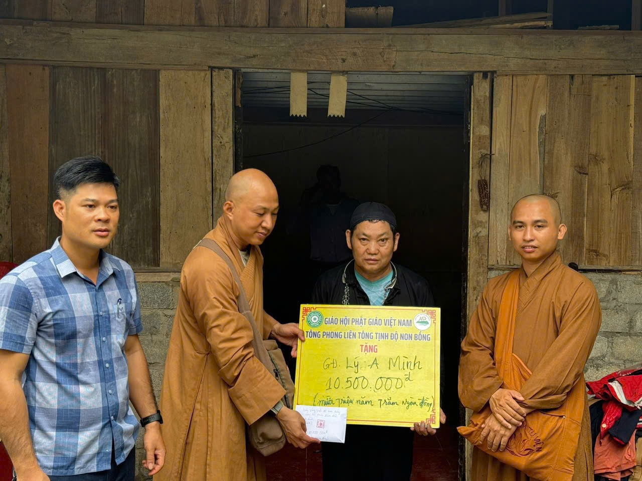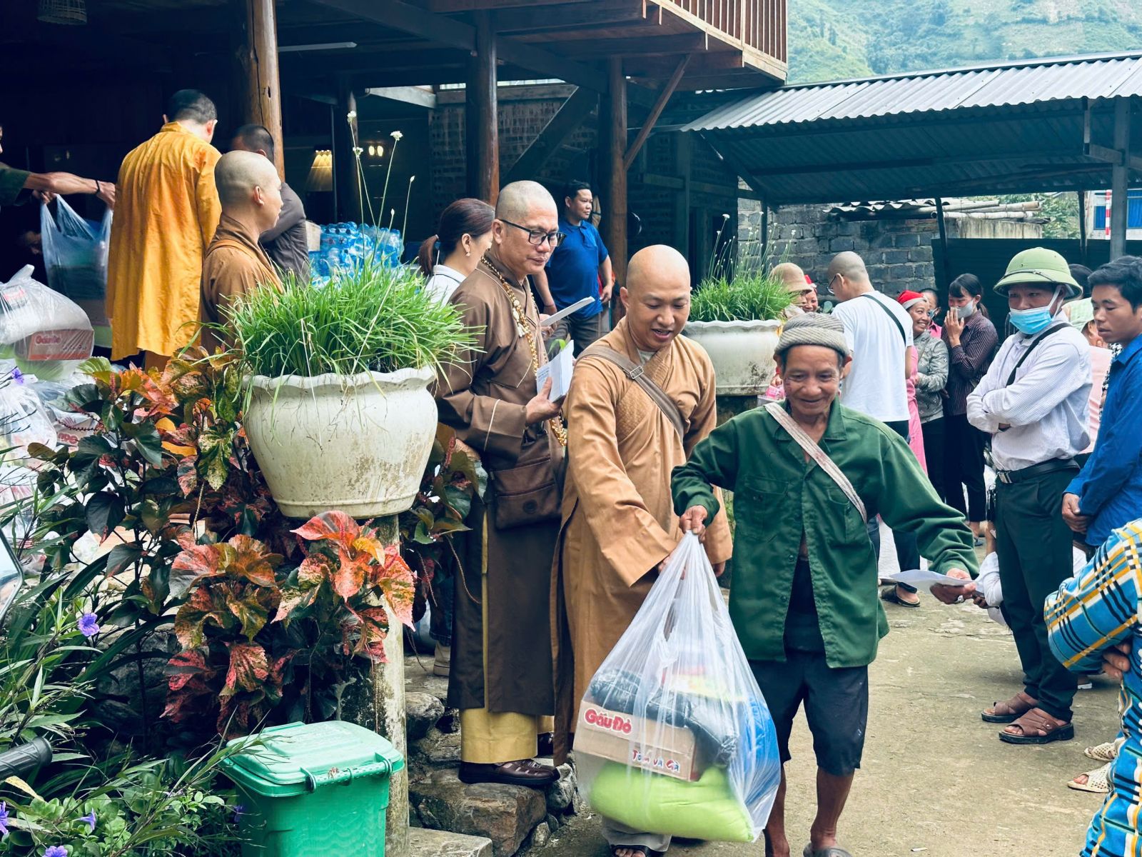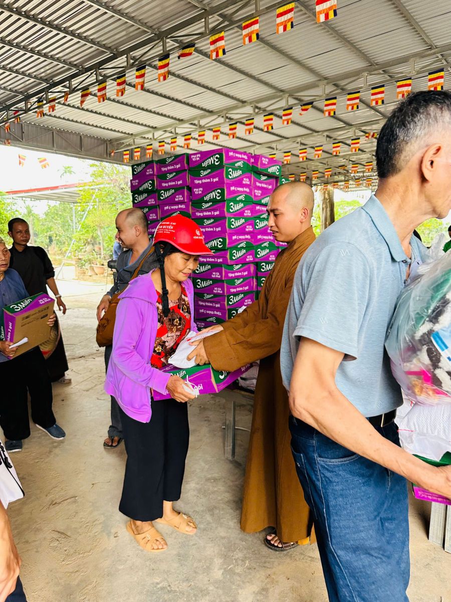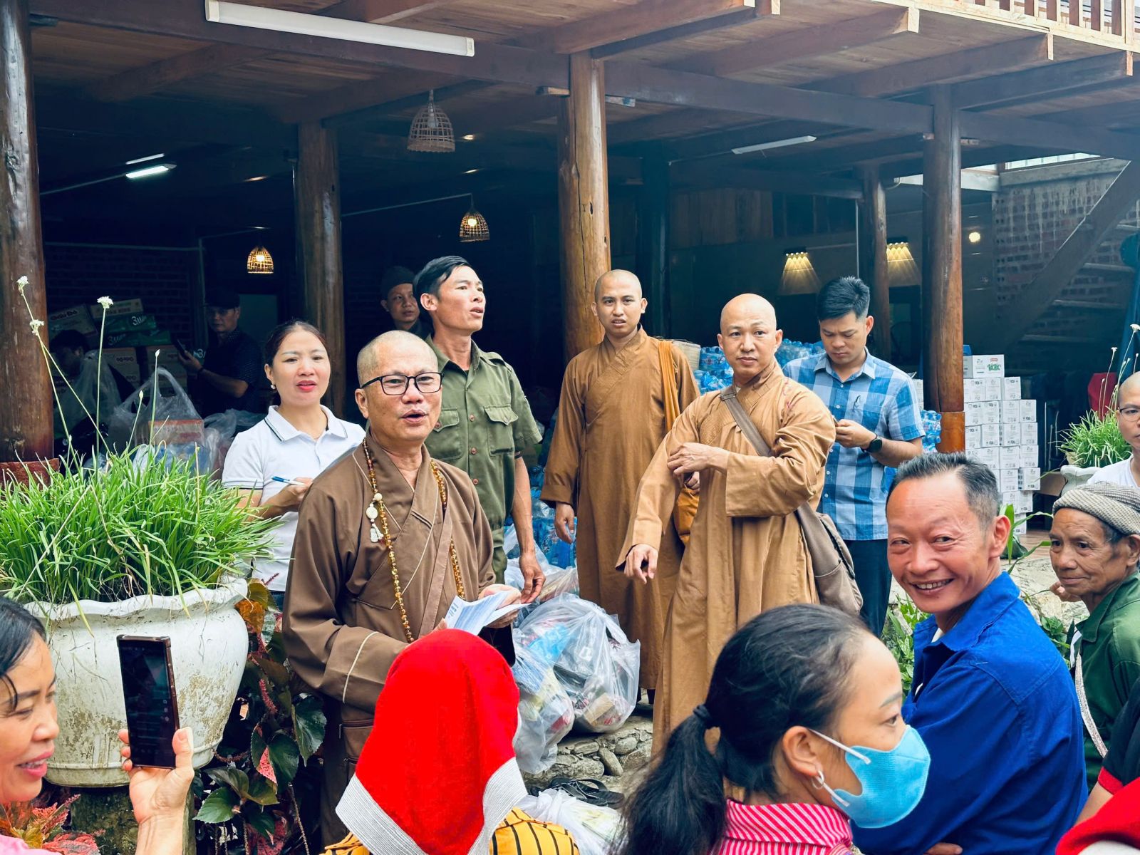 Đoàn do Đại Đức Thích Chơn Nghĩa, Trưởng Ban TTXH Phật giáo tỉnh Đồng Nai làm Trưởng đoàn; Đại Đức Thích Đức Biến, Trưởng Ban Từ Thiện Tông Phong; Đại Đức Thích Thiện Huy, Phó Ban TTXH Phật giáo tỉnh Đồng Nai làm phó đoàn, cùng chư tôn đức, Phật tử tông phong, Tổ đình Quan Âm Tu Viện (Biên Hoà, Đồng Nai); Quỹ từ thiện Phước Việt; CLB Mandala Phong Thuỷ... Trong đó trao quà trực tiếp 320 phần ở 3 Xã Mỹ Tân, Tp Nam Định; Xã Nam Thanh, huyện Nam Trực và Xã Phương Định, huyện Trực Ninh, trên địa bàn Tỉnh Nam Định (ảnh hưởng bởi tràn đê sông Hồng, lũ lụt bởi cơn bão số 3 Yagi); 300 phần Thôn Bản Dền, Xã Bản Hồ, Tx Sapa, tỉnh Lào Cai ảnh hướng bởi cơn bão số 3, Yagi. Và cuối cùng 200 phần tại địa Phương Thanh Hải, Lục Ngạn, Bắc Giang.