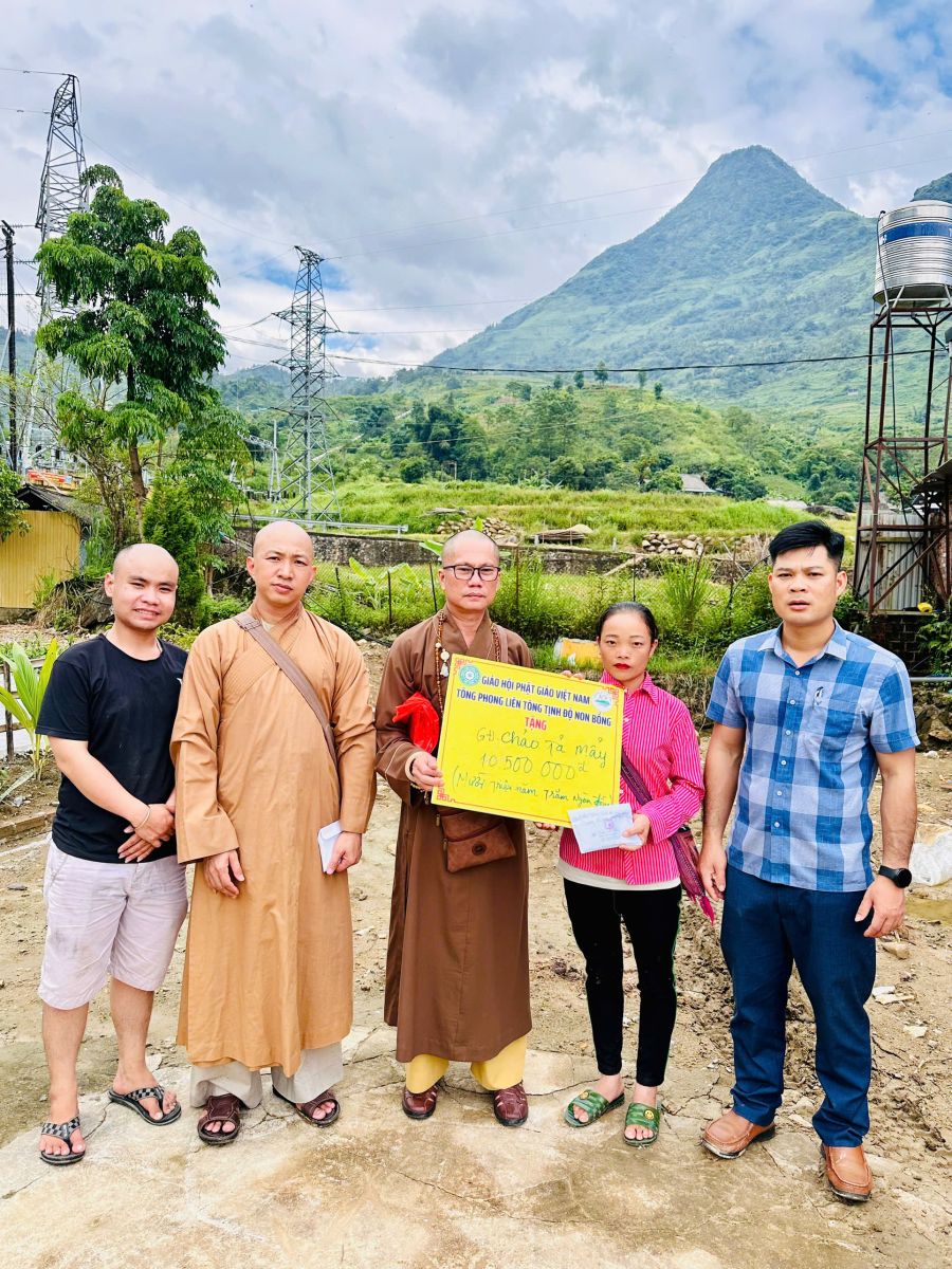 Trên đường xe vận chuyển đi qua, đoạn đường chính bị sạt lở đến 10 chỗ, có nơi đoàn xuống xe và dọn đá, đẩy xe qua điểm sạc lở, đoàn đến thôn Bản Hồ, lúc 2h30 sáng sau khi đưa quà qua các xe chuyên chở. Tại nhà văn hoá, 300 người dân Mông, Dao, Thái, Tày, Nùng thuộc thôn bản Dền, Sẻo Trung Hô, Ma Quái Hồ, Tả Trung Hô, La Ve, Nậm Toong, Hoàng Liên ....,… hồ hởi xúc động khi thấy được sự có mặt kịp thời của đoàn khi đến san sẻ và nghe lời chia sẻ động viên của thầy trưởng đoàn. Sau khi tặng các quà phẩm thiết yếu như: gạo mỳ, túi thuốc, cá hộp, bánh trung thu, chăn mền, sữa, và tiền mặt… Đại đức Chơn Nghĩa cùng đoàn đến tận nơi trên vách dốc núi đất cao để thăm các hộ gia đình ảnh hưởng sạt lở làm hư hoại nhà cửa.