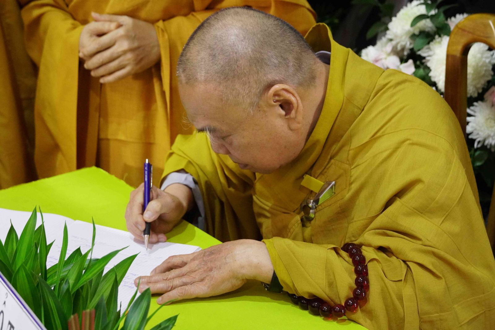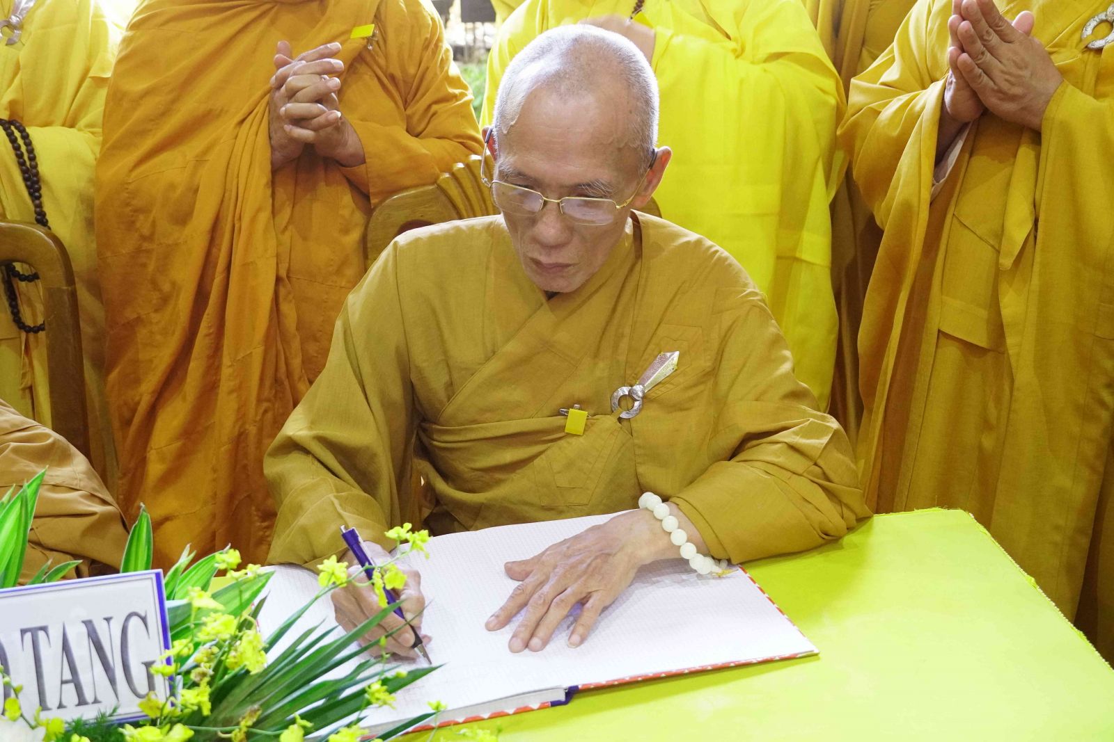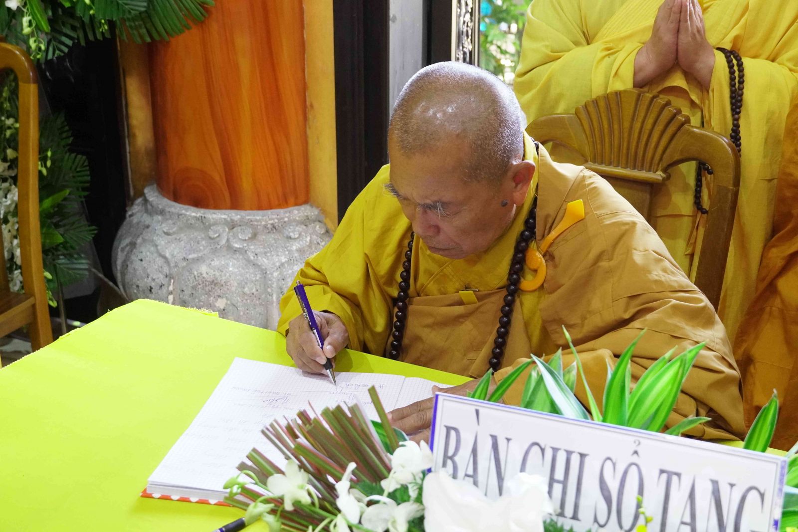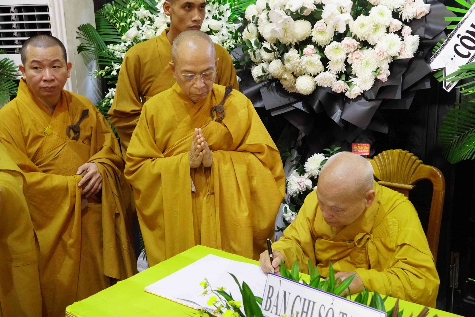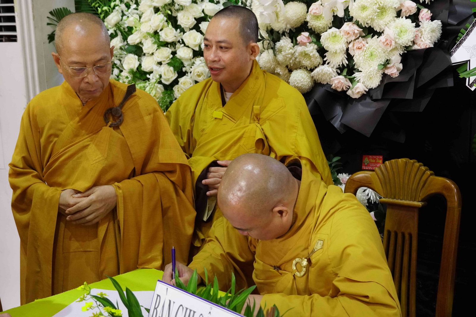 Sau khi dâng hương tưởng niệm, quí Ngài đã trang nghiêm hữu nhiễu kim quan và ký sổ tang lưu niệm.