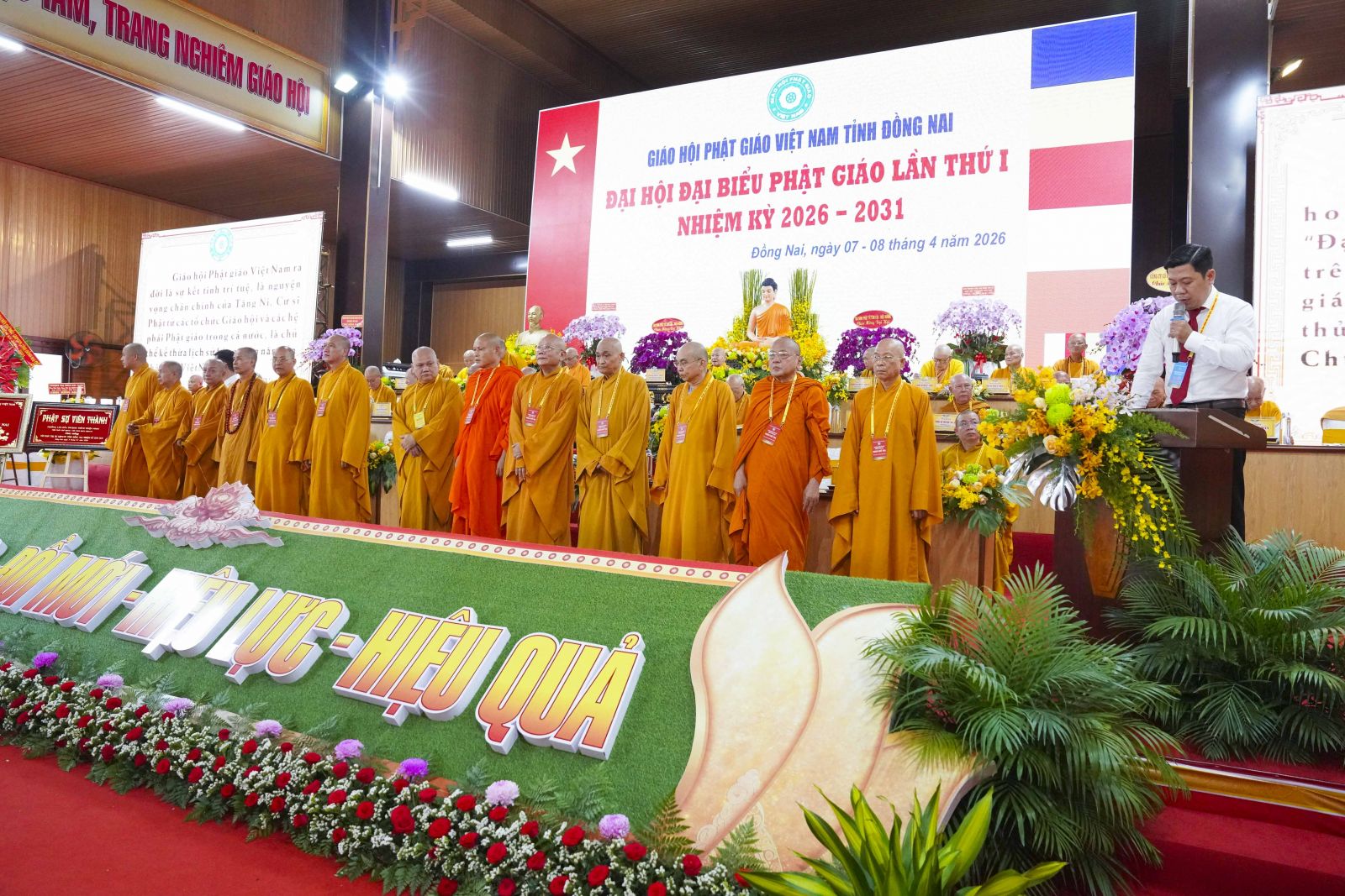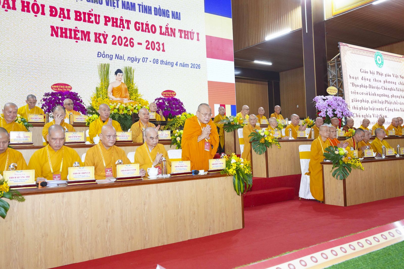 Phát biểu khai mạc Đại hội, Thượng tọa Thích Huệ Khai – Uỷ viên HĐTS, Trưởng Ban Trị sự nhấn mạnh, Đại hội đại biểu Phật giáo tỉnh Đồng Nai lần thứ I, nhiệm kỳ 2026–2031 là sự kiện có ý nghĩa lịch sử đặc biệt quan trọng, diễn ra trong bối cảnh tỉnh nhà vừa hoàn thiện mô hình tổ chức hành chính mới, mở ra giai đoạn phát triển sâu rộng và toàn diện. Đây không chỉ là dịp hội tụ của trí tuệ, ý chí và tinh thần đoàn kết hòa hợp của toàn thể Tăng Ni, Phật tử, mà còn là dấu mốc khẳng định sự trưởng thành vững chắc của Phật giáo Đồng Nai sau chặng đường 45 năm đồng hành cùng dân tộc. Đại hội thể hiện quyết tâm kế thừa truyền thống, phát huy tinh thần nhập thế, gắn bó đạo pháp với đời sống xã hội, góp phần xây dựng nền tảng đạo đức, văn hóa và an sinh bền vững cho cộng đồng.