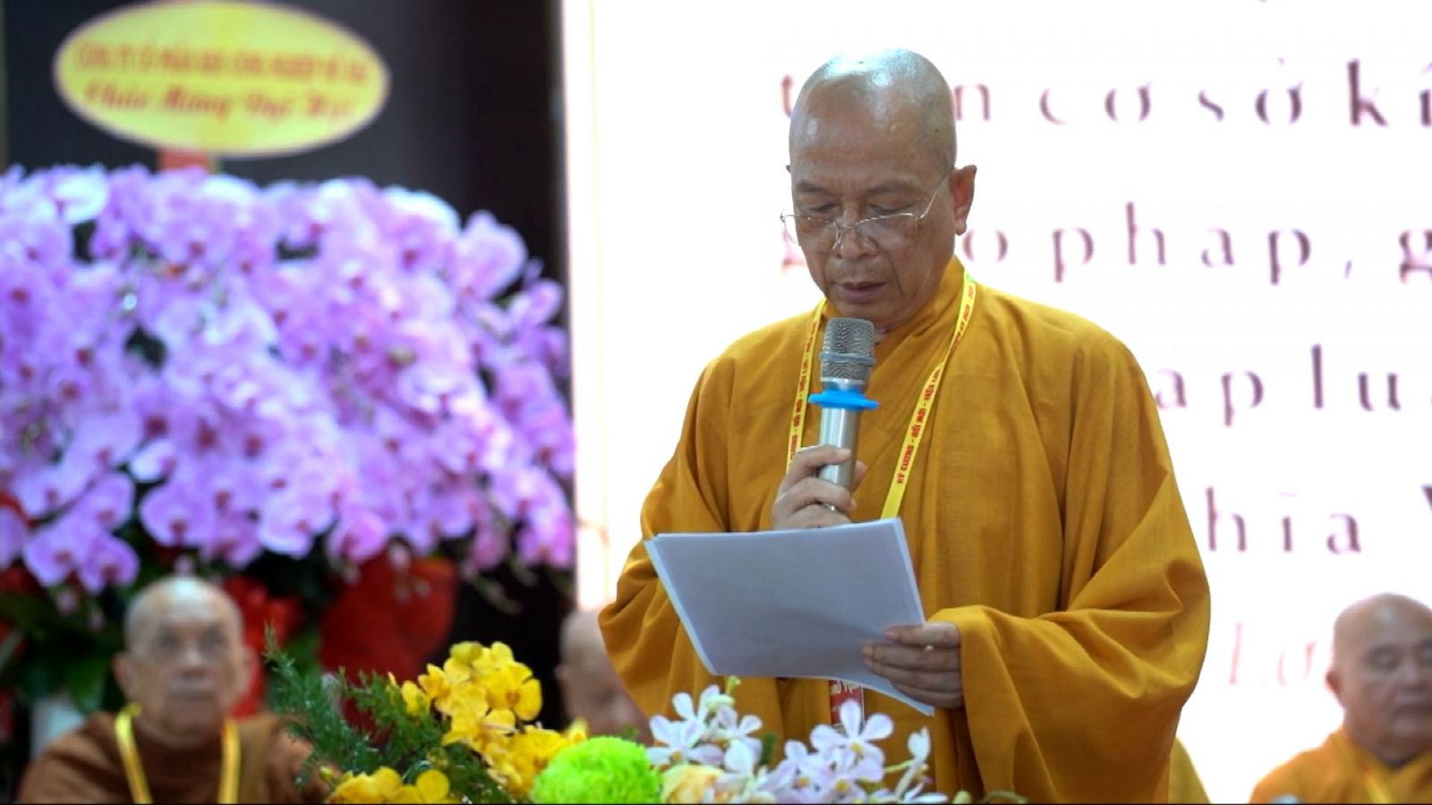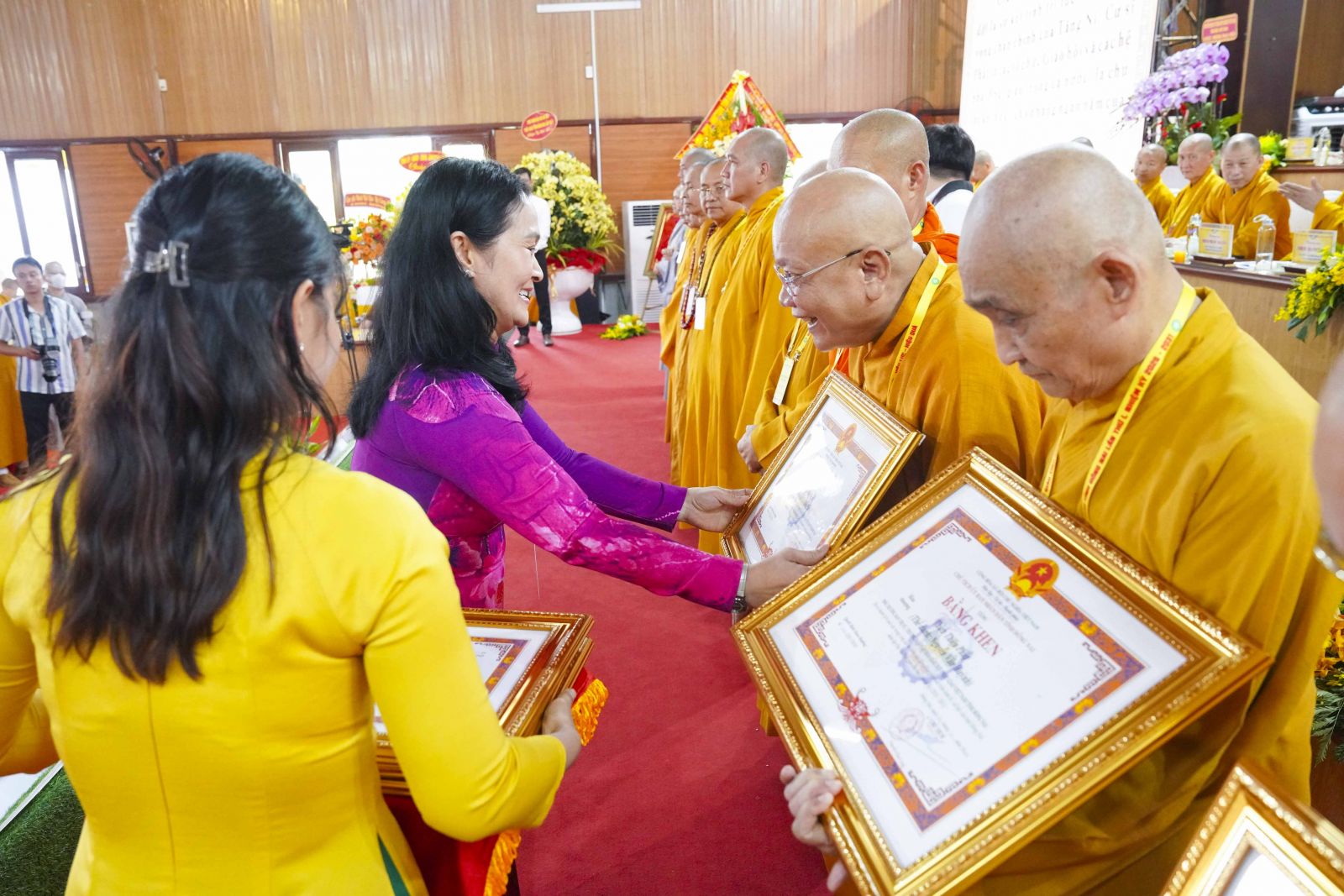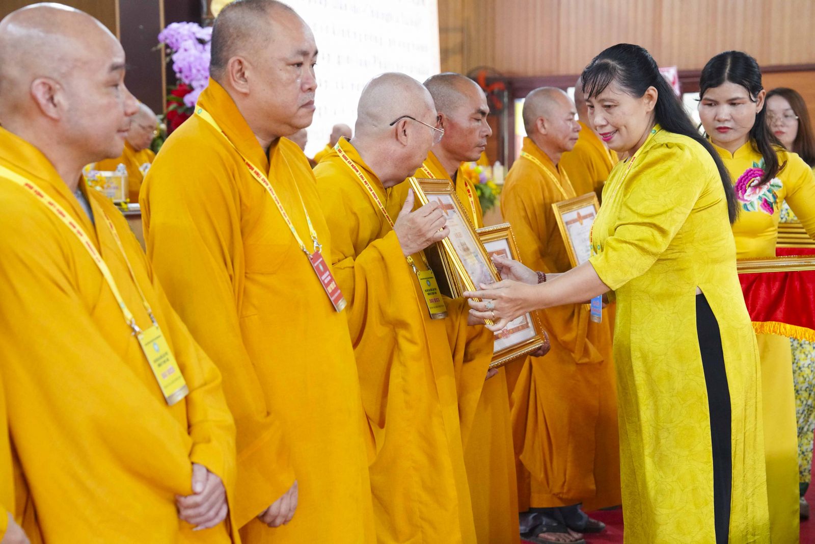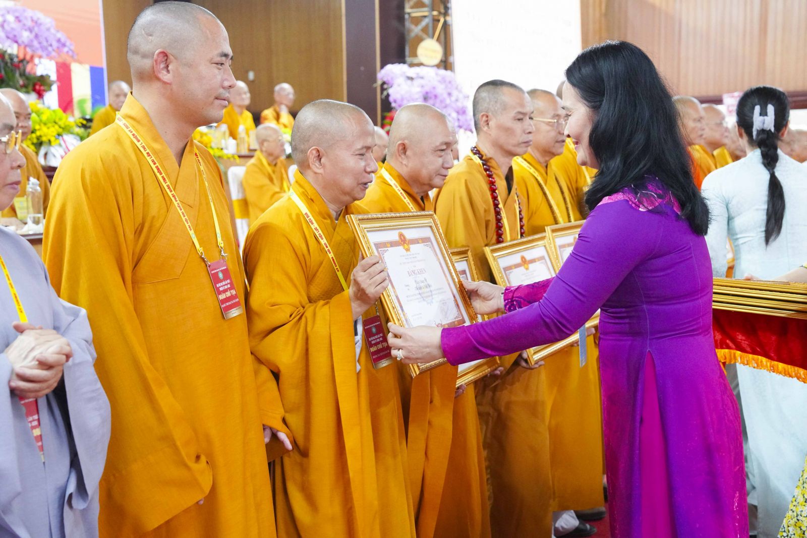 Tiếp đó, Đại đức Thích Thiện Trí thay mặt Ban Tổ chức thông qua báo cáo tóm tắt kết quả ngày làm việc thứ nhất và Lễ kỷ niệm 45 năm thành lập Giáo hội Phật giáo Việt Nam; đồng thời tiến hành trao Bằng Tuyên dương công đức của Trung ương Giáo hội cho 25 cá nhân có nhiều đóng góp tích cực, cùng Bằng khen của Ủy ban nhân dân tỉnh Đồng Nai.