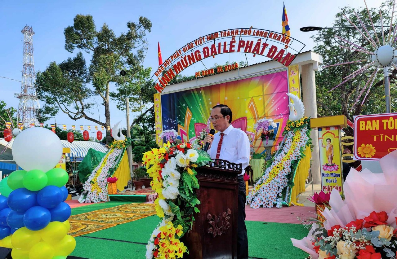 Dịp này, các chư tăng ni, phật tử cũng được nghe Đồng Chí Tăng Quốc Lộc- ủy viên ban thường vụ, Phó Chủ tịch UBND thành phố, đọc thư chúc mừng Đại lễ Phật đản, Phật lịch 2568 - Dương lịch 2024 của Tỉnh ủy - HĐND - UBND - UBMTTQVN tỉnh, gửi lời chúc mừng Ban Trị sự Giáo hội Phật giáo Việt Nam thành phố Long Khánh, chư vị giáo phẩm, tăng, ni và đồng bào Phật tử đón một mùa Phật đản an lạc, hạnh phúc.