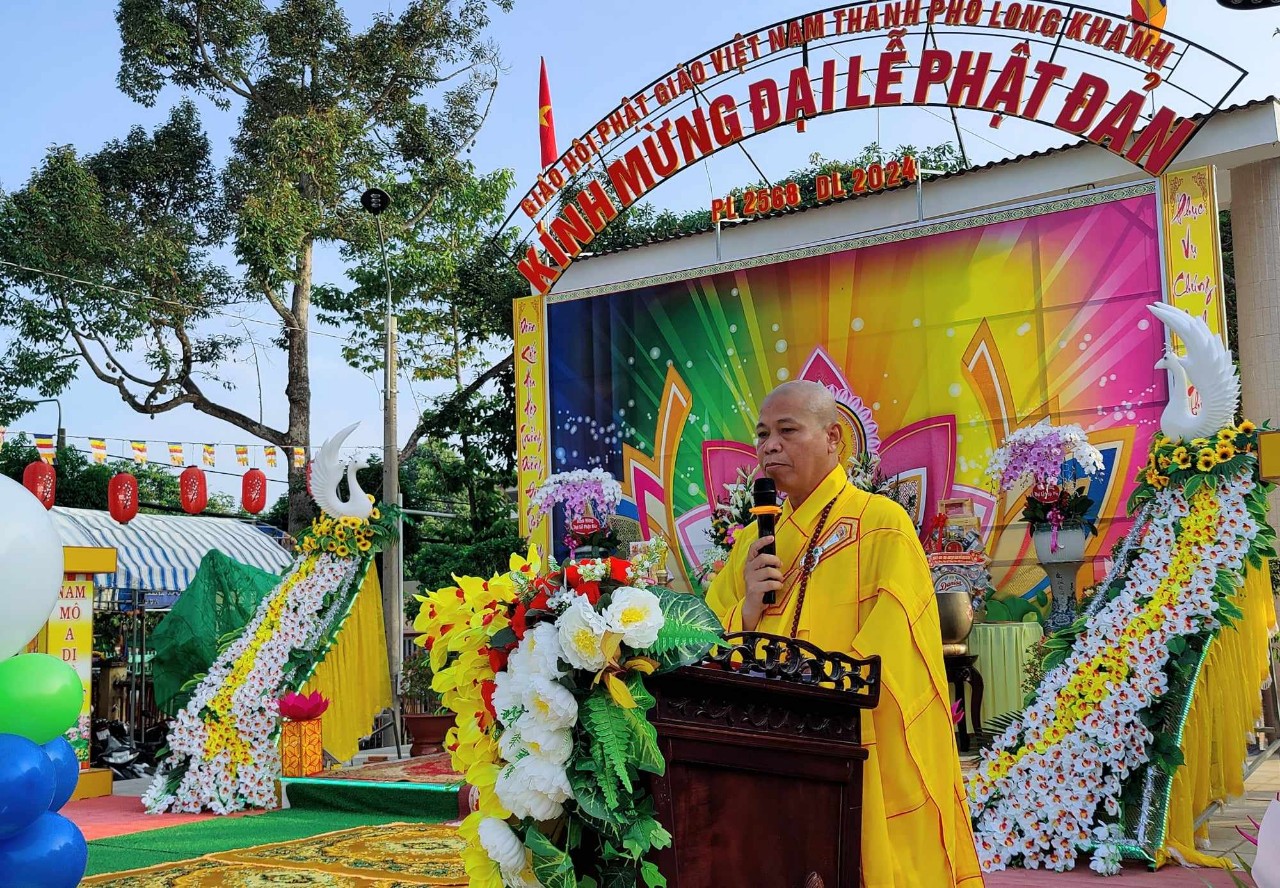 Tại buổi lễ, Hòa thượng đạo hiệu Thích Huệ Tâm - Chứng minh Ban Trị sự Giáo hội Phật giáo Việt Nam Tỉnh Đồng Nai, Thành phố Long Khánh tuyên đọc Thông điệp Phật đản Phật lịch 2568 của Đức Pháp chủ Giáo hội Phật giáo Việt Nam.