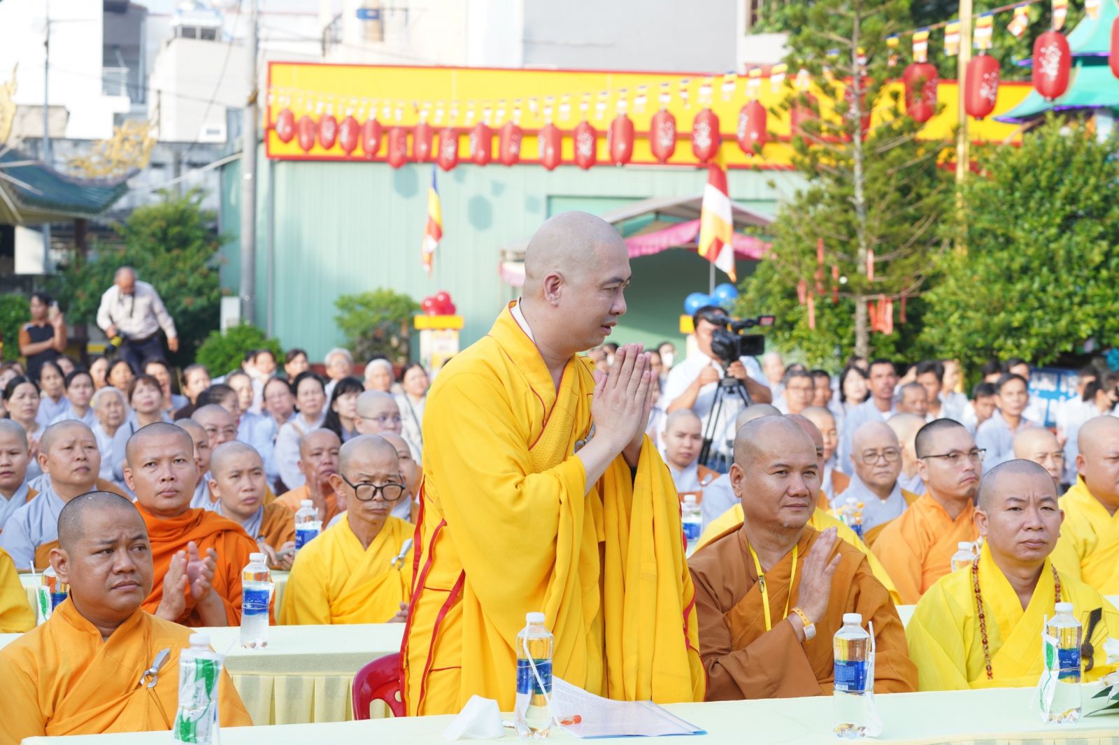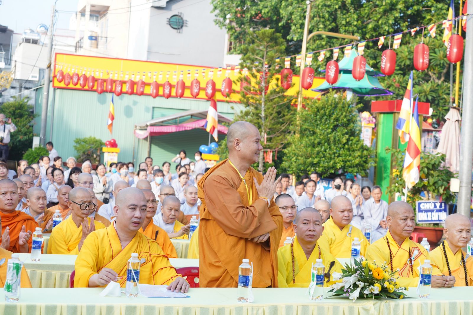 Phát biểu tại Đại Lễ Phật đản, đồng chí Nguyễn Trung Tín - Ủy viên Ban Thường vụ Thành ủy, Chủ tịch Ủy ban MTTQVN thành phố ghi nhận sự đóng góp quan trọng của các chức sắc, Tăng, Ni và đồng bào Phật tử trên địa bàn đối với những thành tựu mà thành phố đã đạt được trong thời gian qua; đồng thời bày tỏ sự tin tưởng quý vị chức sắc và đồng bào Phật tử, kêu gọi tiếp tục phát huy truyền thống “đồng hành cùng dân tộc”, hưởng ứng các phong trào thi đua yêu nước, các chủ trương, chính sách của Đảng, Nhà nước và của tỉnh, thành phố, góp phần xây dựng quê hương ngày càng phát triển phồn vinh và hạnh phúc.