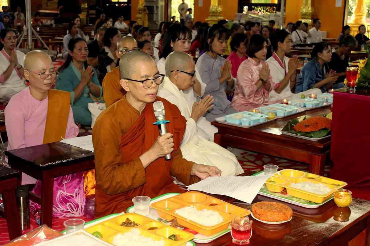 Sau thời khóa lễ bái tam bảo, tọa thiền, đại chúng lắng tâm thanh tịnh nghe hòa thượng Thích Bửu Chánh - Trụ Trì TV Phước Sơn, thuyết giảng ý nghĩa Vu Lan báo hiếu. Ngài nhấn mạnh truyền thống hiếu đạo của dân tộc Việt Nam. Làm con hiếu hạnh vi tiên, người con phải tích cực biết ơn đền ơn, ngay như động vật còn biết ơn nghĩa sinh thành, đền ơn người cứu mạng. Tâm hiếu là tâm Phật, Hạnh hiếu là hạnh Phật, noi theo gương hạnh của Đức Phật, người xuất gia hay tại gia, phải tự tu tự độ, nỗ lực sống hiền thiện tốt lành, đấy là món qùa cúng dường lớn lao nhất tặng đến cha mẹ. Đức Phật dạy thực hành bát chánh đạo, những ai phạm tội ngũ nghịch đều nhận lấy nhân qủa rất đắt giá. Chúng ta nhận biết rõ chữ Hiếu thế gian nặng gánh muôn phần, nhưng chữ Hiếu của người xuất gia càng nhiều trọng trách phải làm sao chuyển hóa cha mẹ đi con đường chân chính. Công đức của cha mẹ không sao kể hết, dù biết là thân tứ đại mong manh nương theo hơi thở vô thường, thiết nghĩ chúng ta luôn hạnh phúc khi có cha mẹ hiện diện trong hình hài này. Hòa thượng nhắc nhở, cha mẹ là vị Phật sống, dù song thân có như thế nào, mỗi người con phải biết kính trọng phụ mẫu như Phật tại thế.