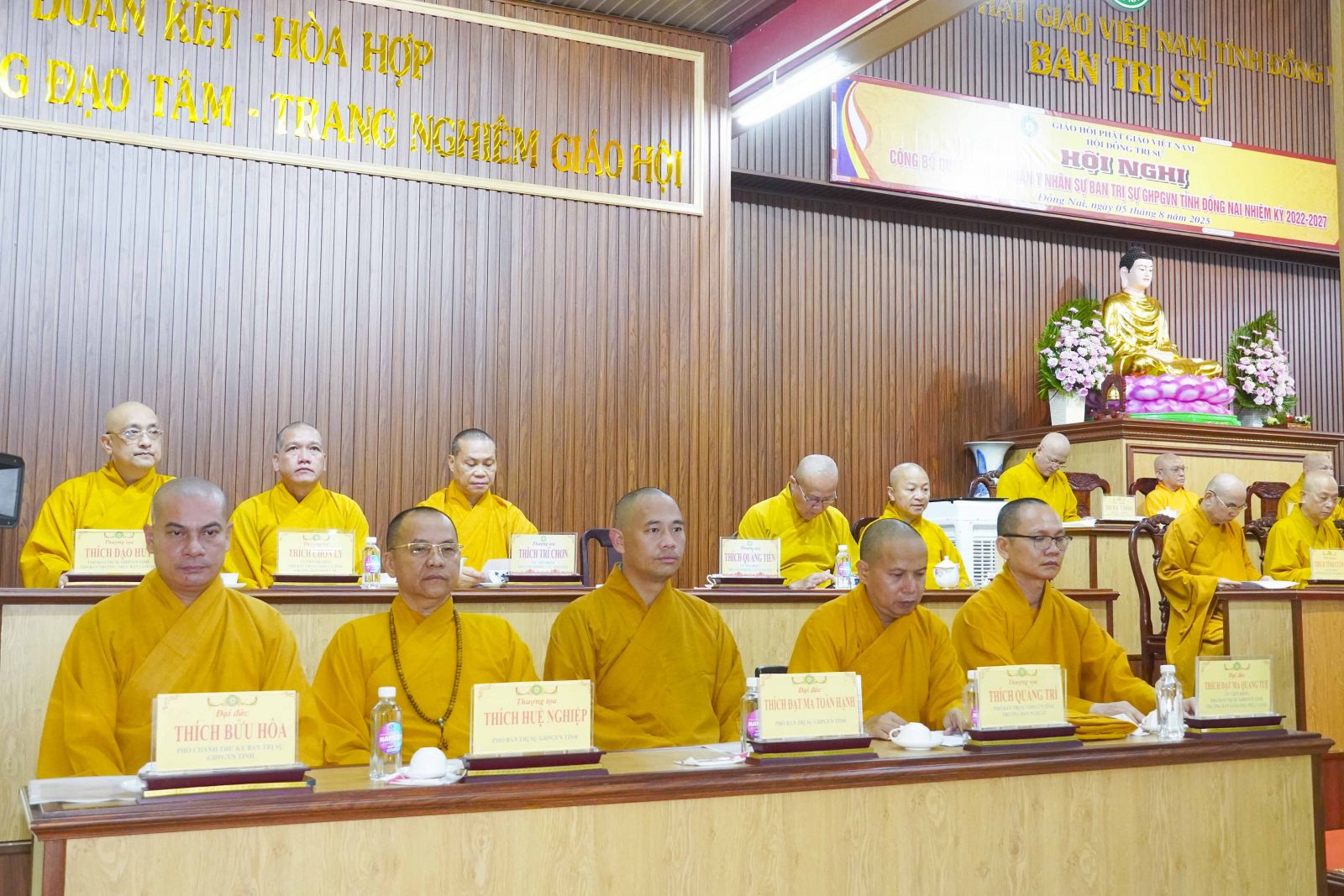 Về Ban Trị sự Phật giáo tỉnh có TT. Thích Huệ Khai - Ủy viên Thường trực HĐTS, Trưởng Ban Trị sự GHPGVN tỉnh Đồng Nai; HT. Thích Bửu Chánh - Ủy viên Thư ký HĐTS, Phó Trưởng ban Thường trực Ban Trị sự GHPGVN tỉnh; HT. Thích Tĩnh Cường - Ủy viên HĐTS, Phó Trưởng ban Thường trực Ban Trị sự GHPGVN tỉnh; TT. Thích Pháp Quyền - Ủy viên HĐTS, Phó Ban Trị sự kiêm Chánh Thư ký Ban Trị sự GHPGVN tỉnh; cùng chư Tôn đức Thường trực Ban Trị sự và Tăng Ni thành viên Ban Trị sự GHPGVN tỉnh Đồng Nai cùng về tham dự Hội nghị.