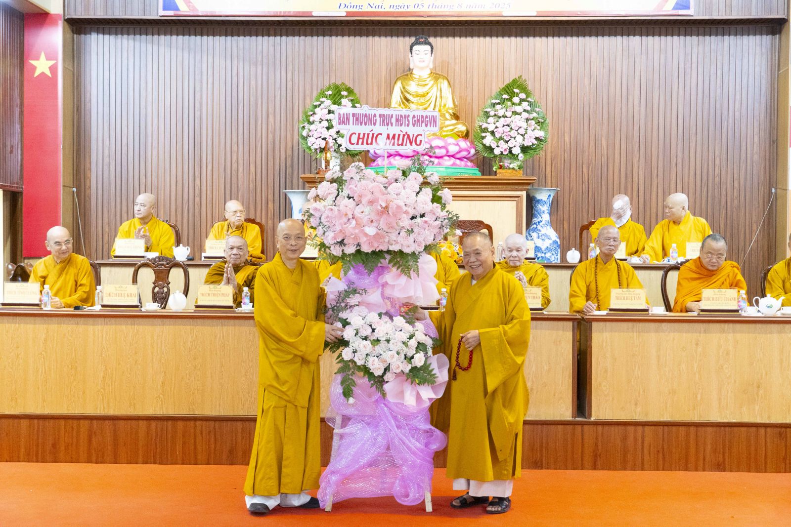 Trưởng lão Hòa thượng Chủ tịch đạo từ, Ngài đã có lời chúc mừng đến chư tôn đức Tăng Ni vừa được Trung ương Giáo hội chuẩn y tham gia Ban Trị sự tỉnh Đồng Nai mới. Hòa thượng đánh giá cao tinh thần đoàn kết, hòa hợp, sự đồng thuận và trách nhiệm tập thể của chư tôn đức trong quá trình sáp nhập tổ chức, góp phần tạo nên nền tảng vững chắc cho sự phát triển ổn định và bền vững của Phật giáo tỉnh nhà trong giai đoạn mới.