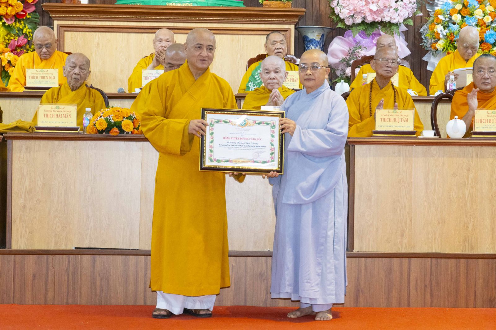 Dịp này, Ban Thường trực HĐTS cũng đã trao Bằng Tuyên dương công đức đến chư tôn đức lãnh đạo Ban Trị sự GHPGVN tỉnh Bình Phước (cũ) vì những đóng góp tích cực trong công tác Phật sự nhiệm kỳ 2017–2022.
