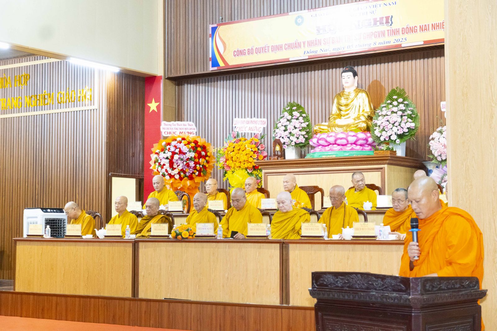 Tại hội nghị, TT. Thích Minh Nhẫn - Ủy viên Thư ký HĐTS, Phó Chánh Văn phòng 2 TƯ. GHPGVN đã đọc công bố Quyết định chuẩn y nhân sự Ban Trị sự GHPGVN tỉnh Đồng Nai nhiệm kỳ mới gồm 143 thành viên, trong đó Ban Thường trực có 51 vị.