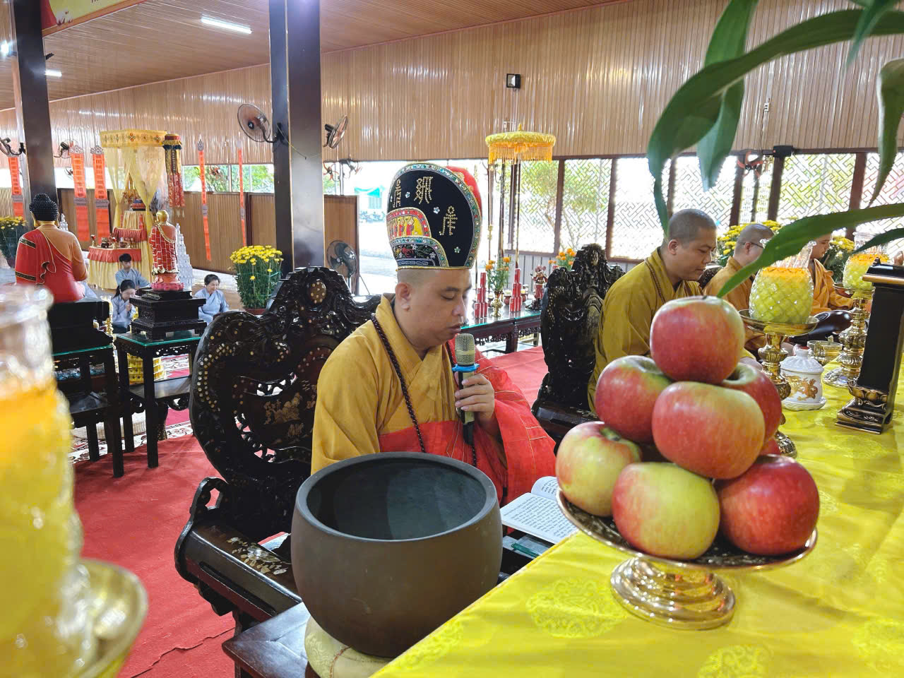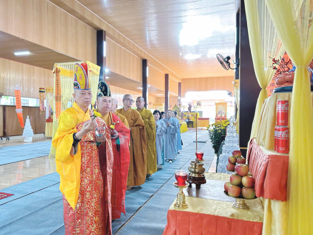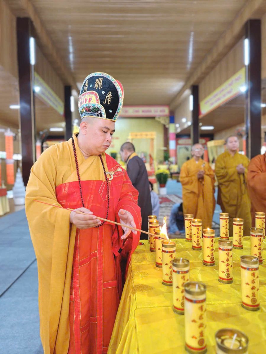 Sáng ngày 12/Giếng/ Ất Tỵ đàn tràng trang nghiêm cung thỉnh chư Tôn đức quang lâm niêm hương và trì tụng kinh Dược Sư và tuyên sớ cầu an cho toàn thể đạo tràng Phật tử.