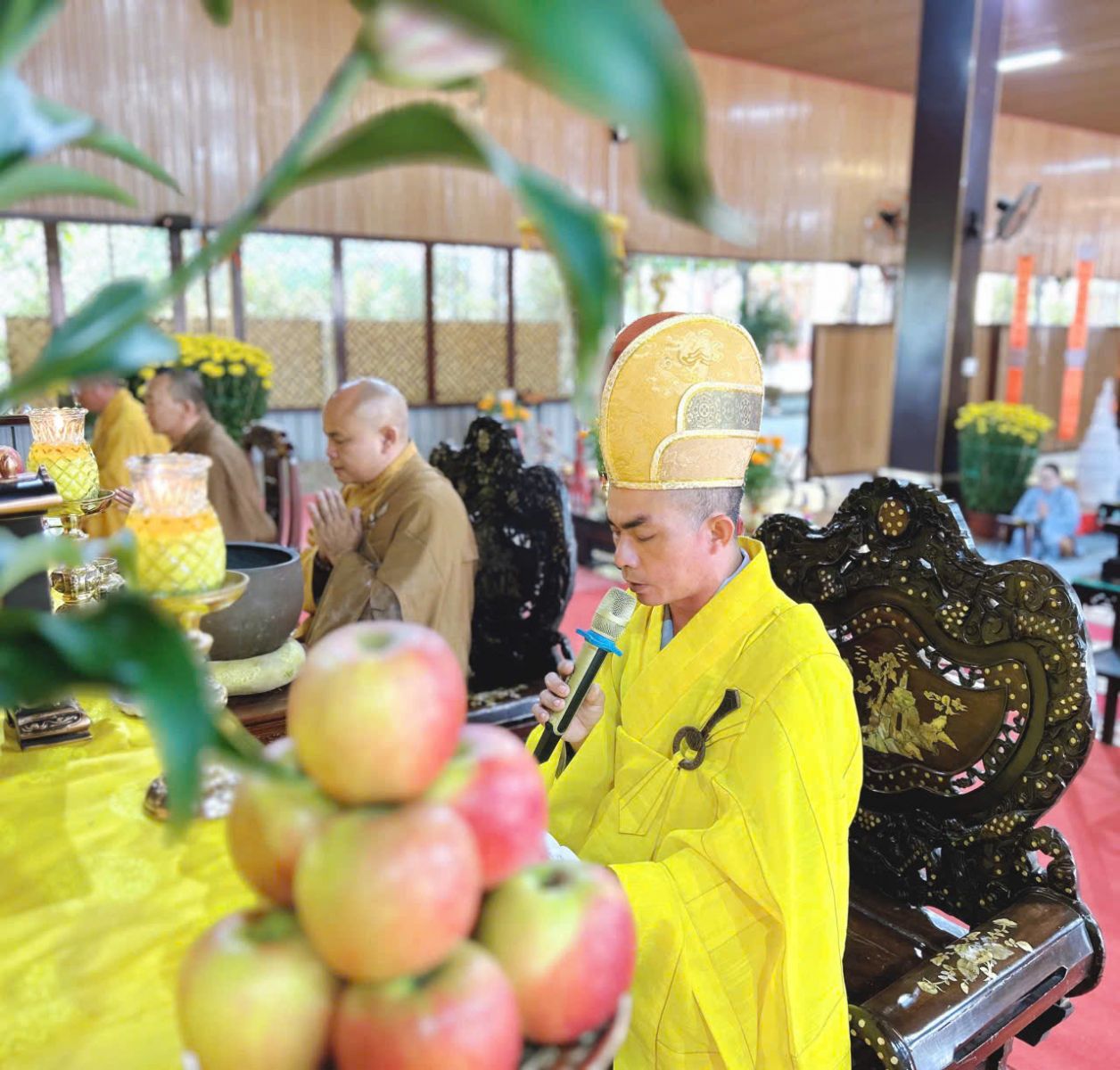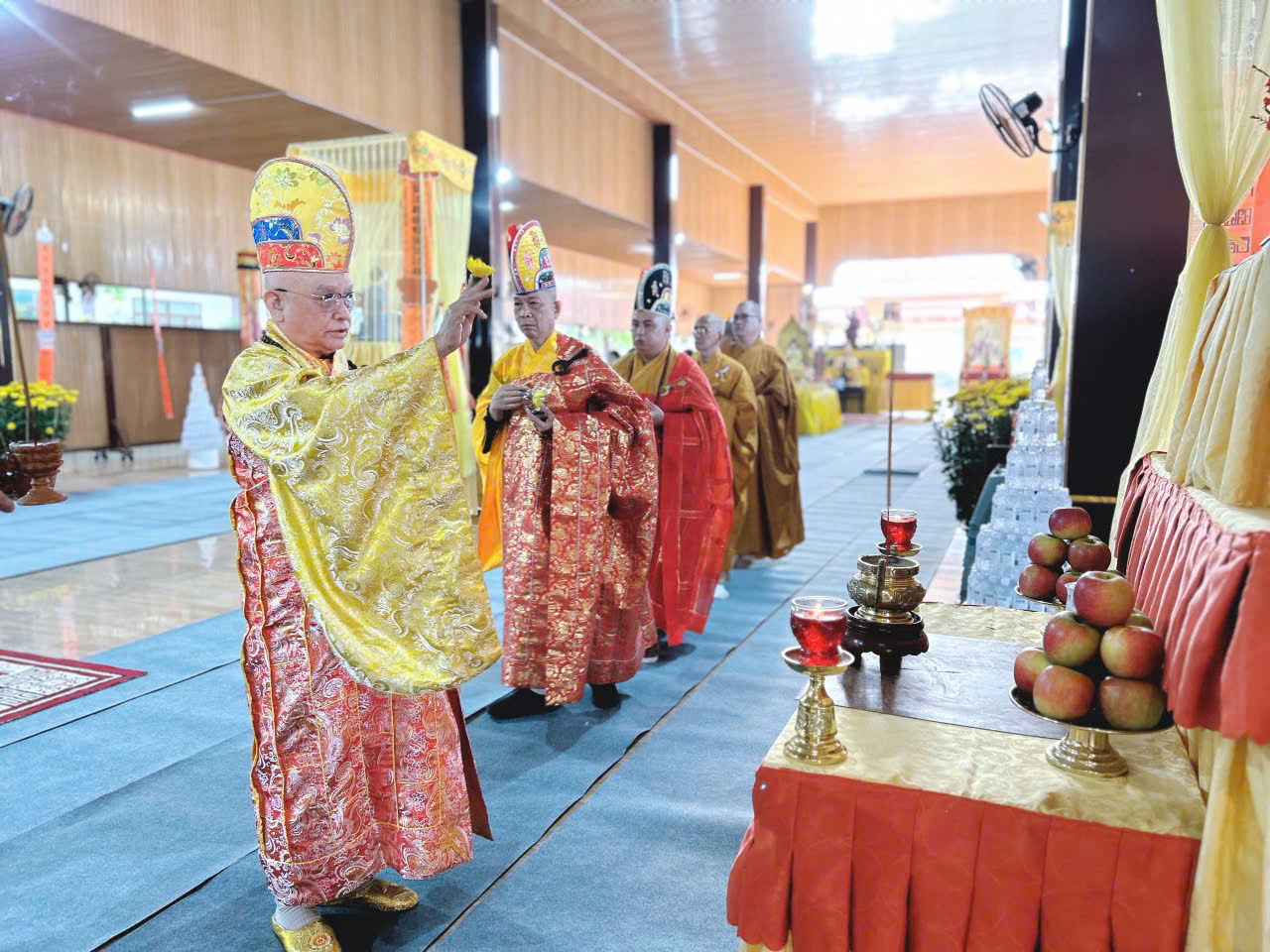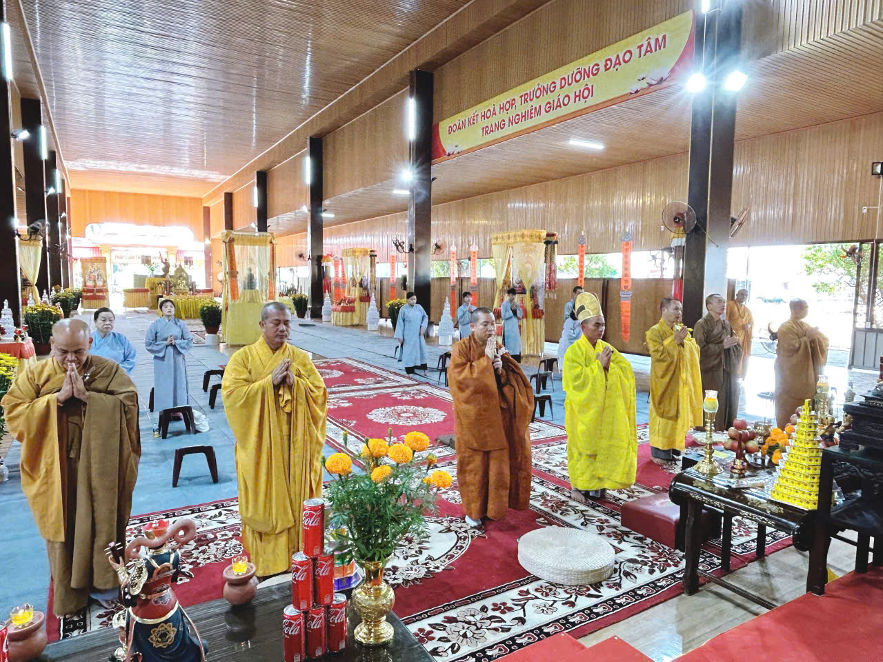 Sáng ngày 12/Giếng/ Ất Tỵ đàn tràng trang nghiêm cung thỉnh chư Tôn đức quang lâm niêm hương và trì tụng kinh Dược Sư và tuyên sớ cầu an cho toàn thể đạo tràng Phật tử.