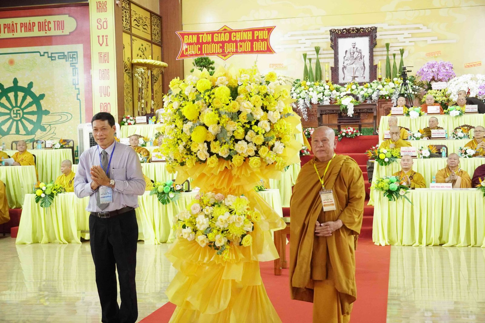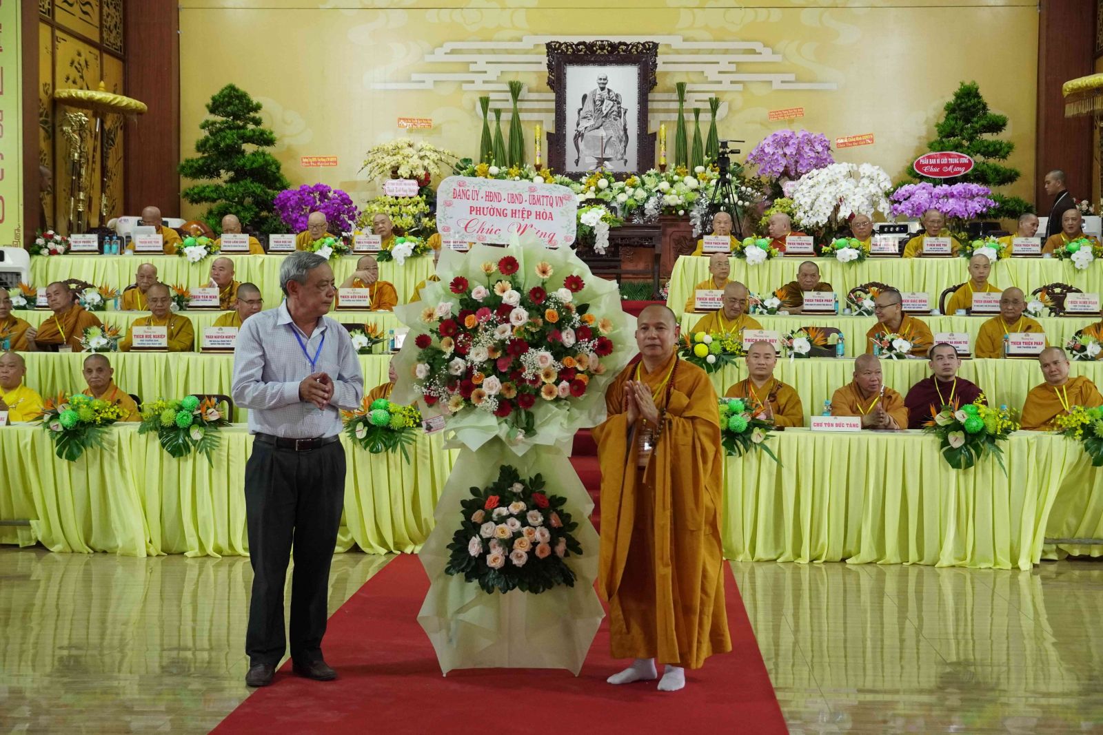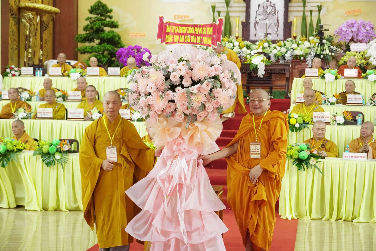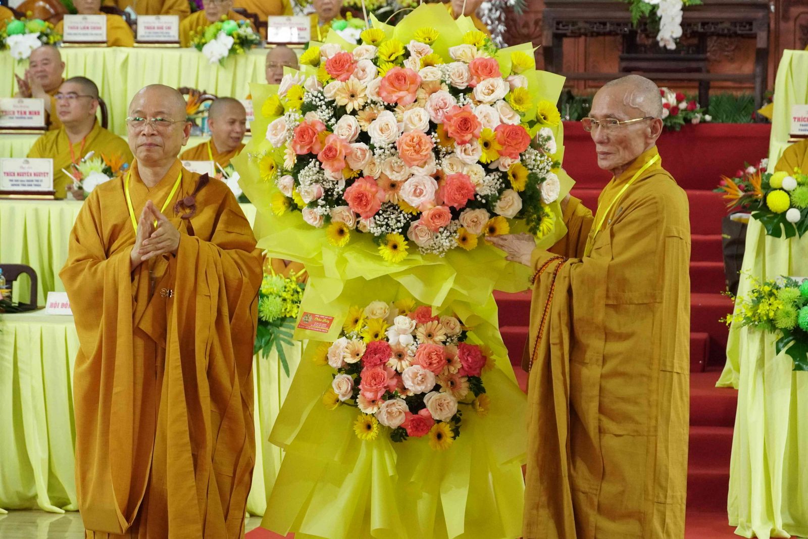 Chúc mừng cho Phật sự trọng đại này, Ban Trị sự GHPGVN đã đón nhận nhiều lẵng hoa của Đức Pháp chủ GHPGVN, HĐTS GHPGVN, và các Ban Viện Trung ương, các ban ngành Ban Trị sự tỉnh và từ các Ban, ngành chính quyền, Ban Trị sự Phật giáo các tỉnh thành và các tổ chức, cá nhân trao tặng.
