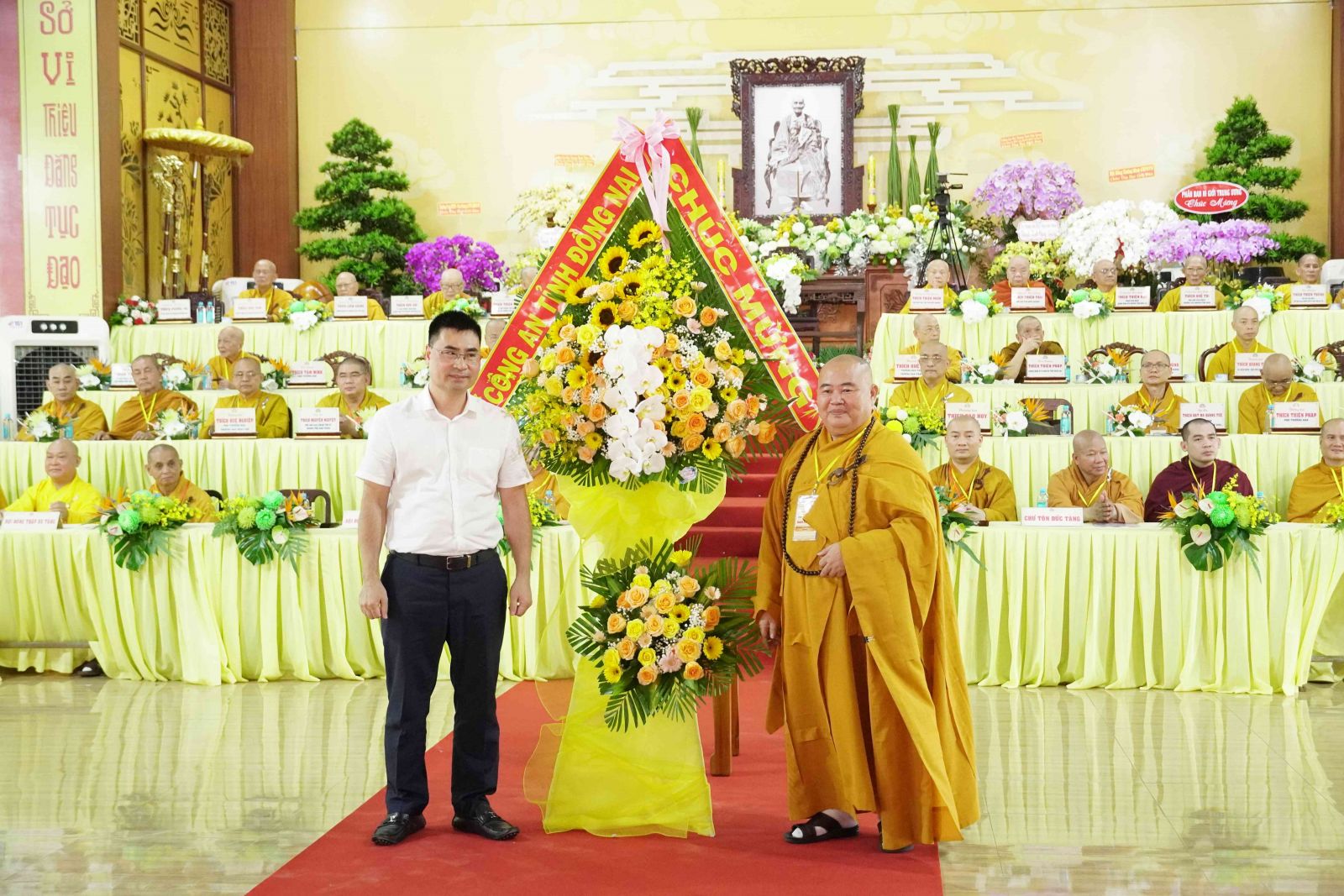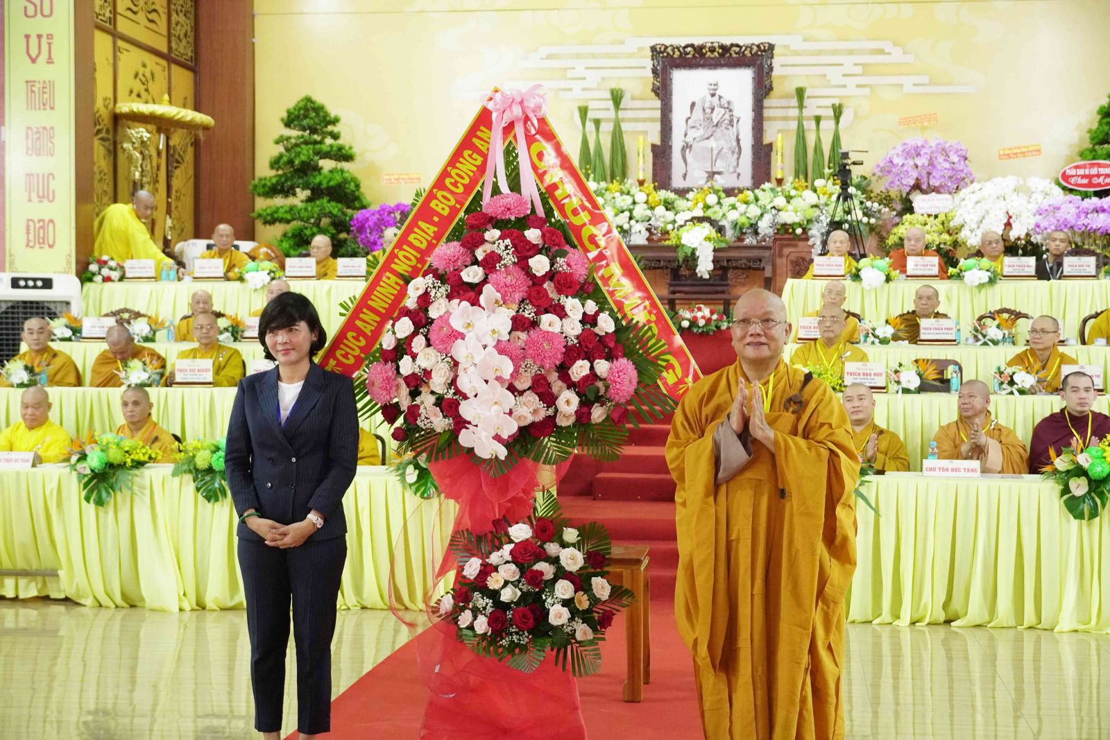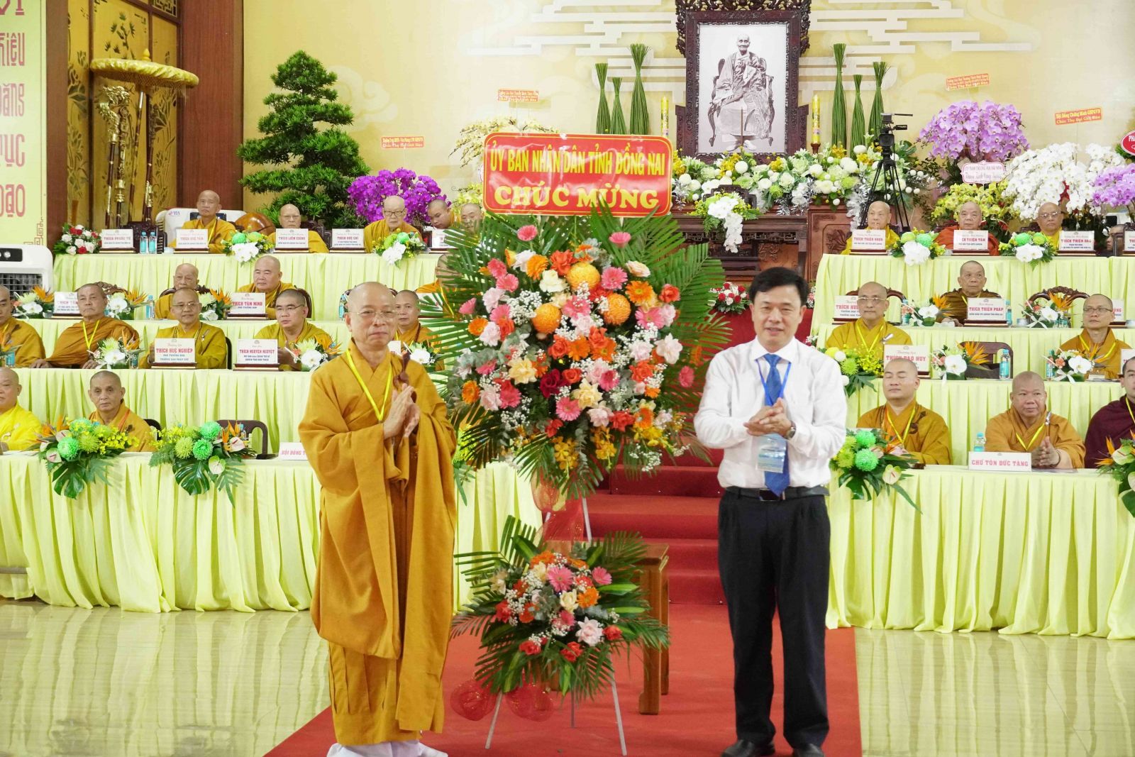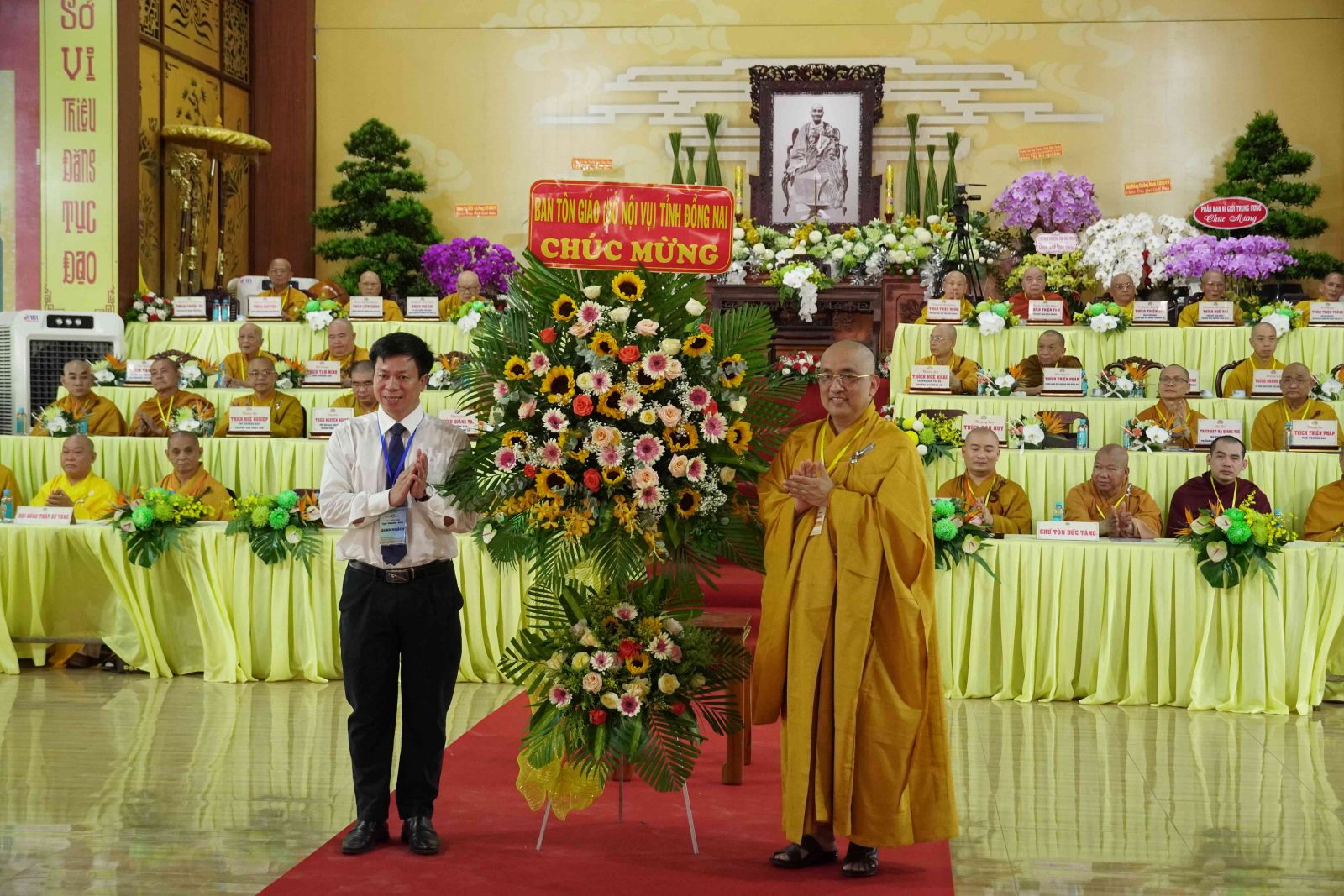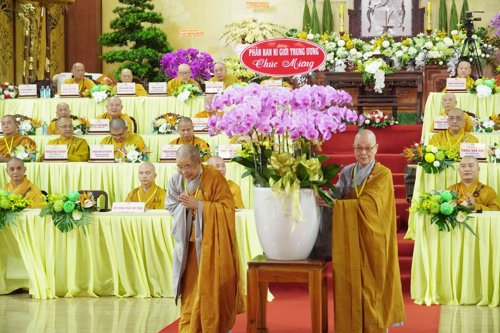 Chúc mừng cho Phật sự trọng đại này, Ban Trị sự GHPGVN đã đón nhận nhiều lẵng hoa của Đức Pháp chủ GHPGVN, HĐTS GHPGVN, và các Ban Viện Trung ương, các ban ngành Ban Trị sự tỉnh và từ các Ban, ngành chính quyền, Ban Trị sự Phật giáo các tỉnh thành và các tổ chức, cá nhân trao tặng.