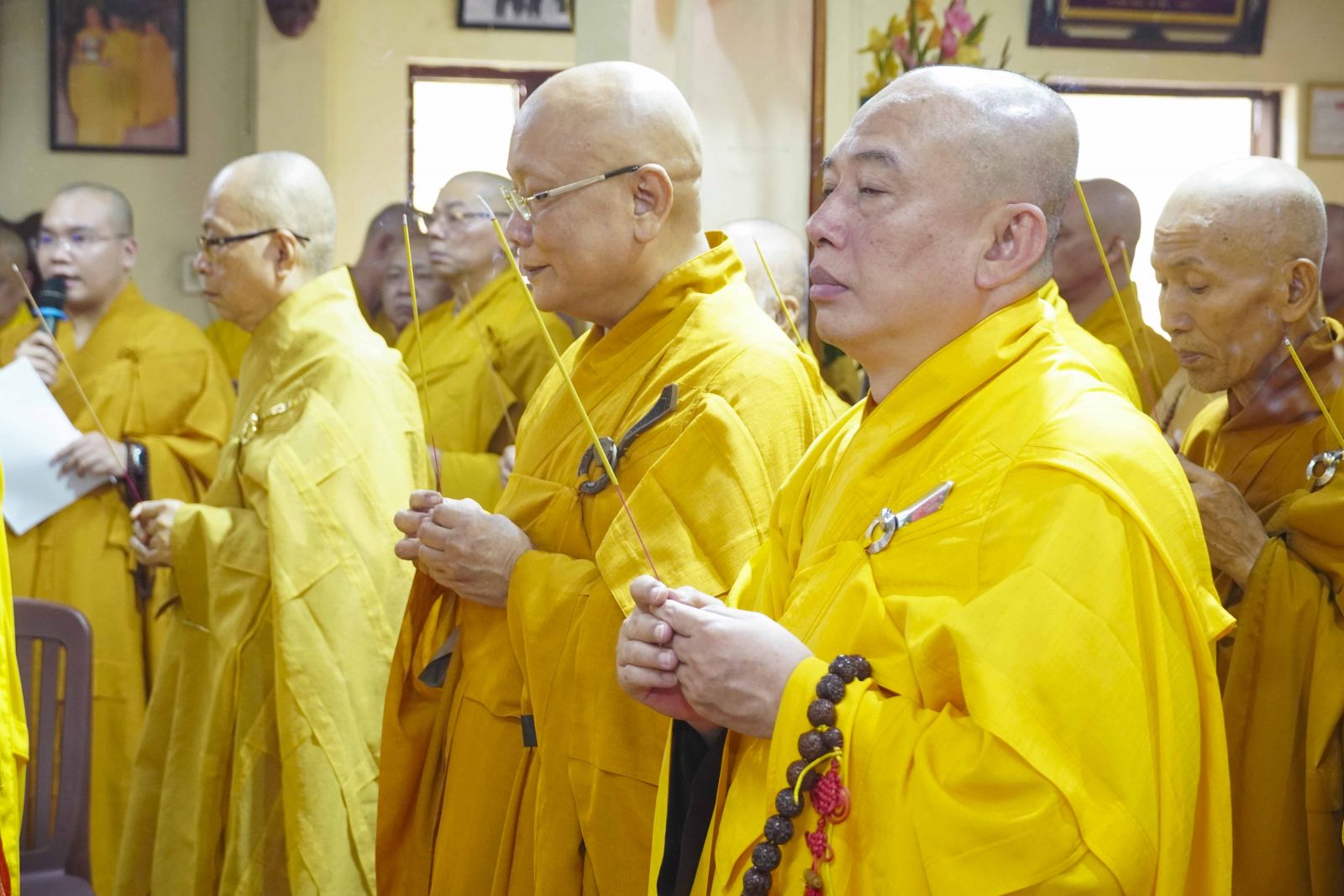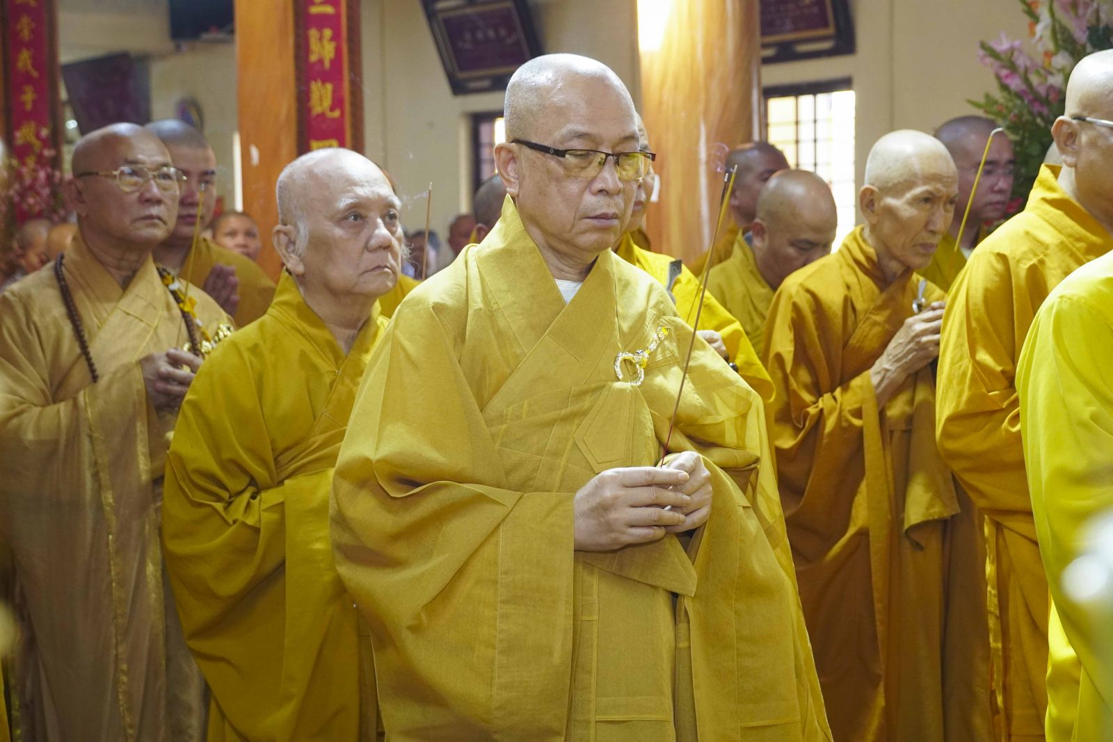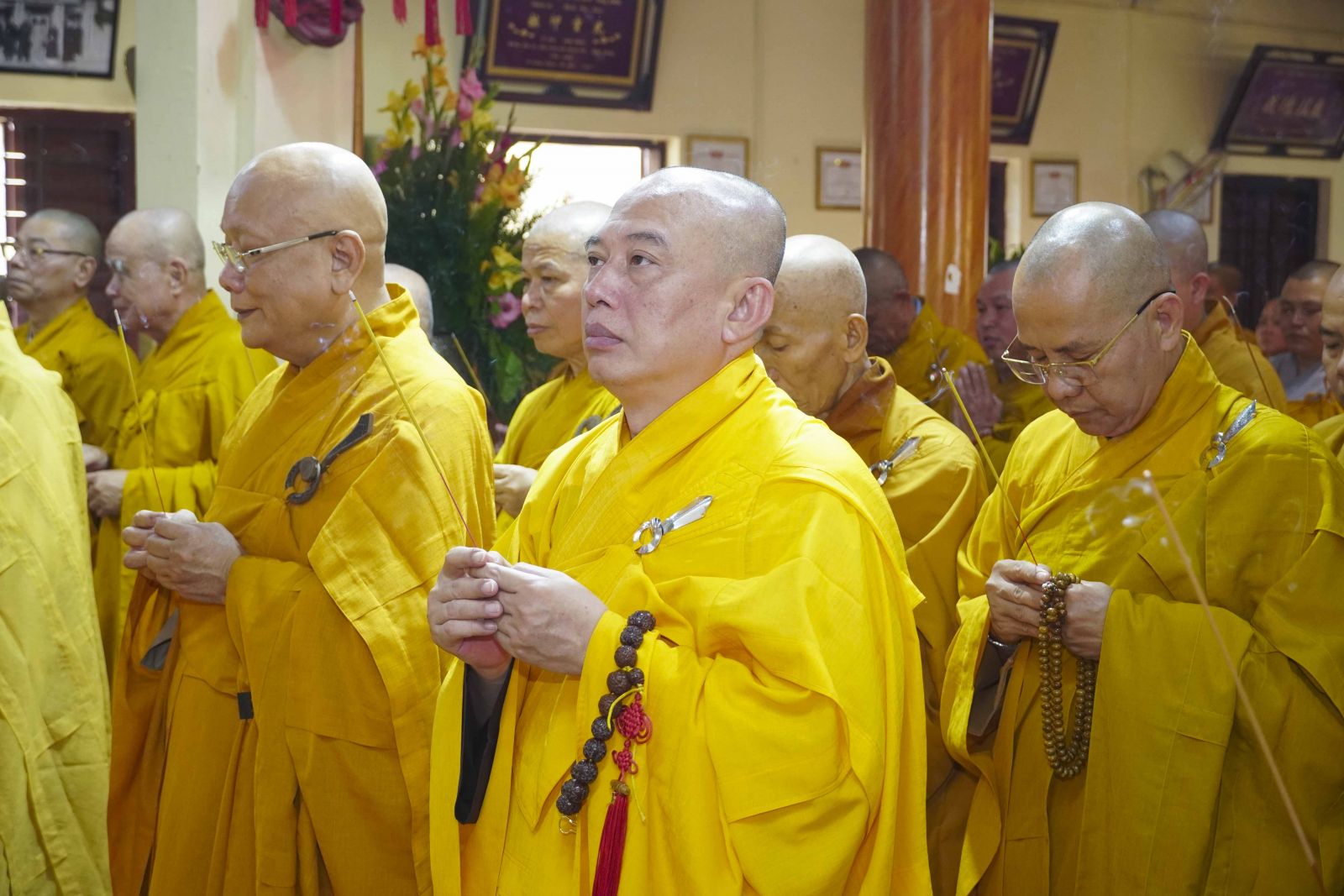 Trong không khí trang nghiêm của thời khóa lễ, chư Tôn đức đã niêm hương bạch Phật, thành kính dâng hương tưởng niệm Tổ sư Thành Nhạc – Ẩn Sơn cùng chư vị tiền bối Tổ sư. Mỗi nén hương được thắp lên không chỉ là biểu hiện của lòng thành kính, mà còn là sự tiếp nối mạch sống tâm linh, kết nối giữa quá khứ – hiện tại – tương lai của Môn phong pháp phái.